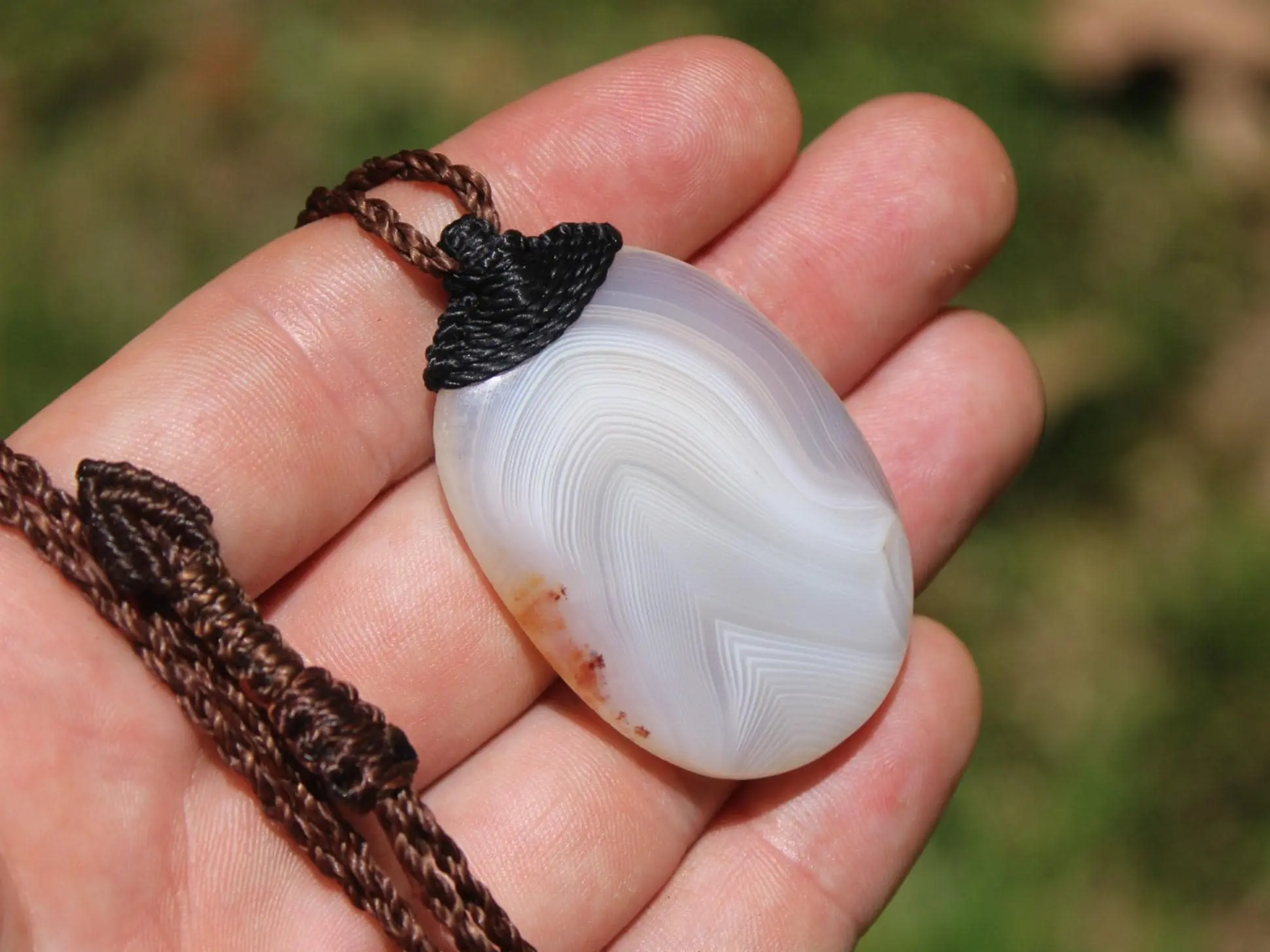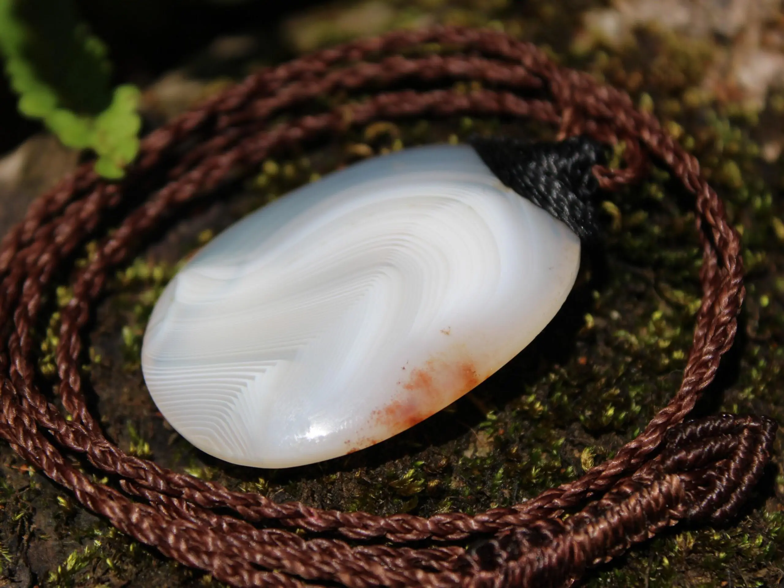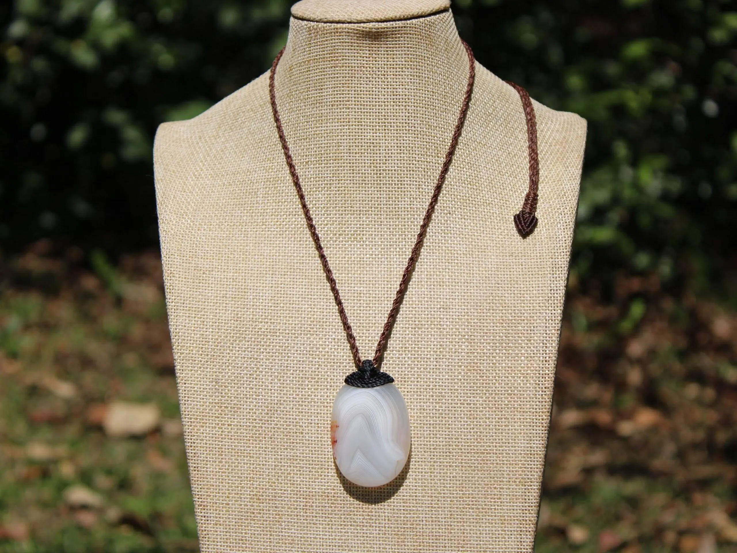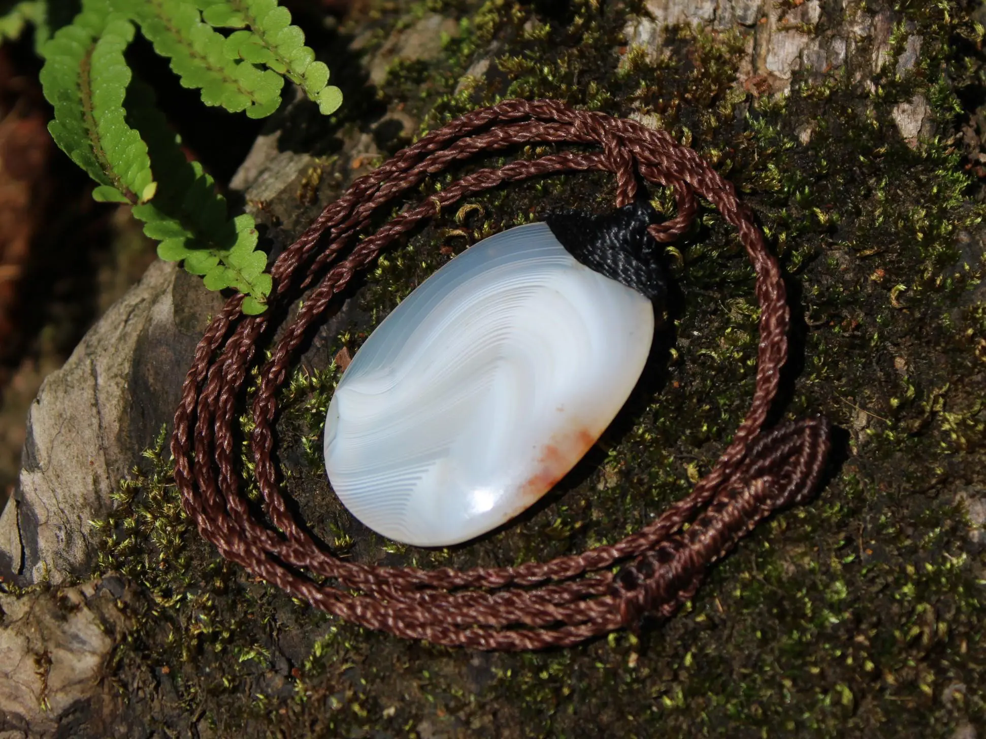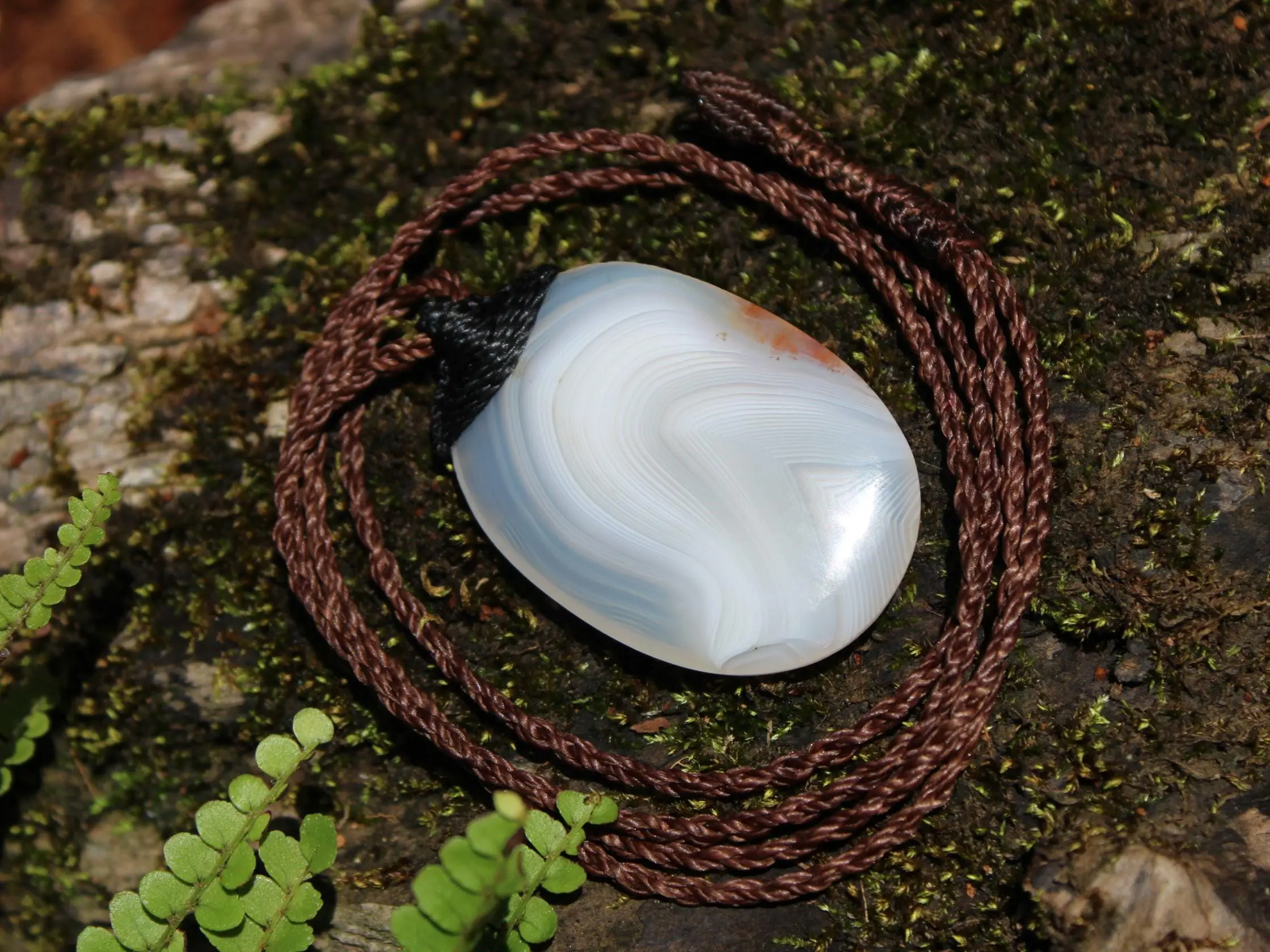 Agate Necklace • Agate Creek Pendant • Tribal Healing Crystal Talisman • Handwoven Tropical Cord