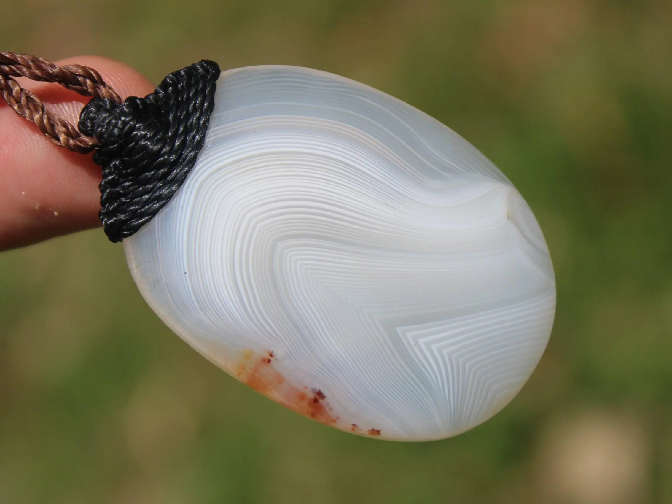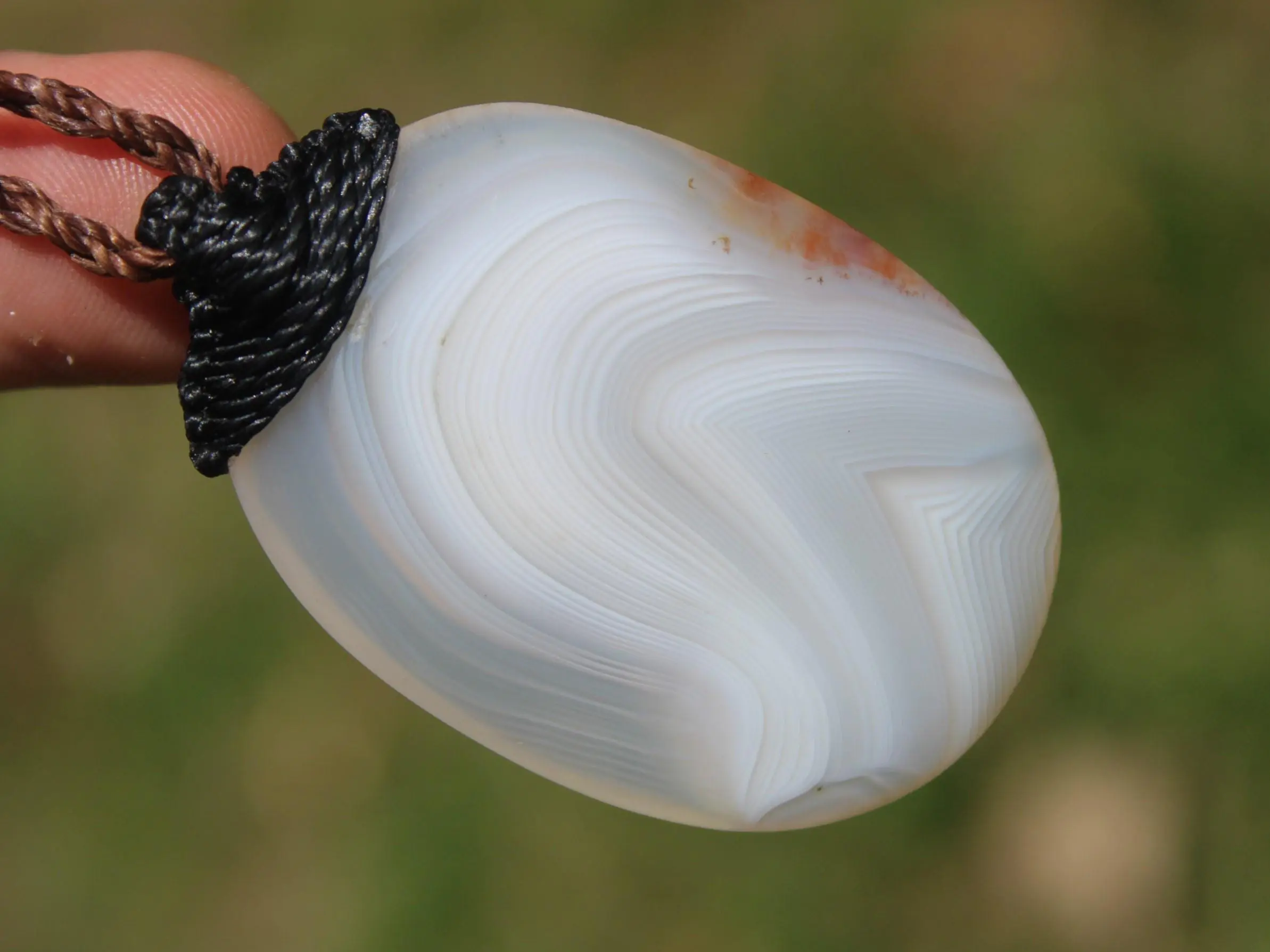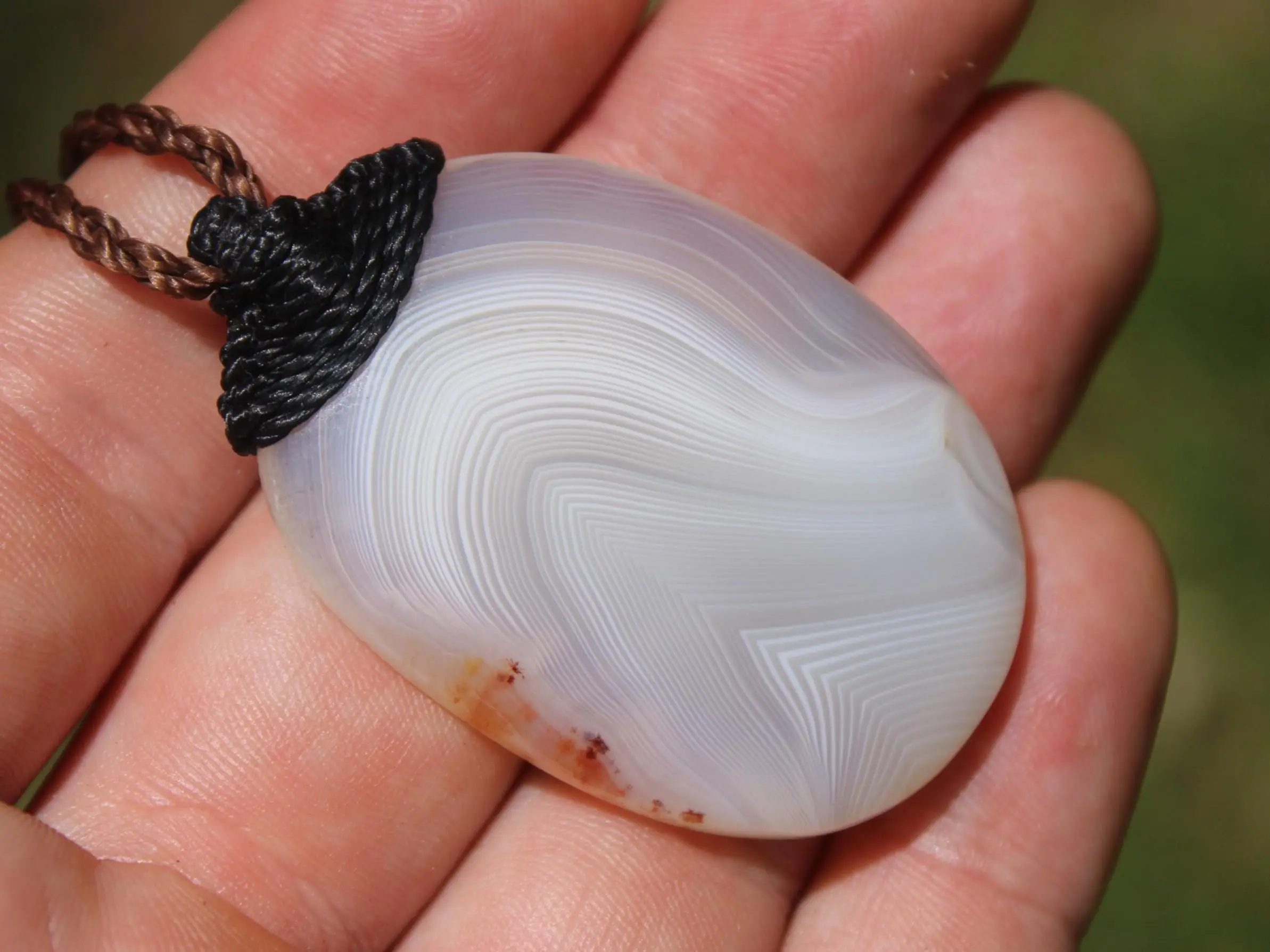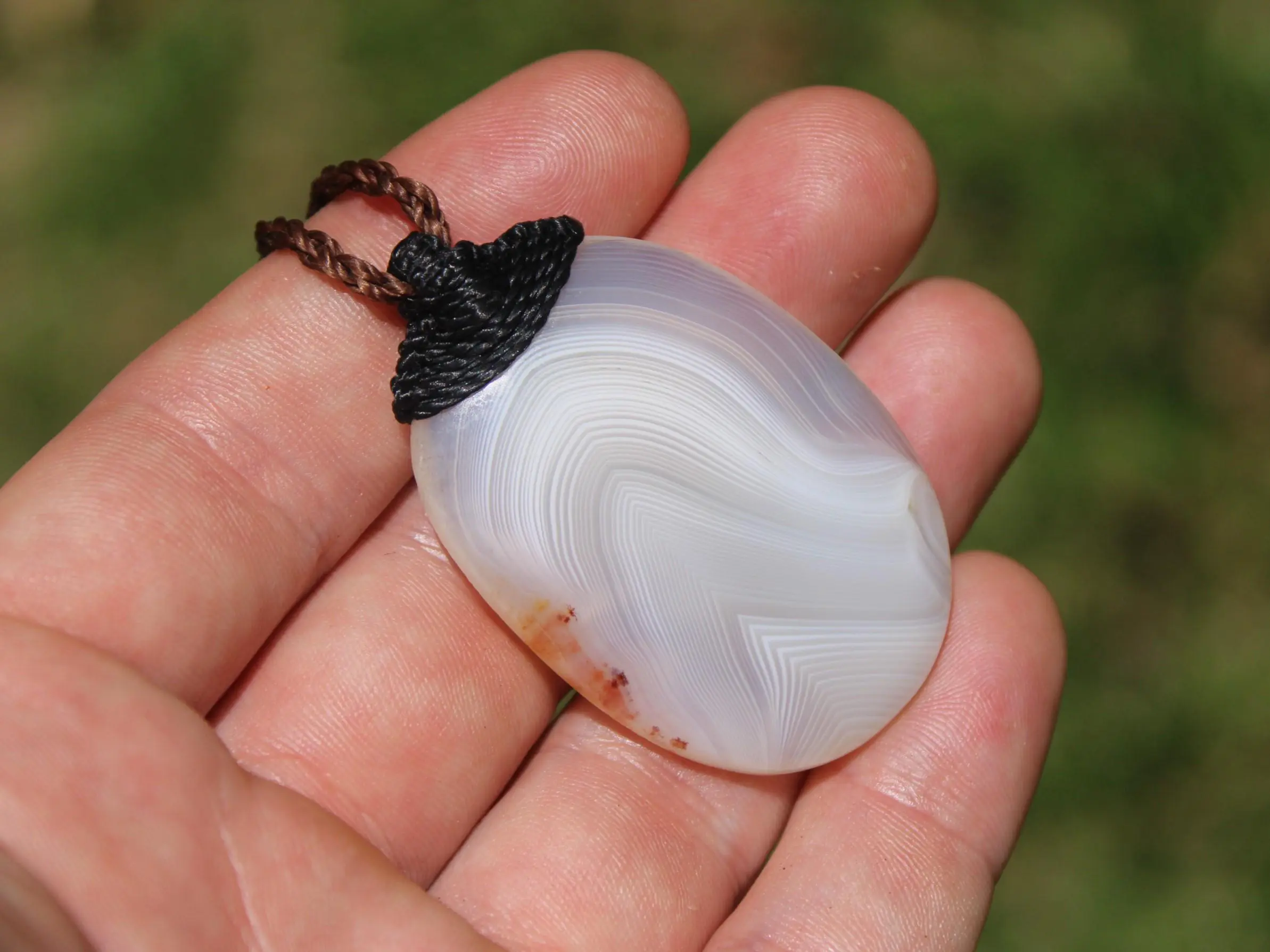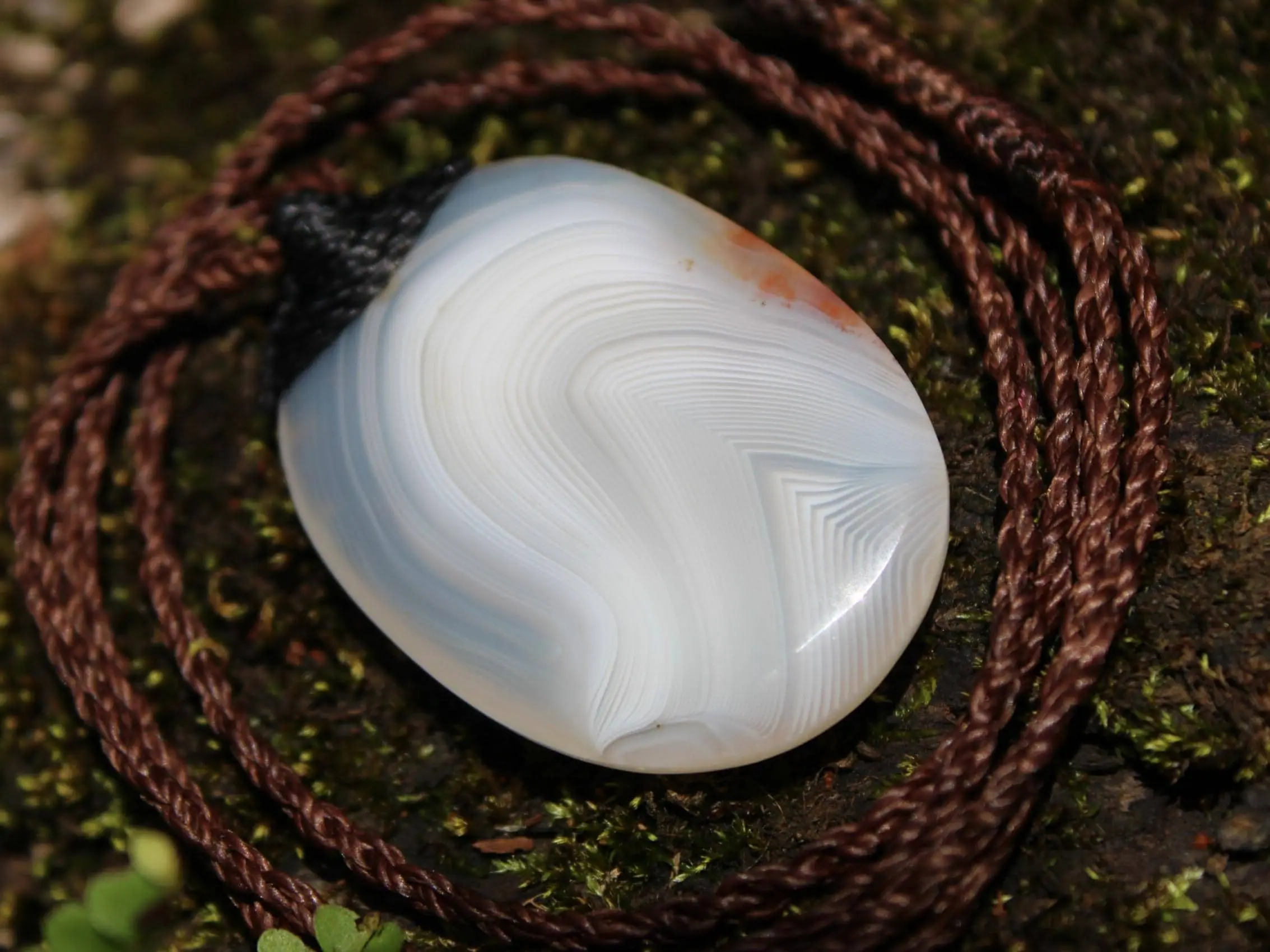 Agate Necklace • Agate Creek Pendant • Tribal Healing Crystal Talisman • Handwoven Tropical Cord