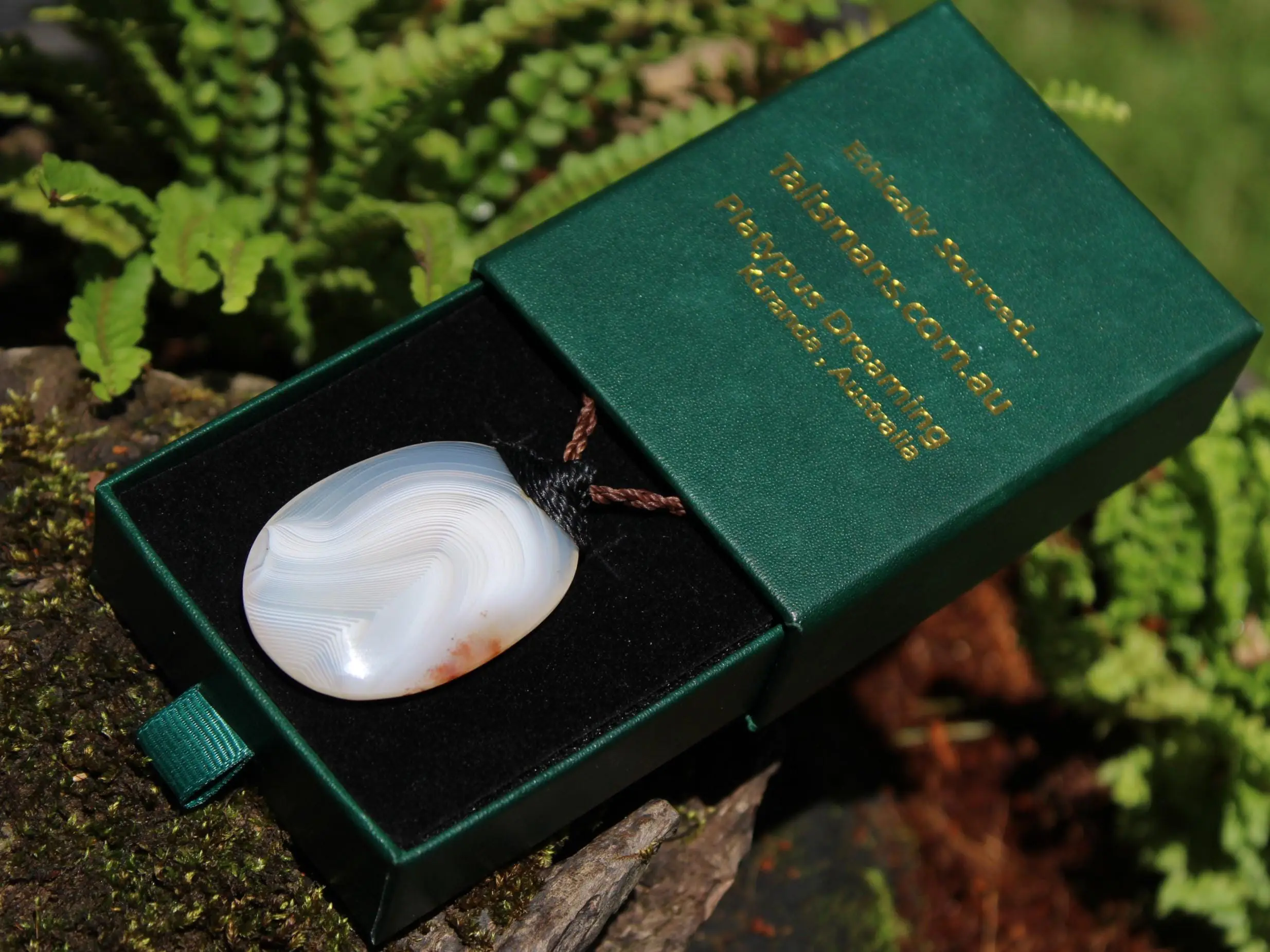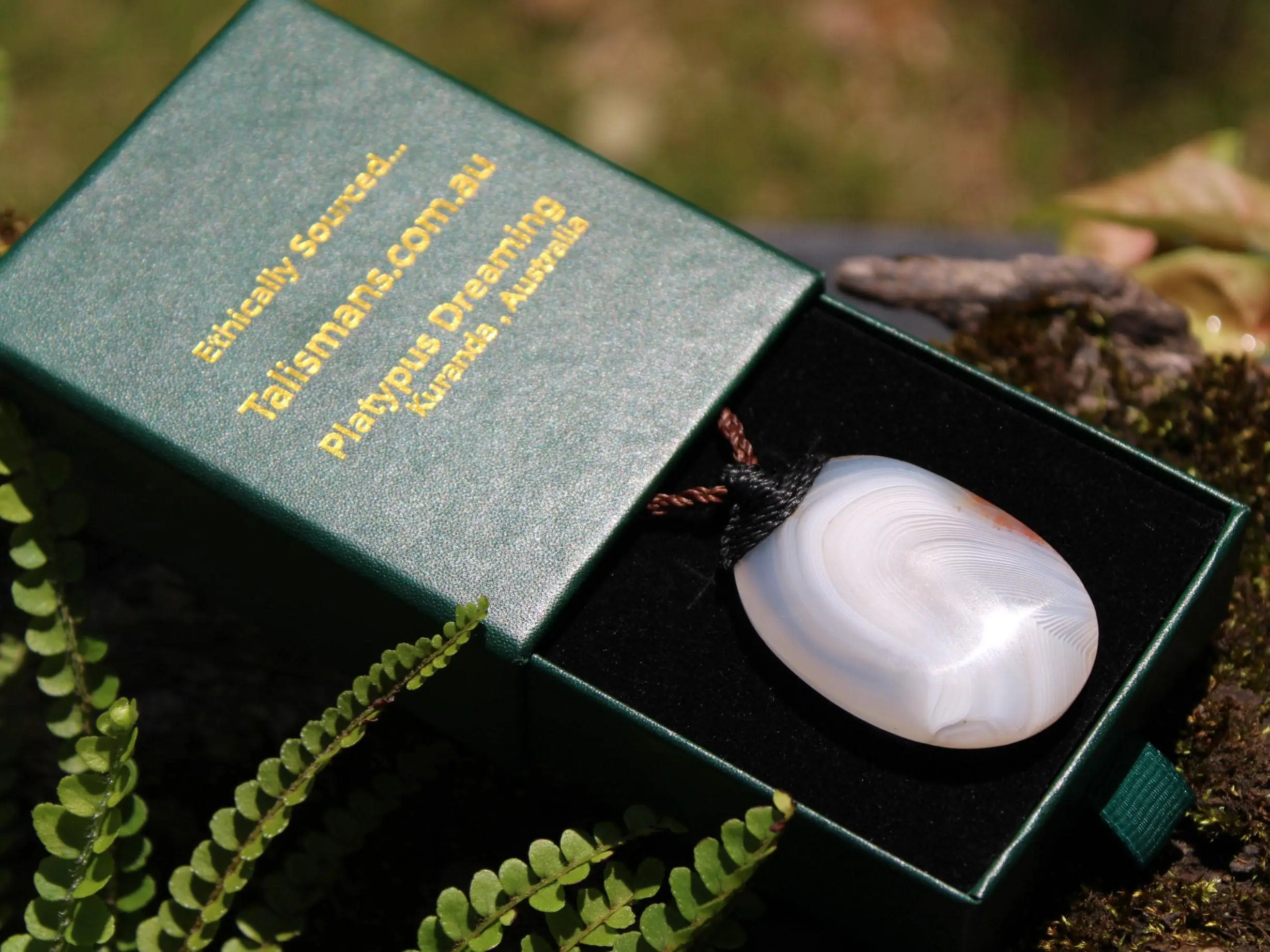 This vibrant banded Agate talisman has been handcrafted by our 5–7 artisan collective here at Platypus Dreaming, deep in the ancient rainforests of Far North Queensland, Australia.