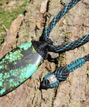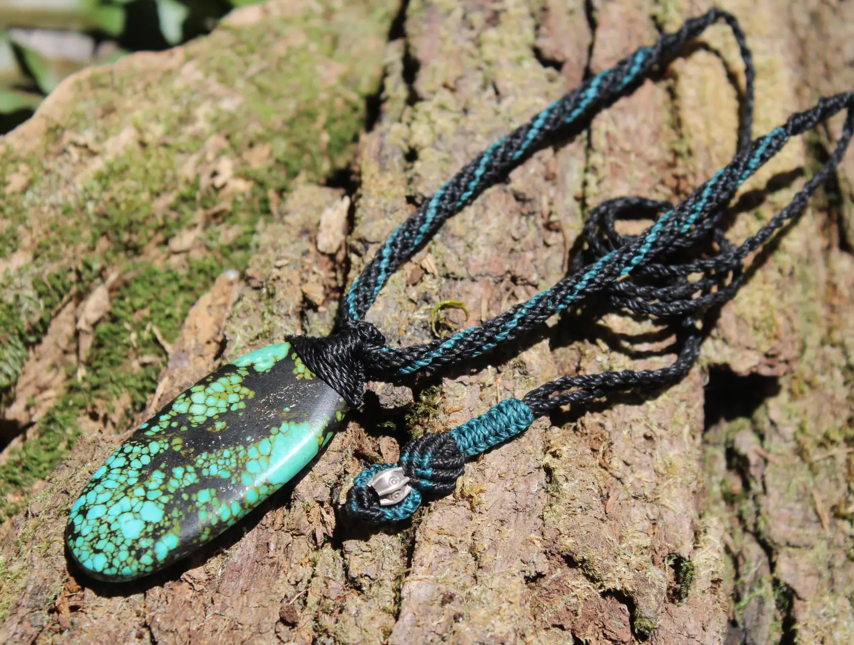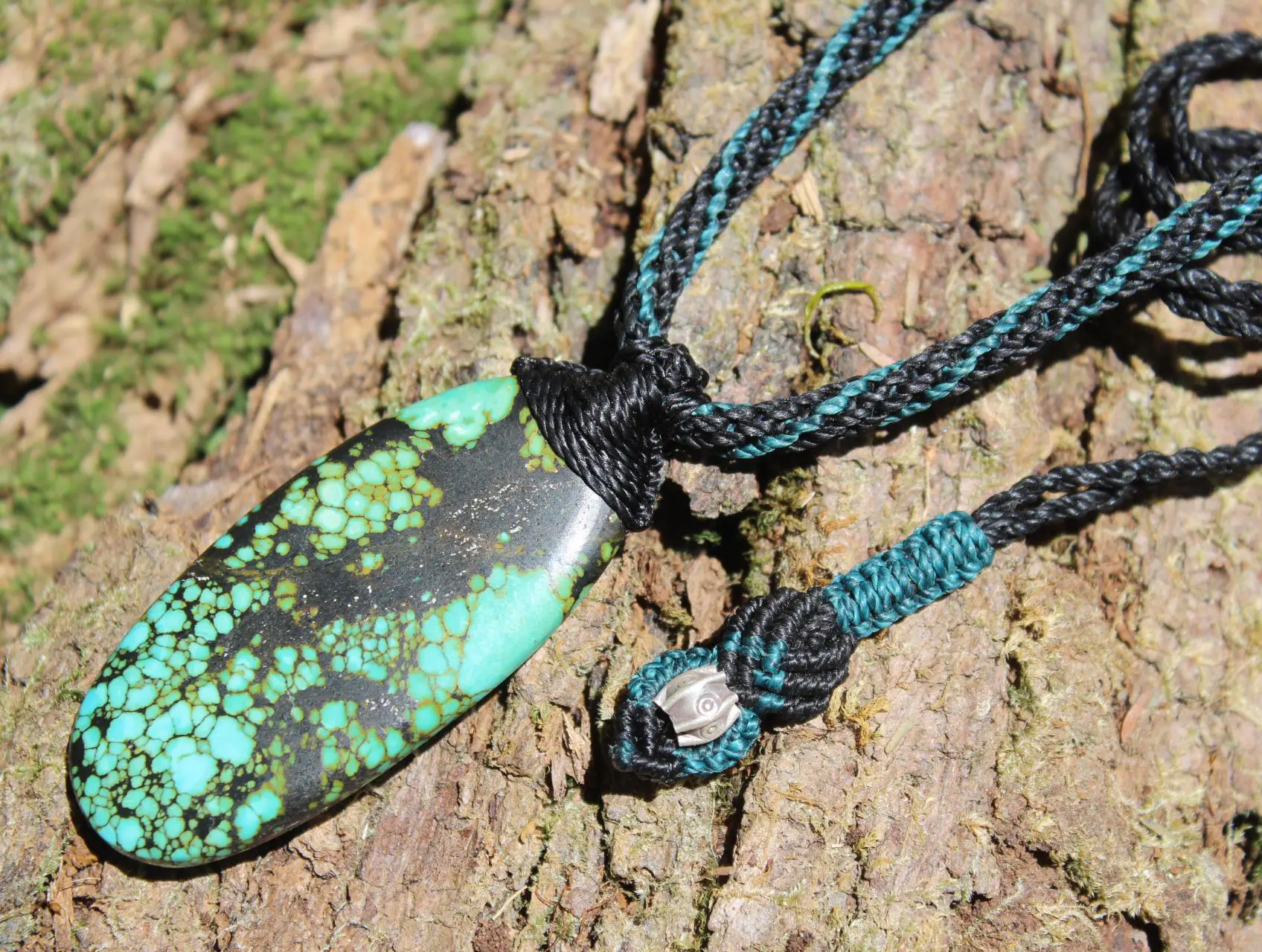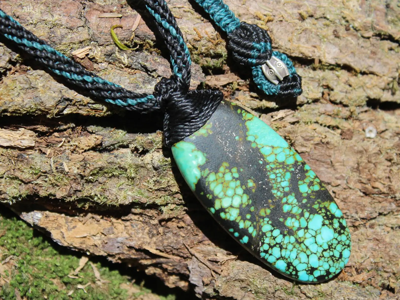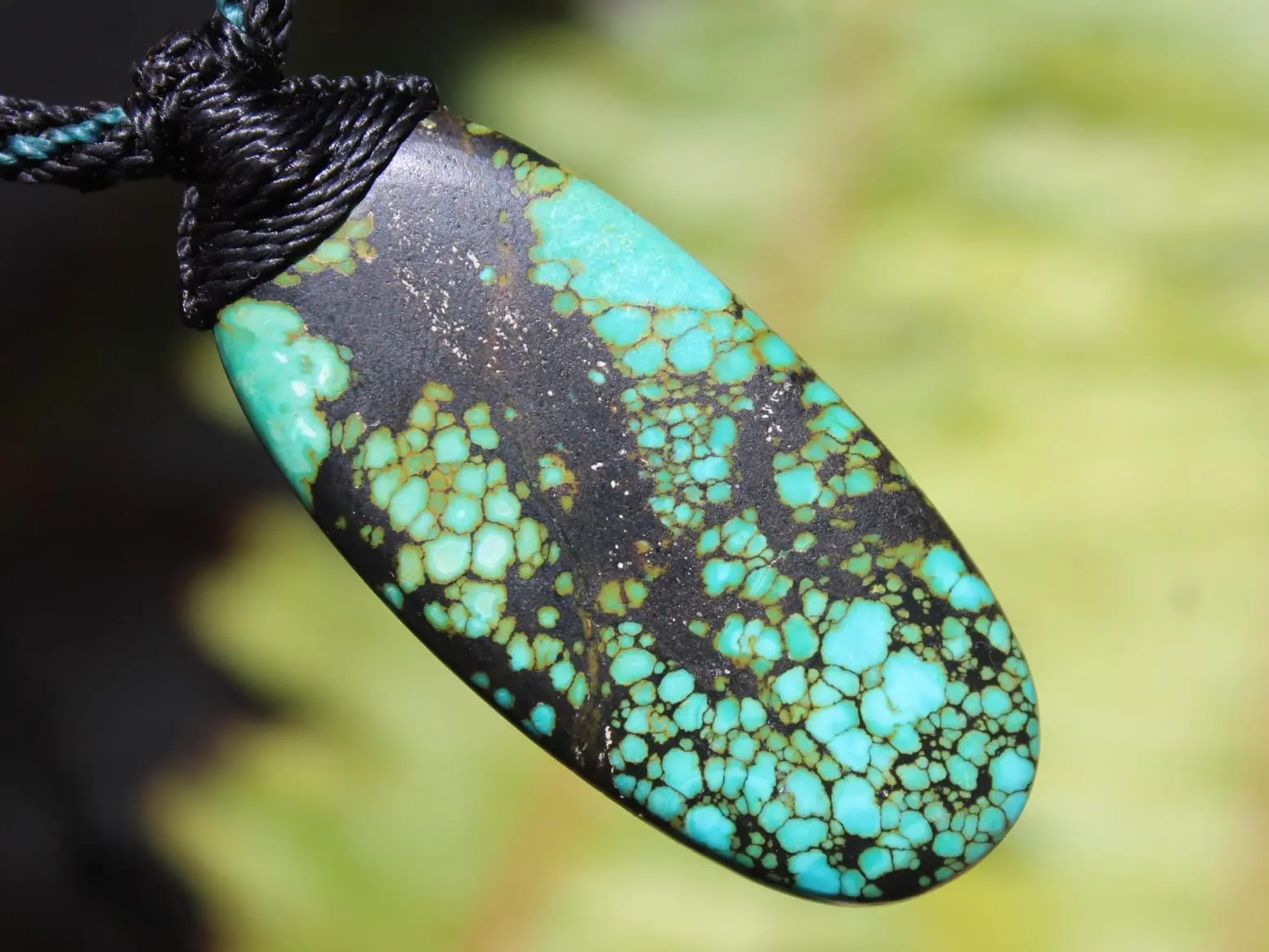 Huge Tibetan Turquoise Necklace • Natural Blue-Green Crystal Pendant • Handmade Vegan Jewelry • One-of-a-Kind Tribal Talisman