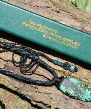 The turquoise displays stunning colours — from deep sky blue to aqua green — reflecting both the mountain spirit of Tibet and the oceanic energy of the Australian rainforest.