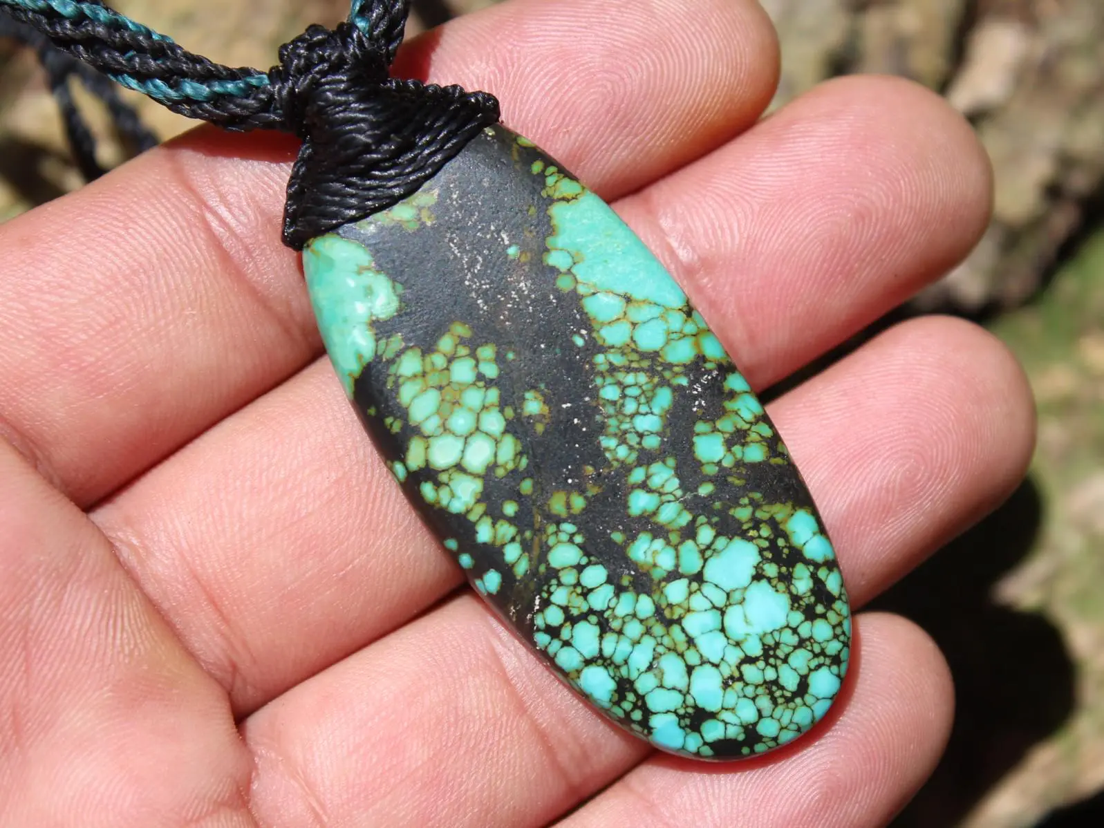 This huge natural Tibetan Turquoise pendant is a powerful statement piece — bold, grounding, and alive with uplifting energy.