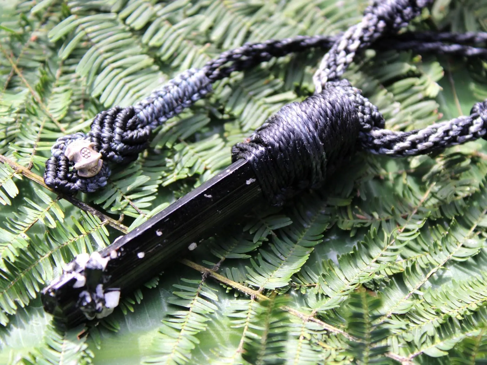 This is a powerful and protective Black Tourmaline with quartz crystal talisman, handcrafted by us here at Platypus Dreaming in Far North Queensland, Australia. This has been designed as part of the Nazar collection – it is a shamanic tool to ward off negative energies, and the 'evil eye'. The stone is from Afghanistan. Unlike other Tourmaline forms, Schorl Tourmaline – this variety of Black Tourmaline – is never transparent or even translucent… This talisman features a 1000 pure silver tribal bead that has been hand-cut and chiseled using traditional techniques.