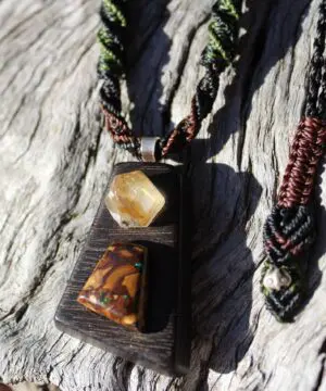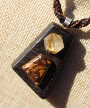 BOULDER OPAL and GOLD Rutile wood pendant, ,Red Cedar Wood,Shibari Macrame cord,October BirthStone,Healing crystal