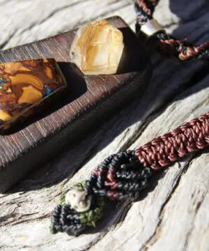 Opalized wood pendant necklace,green opal necklace,elven jewelry,petrified wood, australian made macrame cord,natural statement talisman