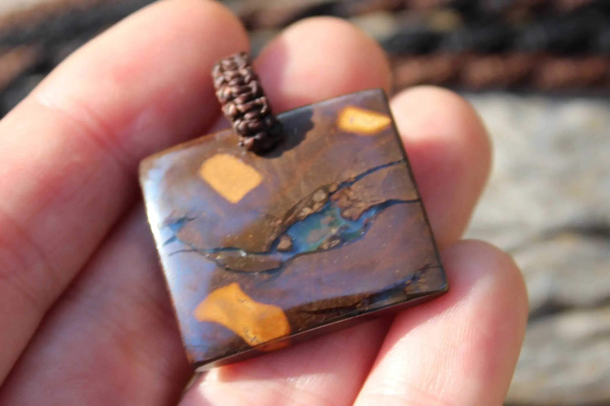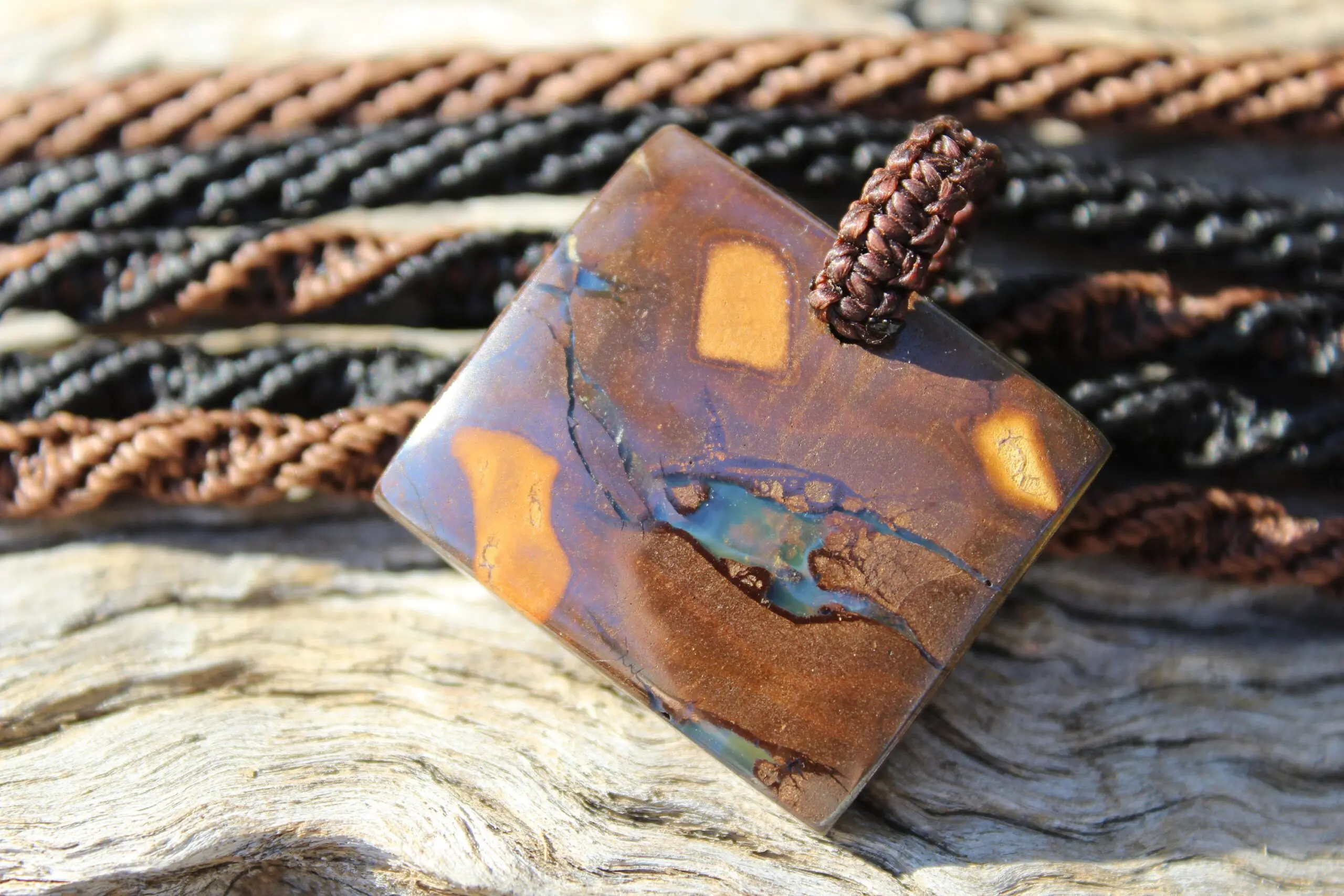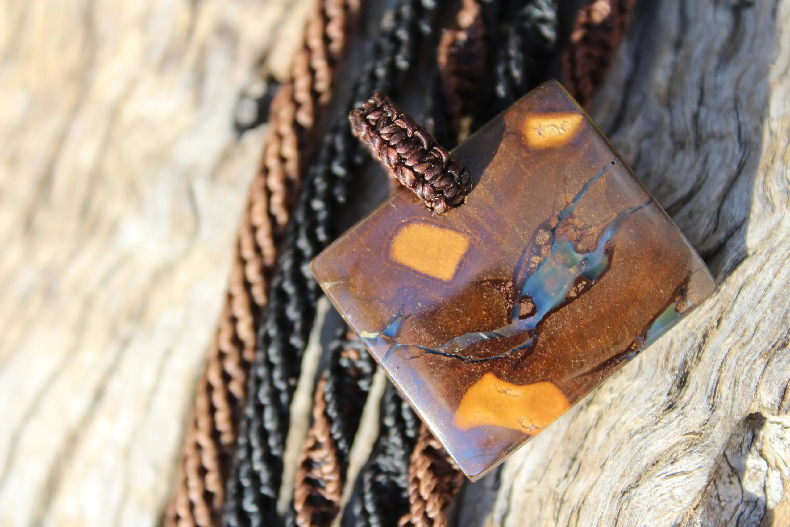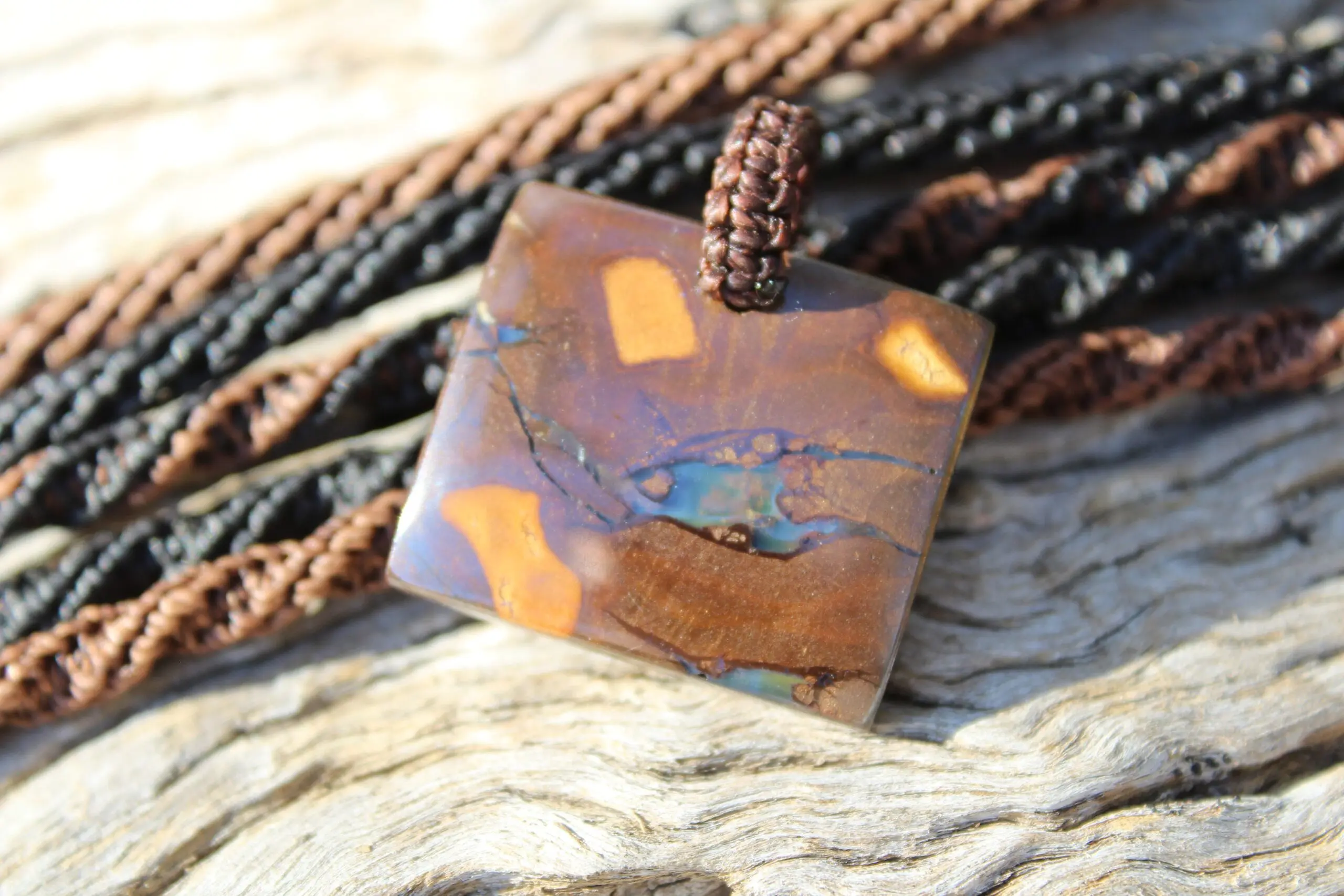 Tribal Boulder Opal Pendant Necklace.. Opal in matrix.