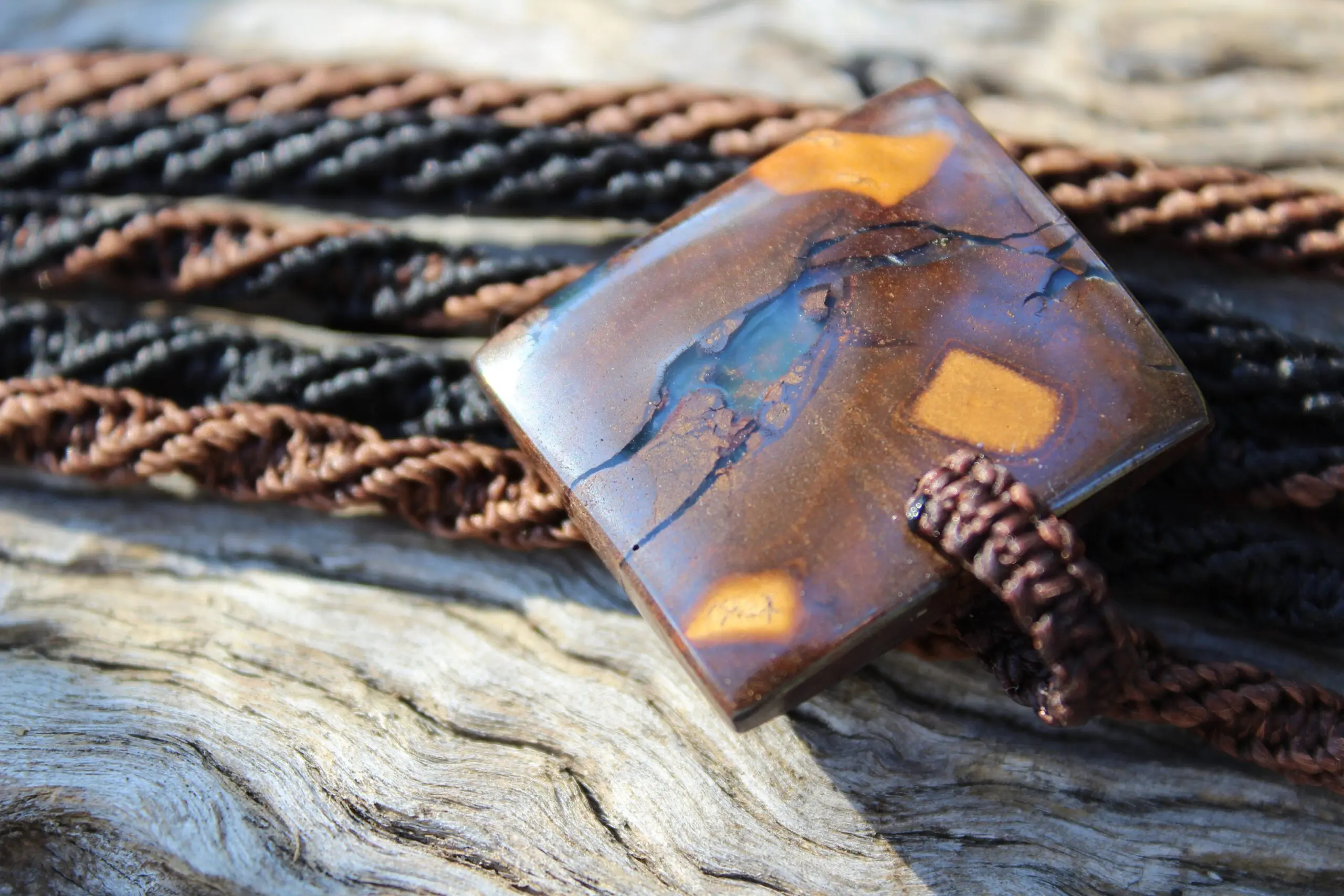 Pietersite Pendant, Pietersite Macrame necklace, Blue Tiger Talisman, gift for men, gif for her