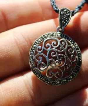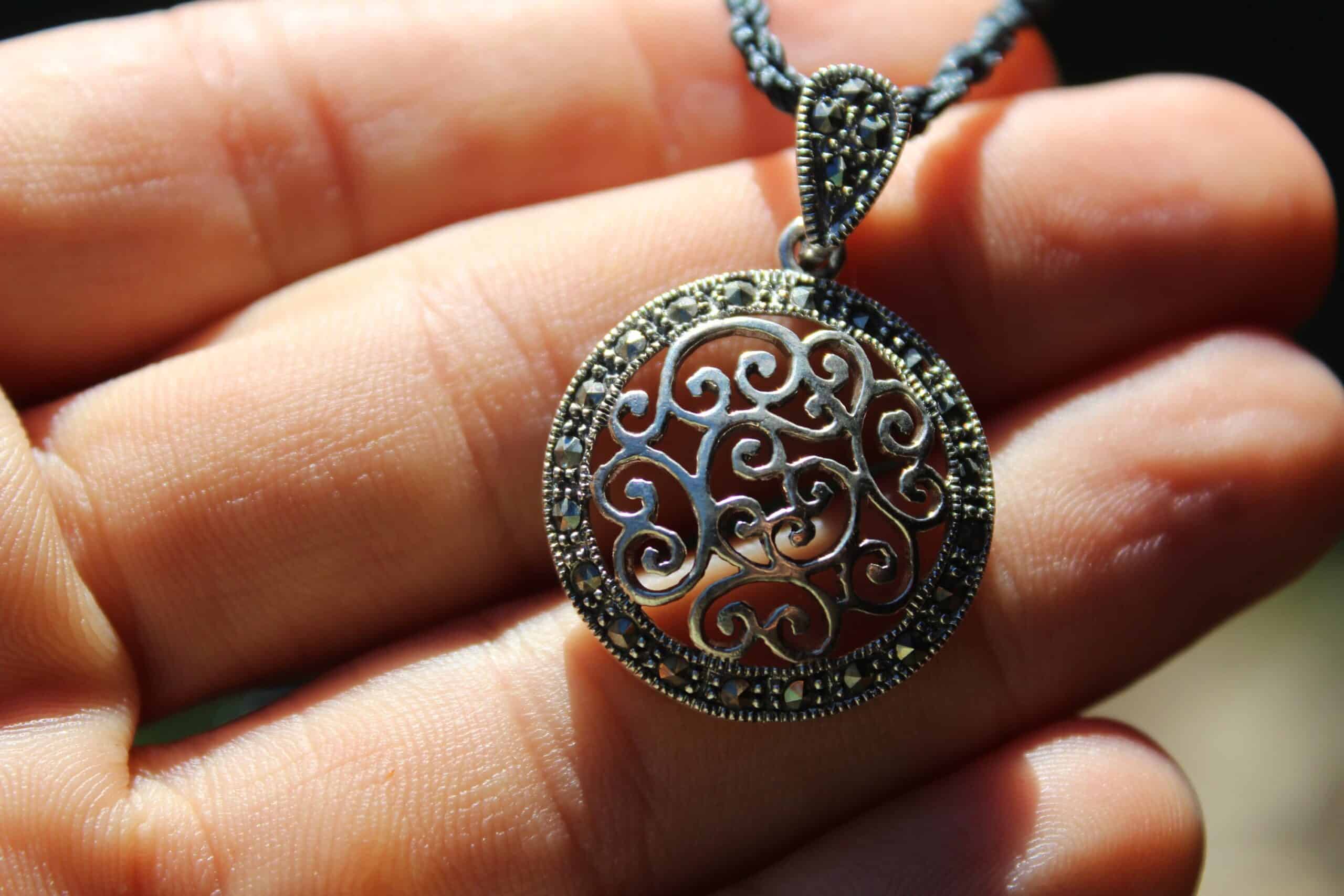Celtic Marcasite Jewelry,Sterling Silver Pendant Necklace,Pyrite Crystal Jewelry,Art Deco,Gemstone,
