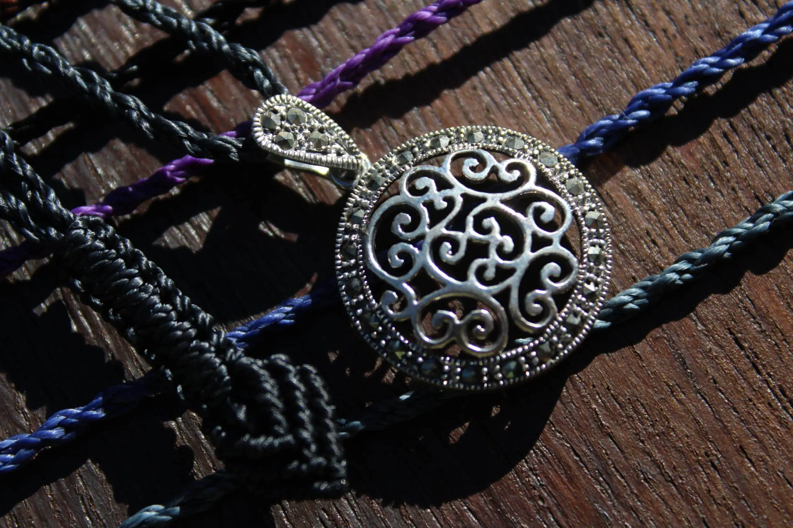 Celtic Marcasite Jewelry,Sterling Silver Pendant Necklace,Pyrite Crystal Jewelry,Macrame Cord,Art Deco,Gemstone,Australian made