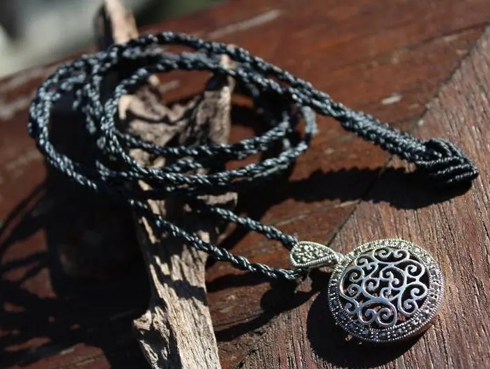 Celtic Marcasite Jewelry,Sterling Silver Pendant Necklace,Pyrite Crystal Jewelry,Shibari Macrame Cord,Art Deco,Gemstone,Elven, elf cosplay,