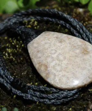 Featuring a large piece of ancient fossilized coral, this powerful talisman connects you to the wisdom of the ocean and the memory of Earth itself. The coral is millions of years old, transformed through mineralization deep underground into a solid gemstone that still holds the beautiful, intricate patterns of the living coral it once was. Carefully sliced and polished to reveal its natural art, each piece is entirely unique — no two ever alike.