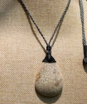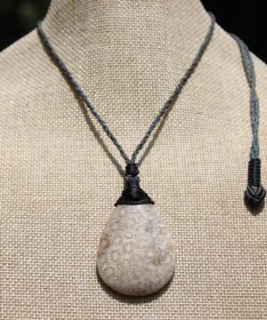 Australian Fossilized Coral Necklace • One-of-a-Kind Crystal Talisman • Handmade Adjustable Pendant on Waxed Tropical Cord