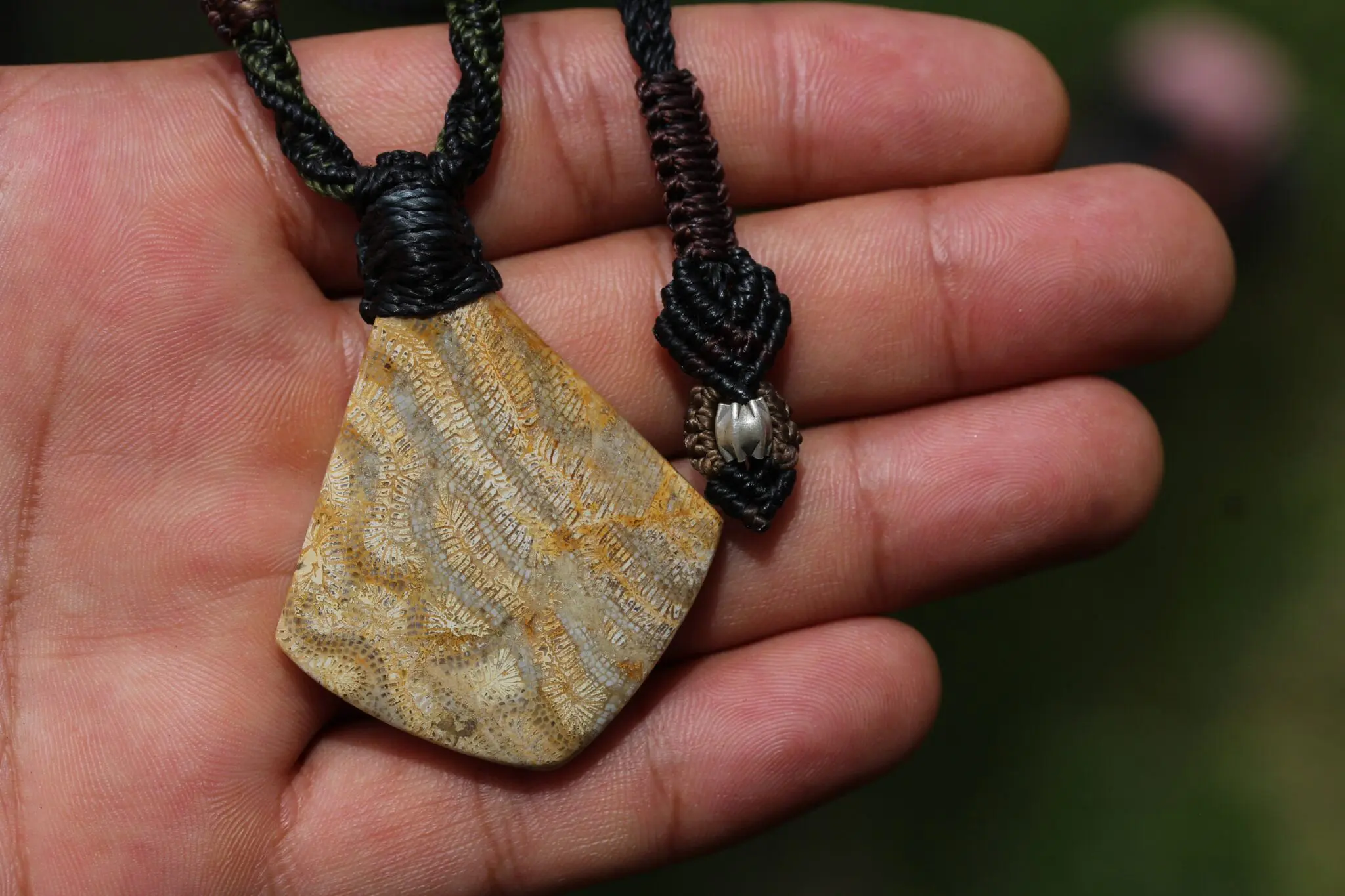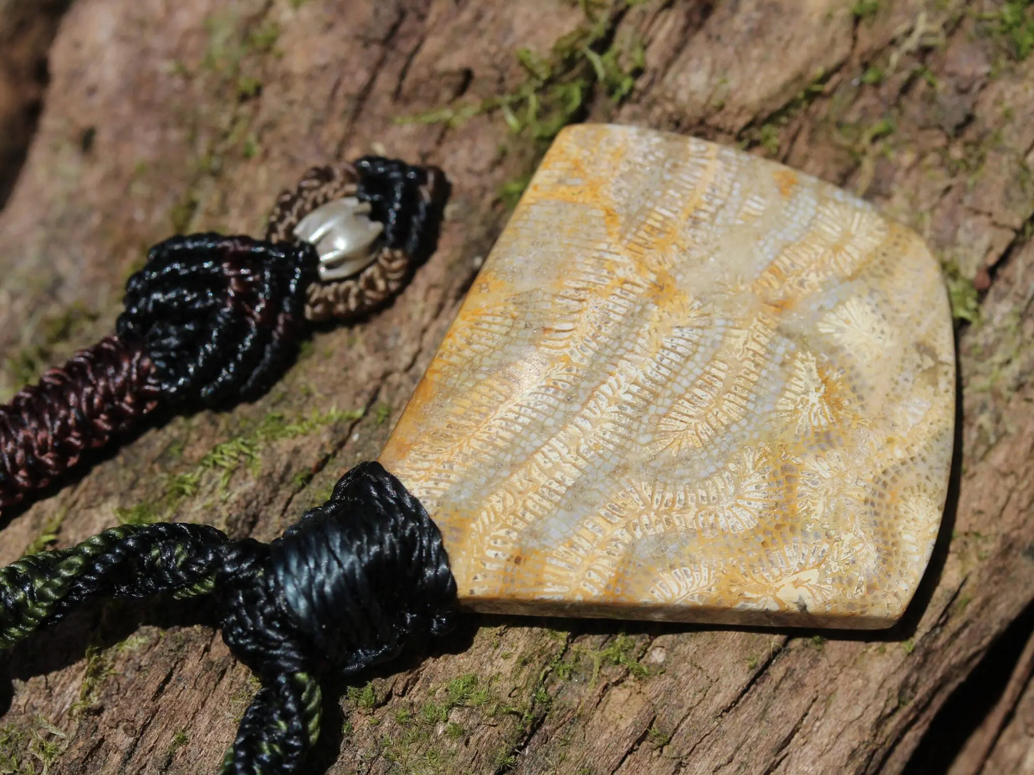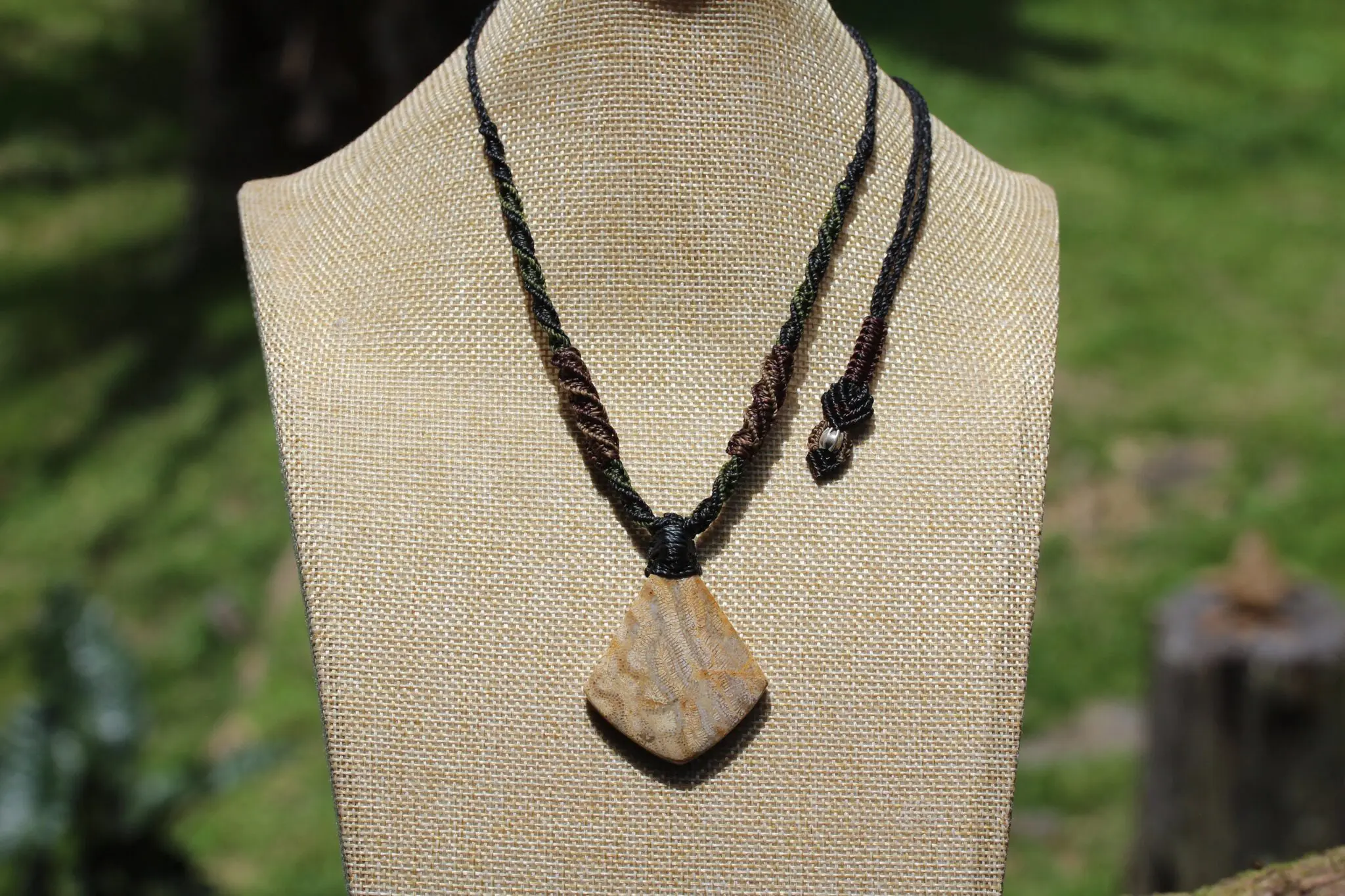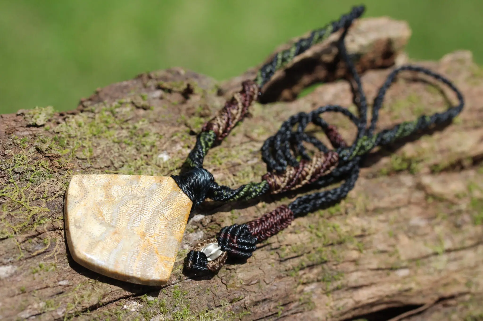 Australian Fossilized Coral Necklace • One-of-a-Kind Crystal Talisman • Handmade Adjustable Pendant on Waxed Tropical Cord