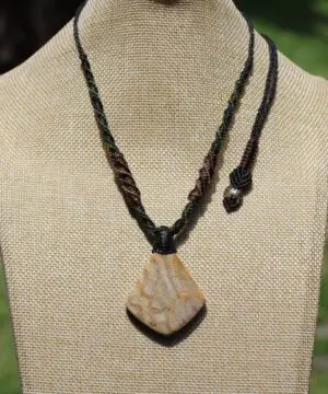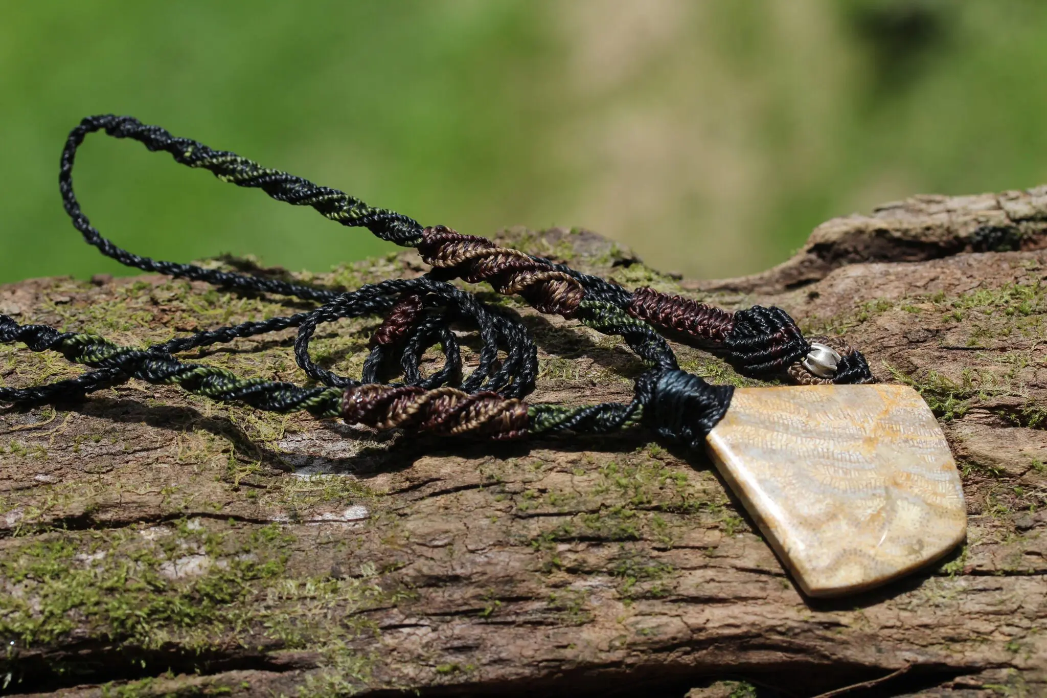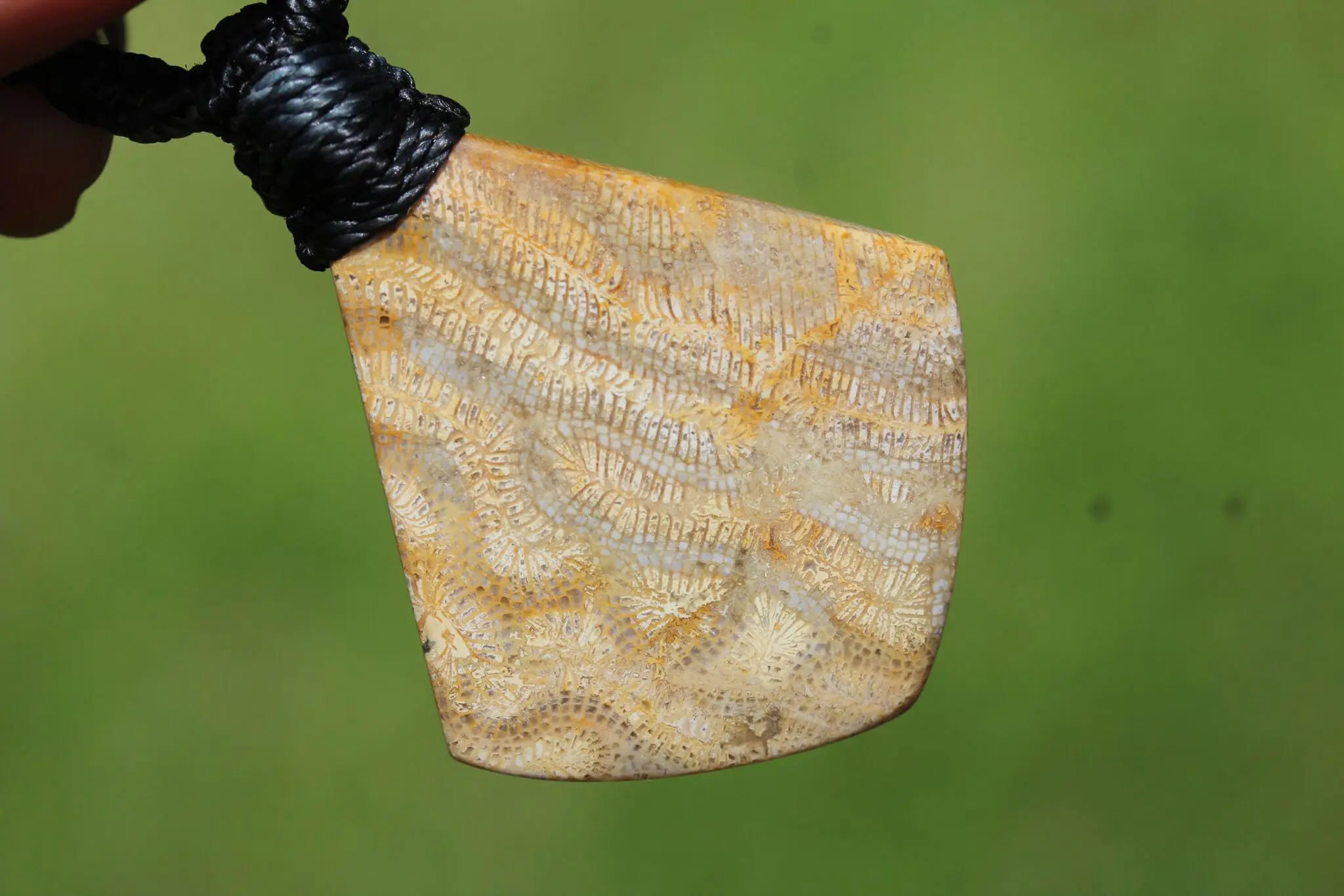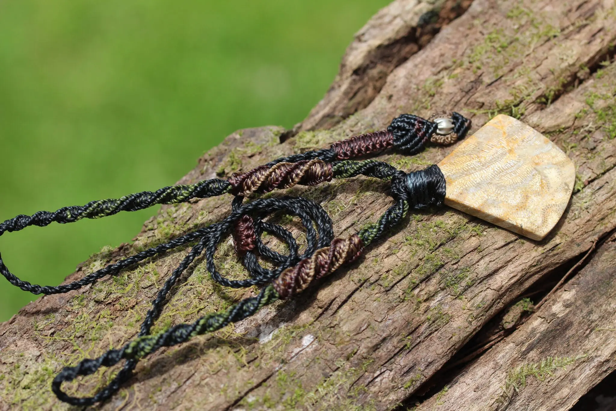 Australian Fossilized Coral Necklace • One-of-a-Kind Crystal Talisman • Handmade Adjustable Pendant on Waxed Tropical Cord