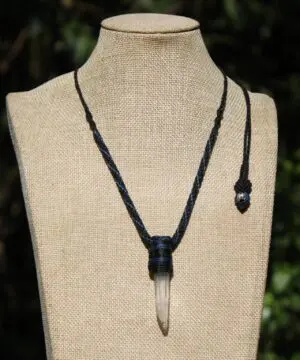 Each necklace is handwoven using ancient macramé knot techniques, crafted from high-quality vegan waxed cord for strength, comfort, and flexibility.