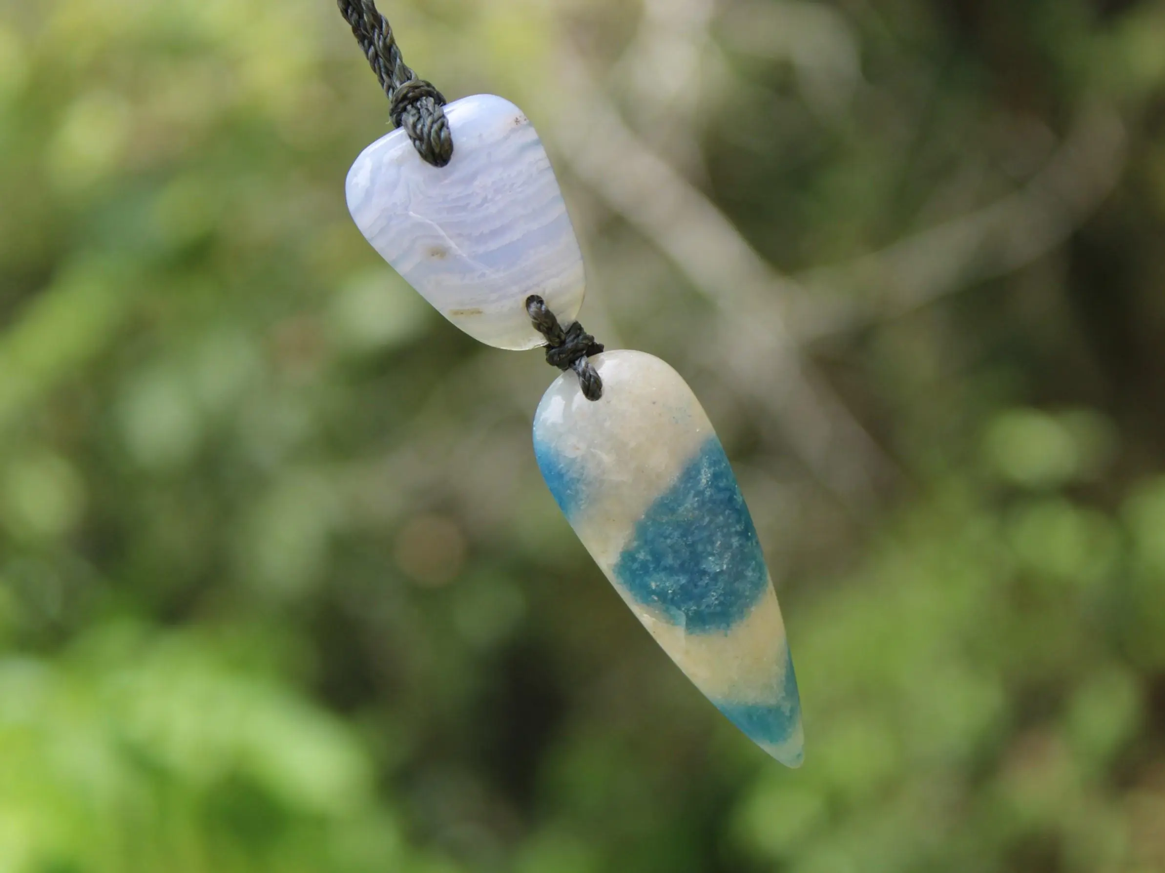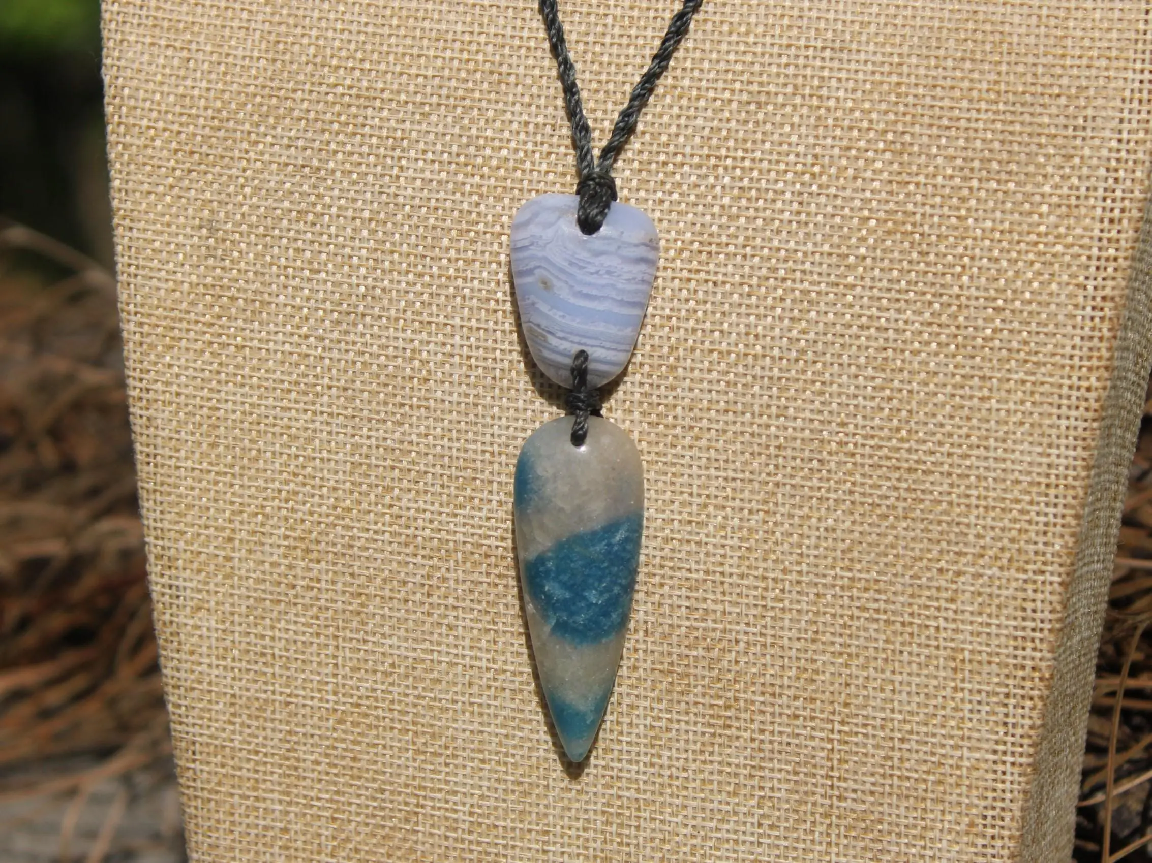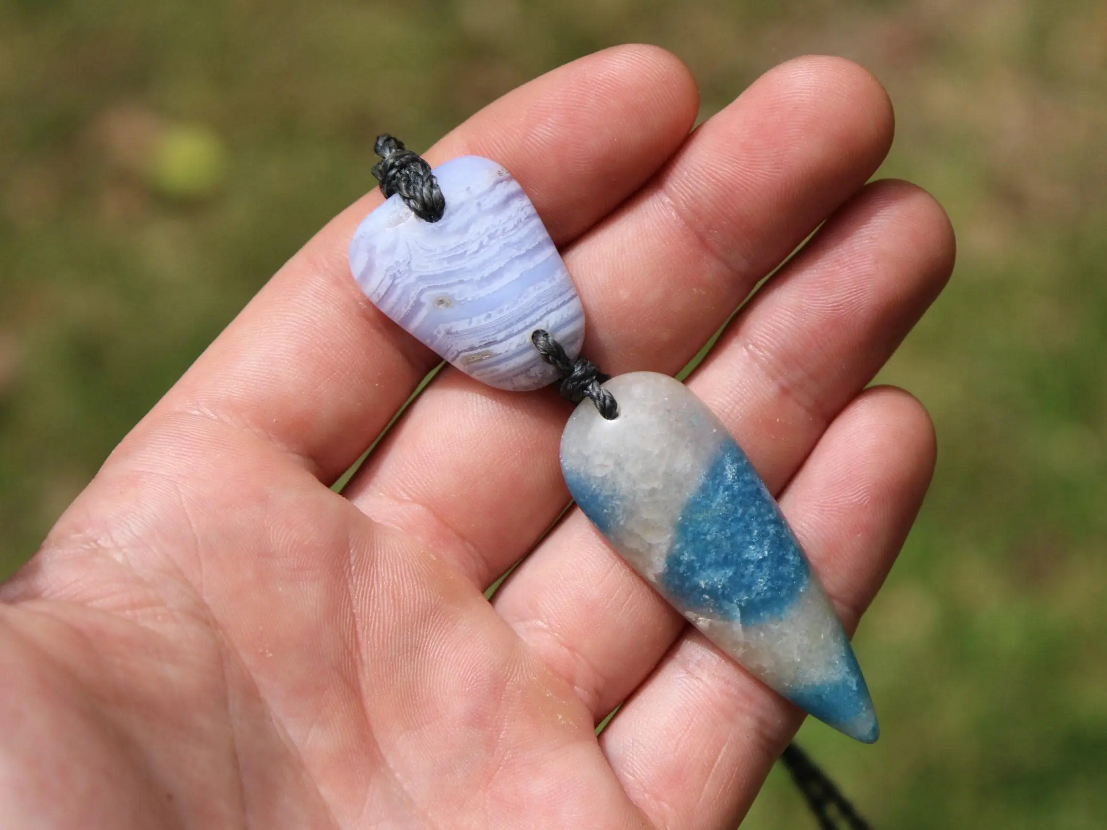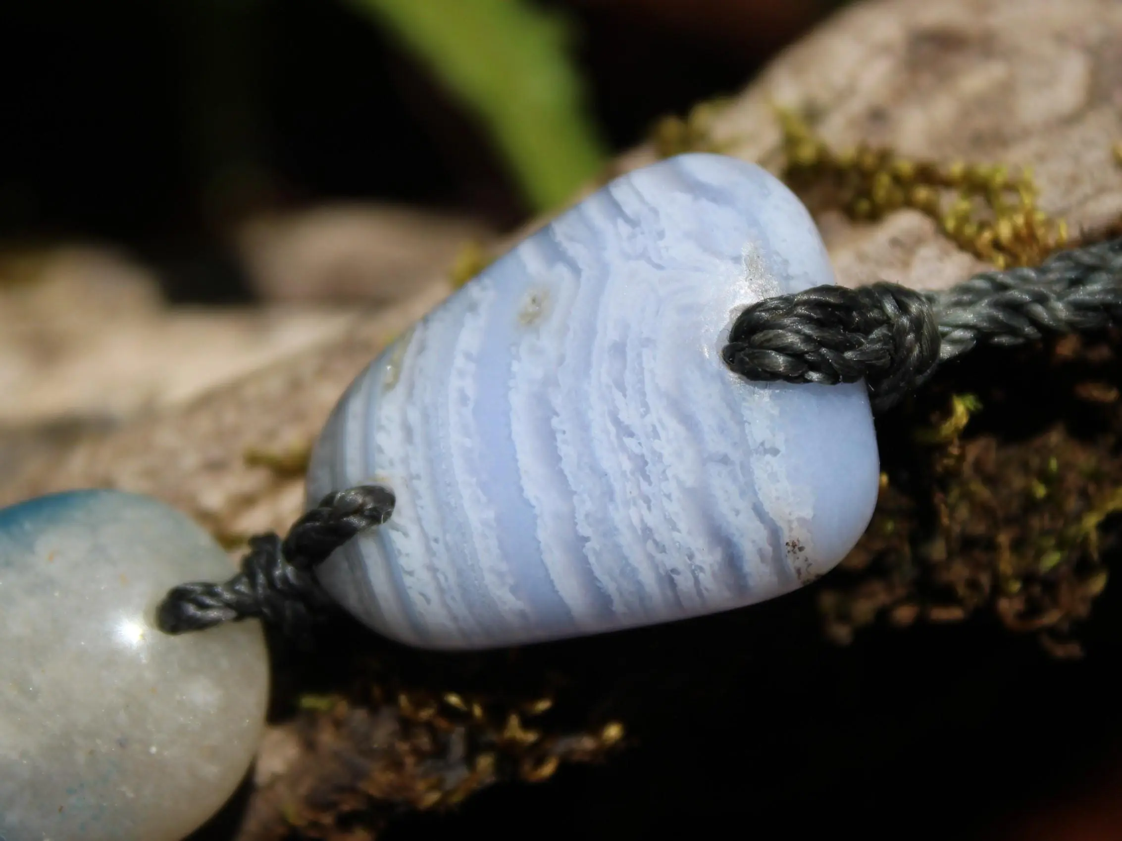 This soothing and powerful talisman features rough Dumortierite in Quartz paired with the gentle energy of Blue Lace Agate.