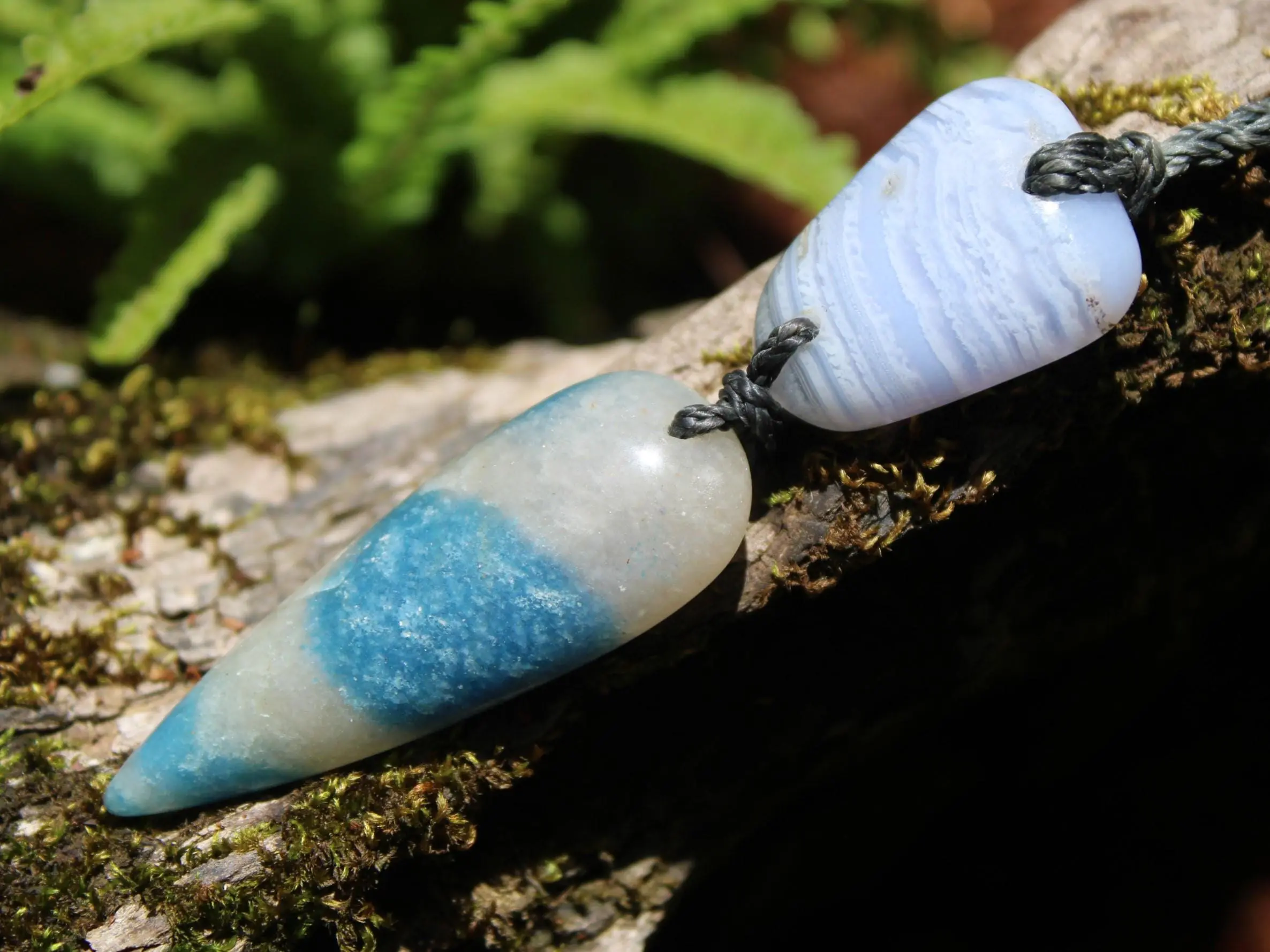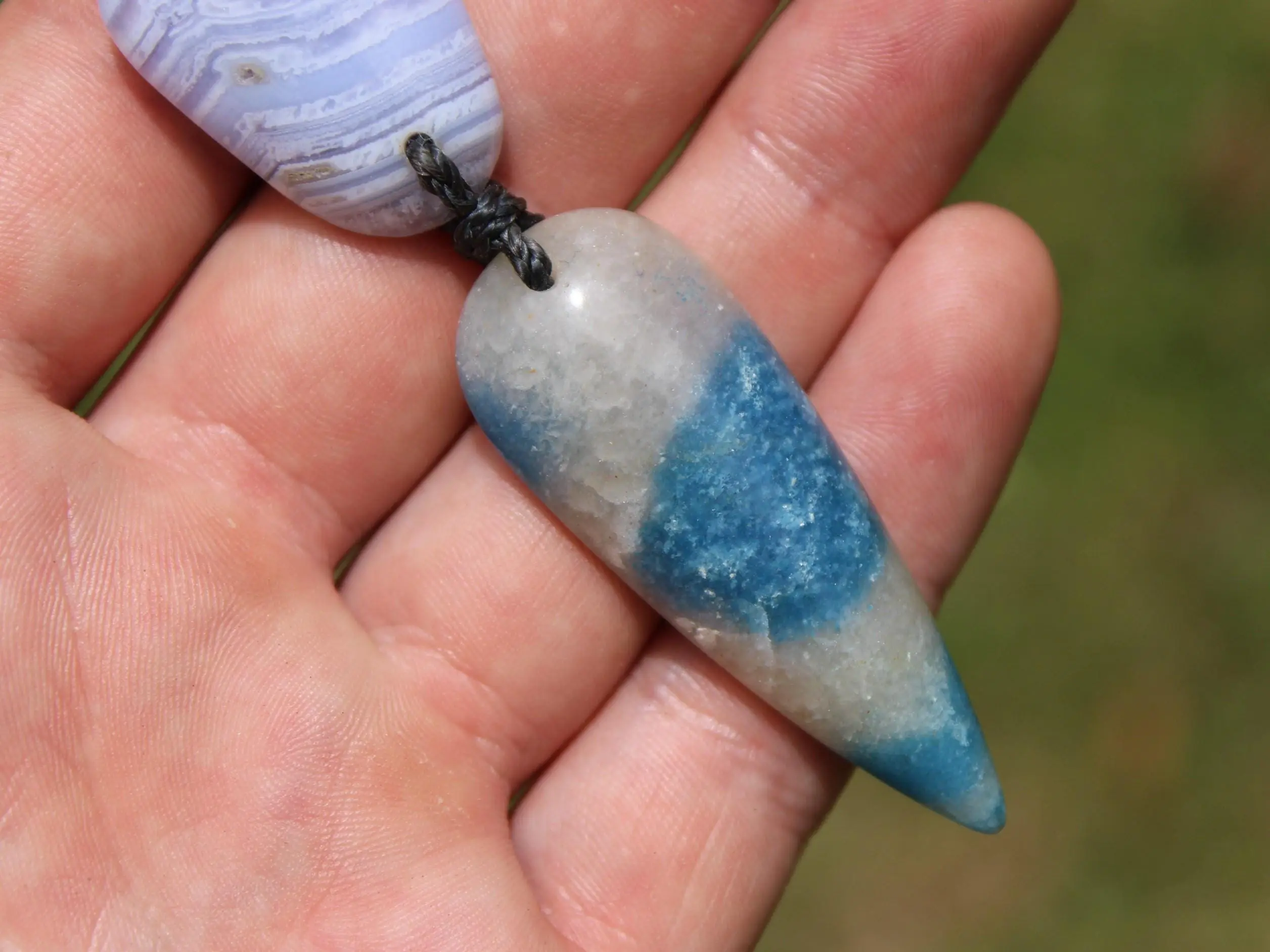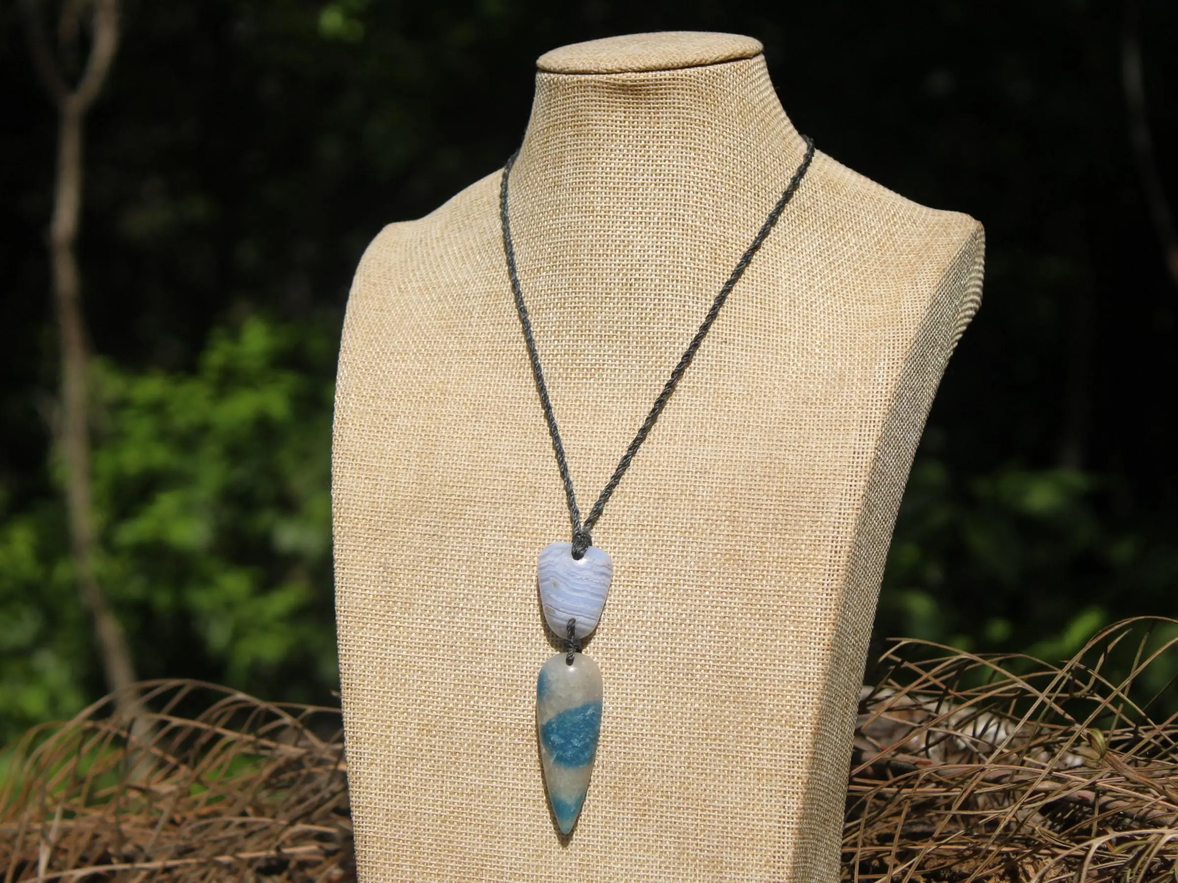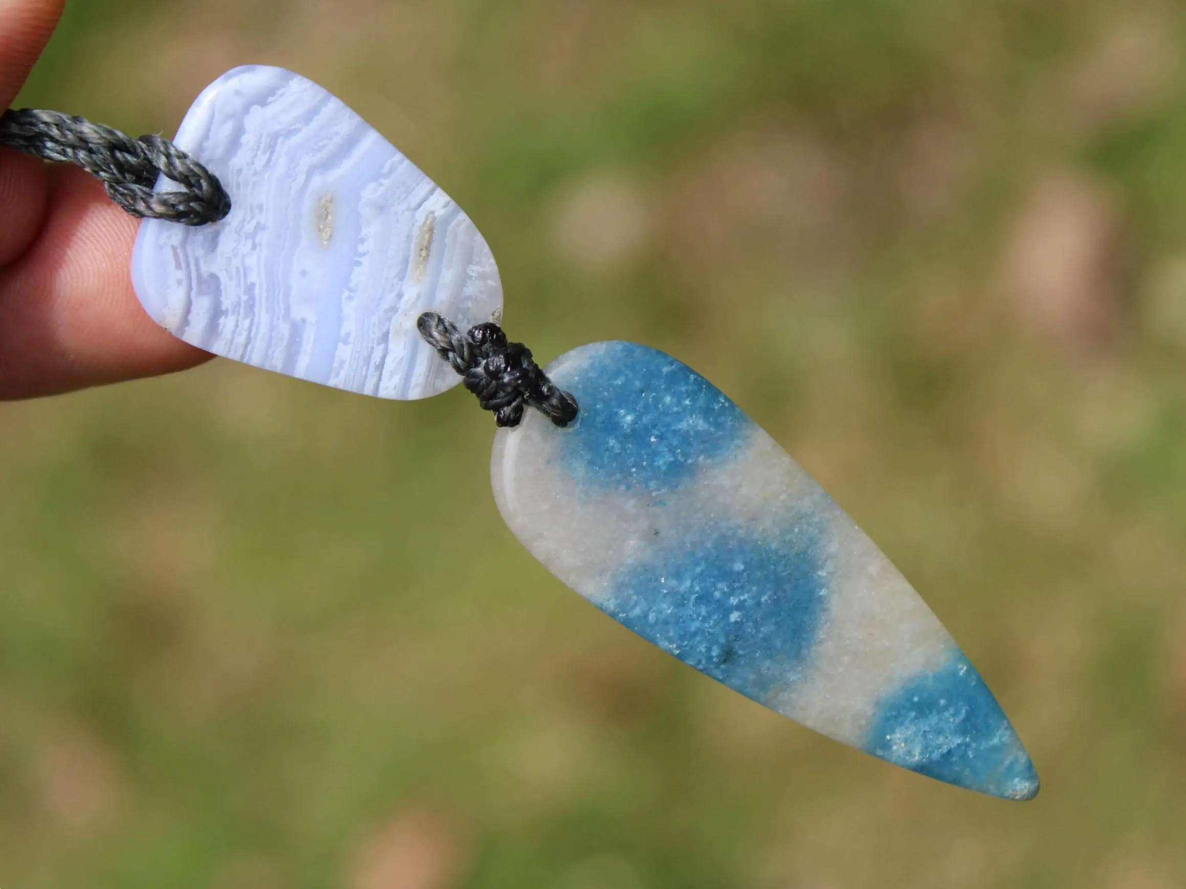 This soothing and powerful talisman features rough Dumortierite in Quartz paired with the gentle energy of Blue Lace Agate.
