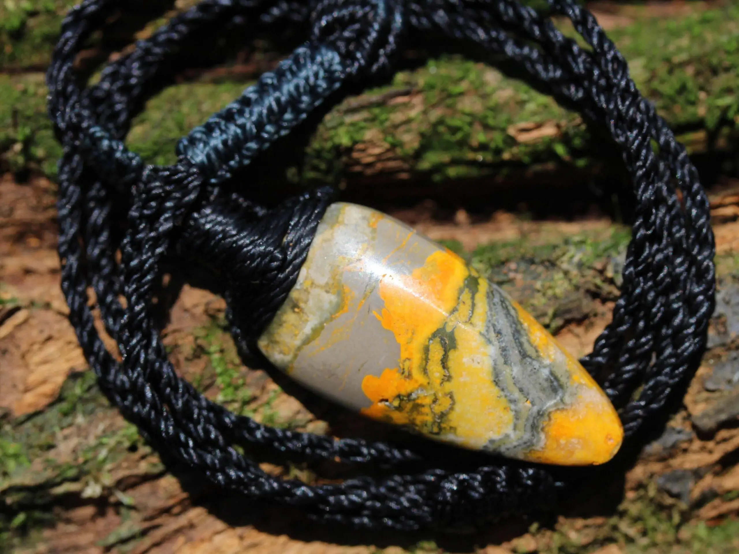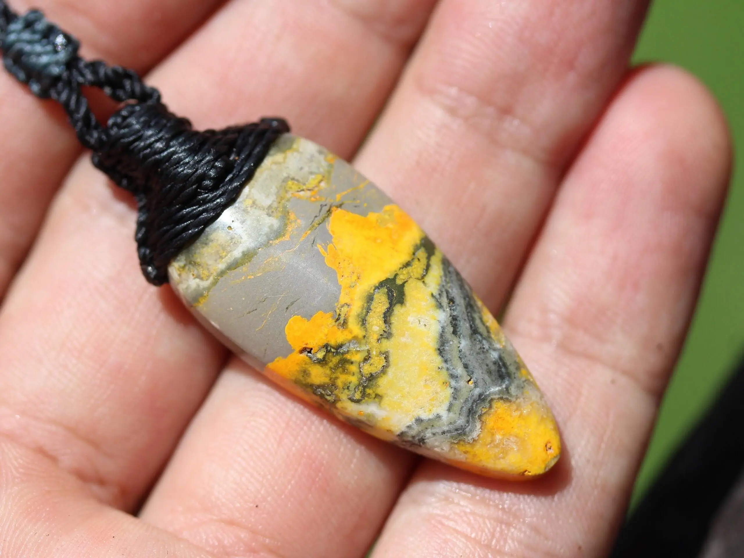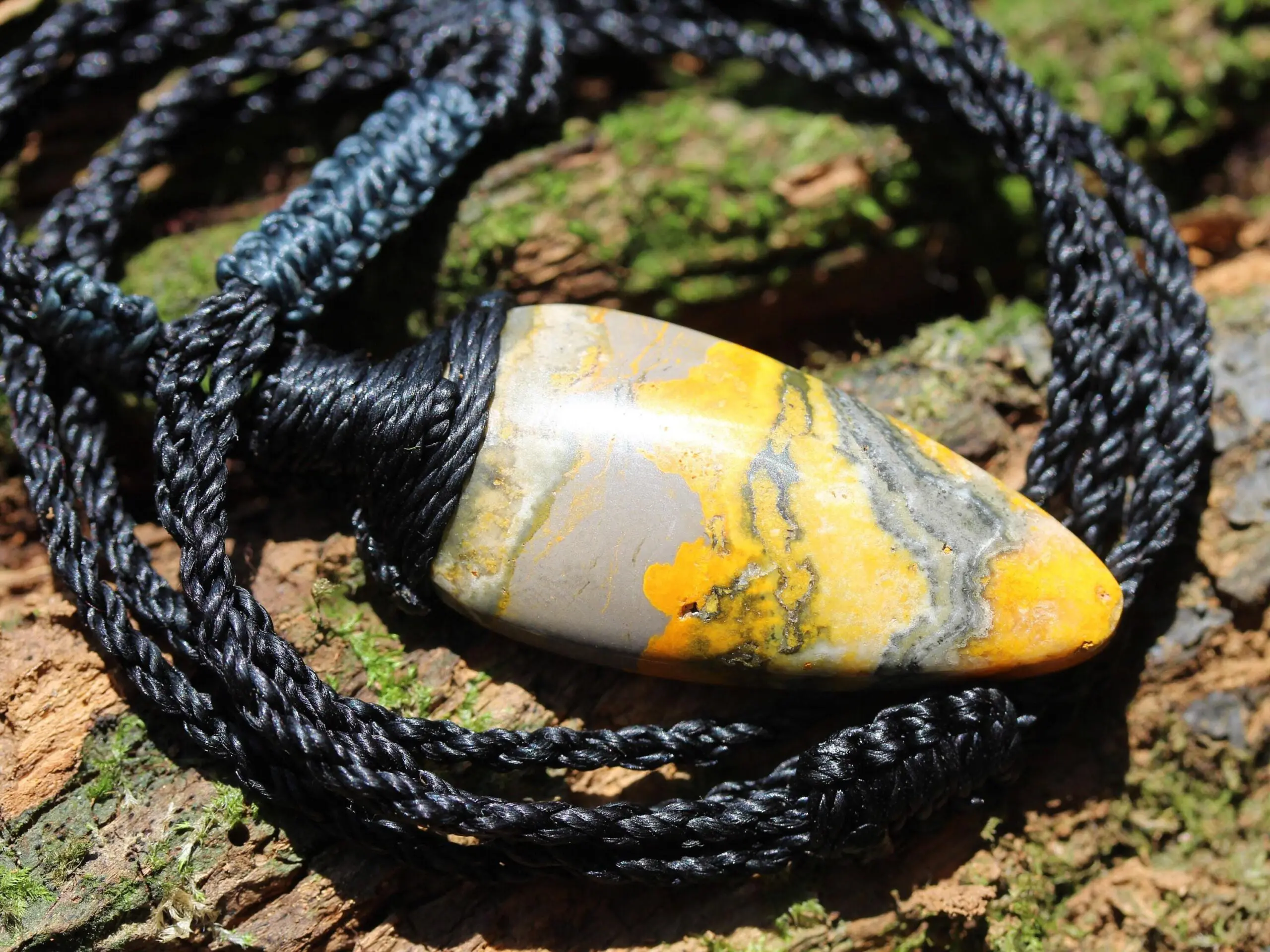 This is a AAA+ quality Bumble Bee Jasper crystal talisman with stunning deep colours of yellow, brown and white. The meaning of its name relates to the fact that the colors and swirls resemble the colors on bumble bees. It has been handcrafted by us here at Platypus Dreaming, in Far North Queensland, Australia. This stone is said to be a mixture of a number of minerals,ash from the volcano. These stones come from the island of West Java in Indonesia, and were hand dug in 2017. Jasper is a strong earth energy stone, that embodies within it the strong energy of the volcano from which it was birthed.