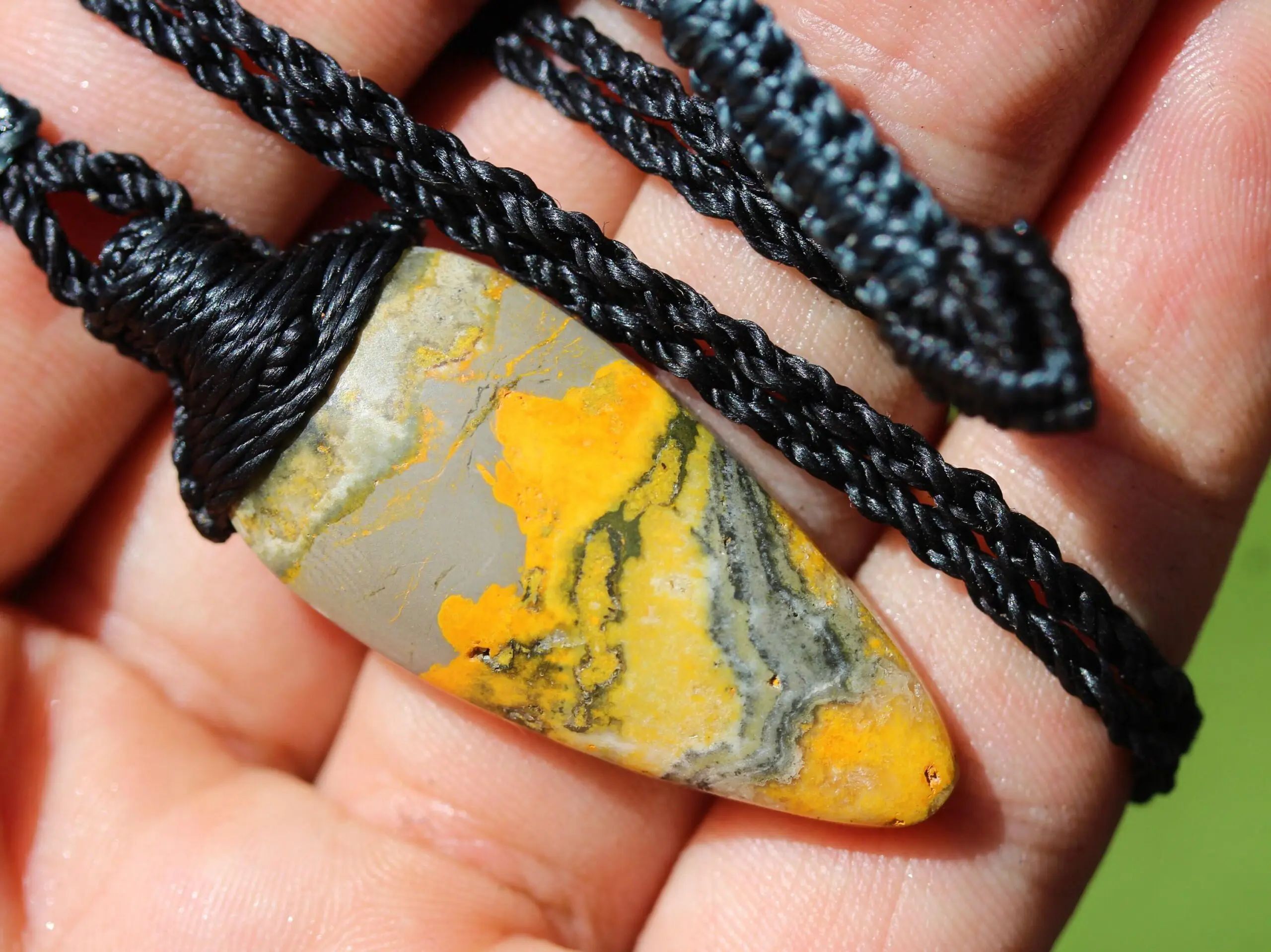 Australian Outback Jasper Necklace • Healing Crystal Pendant • Tribal Stone Jewelry • Australian Handmade Thin Macrame Tropical Cord