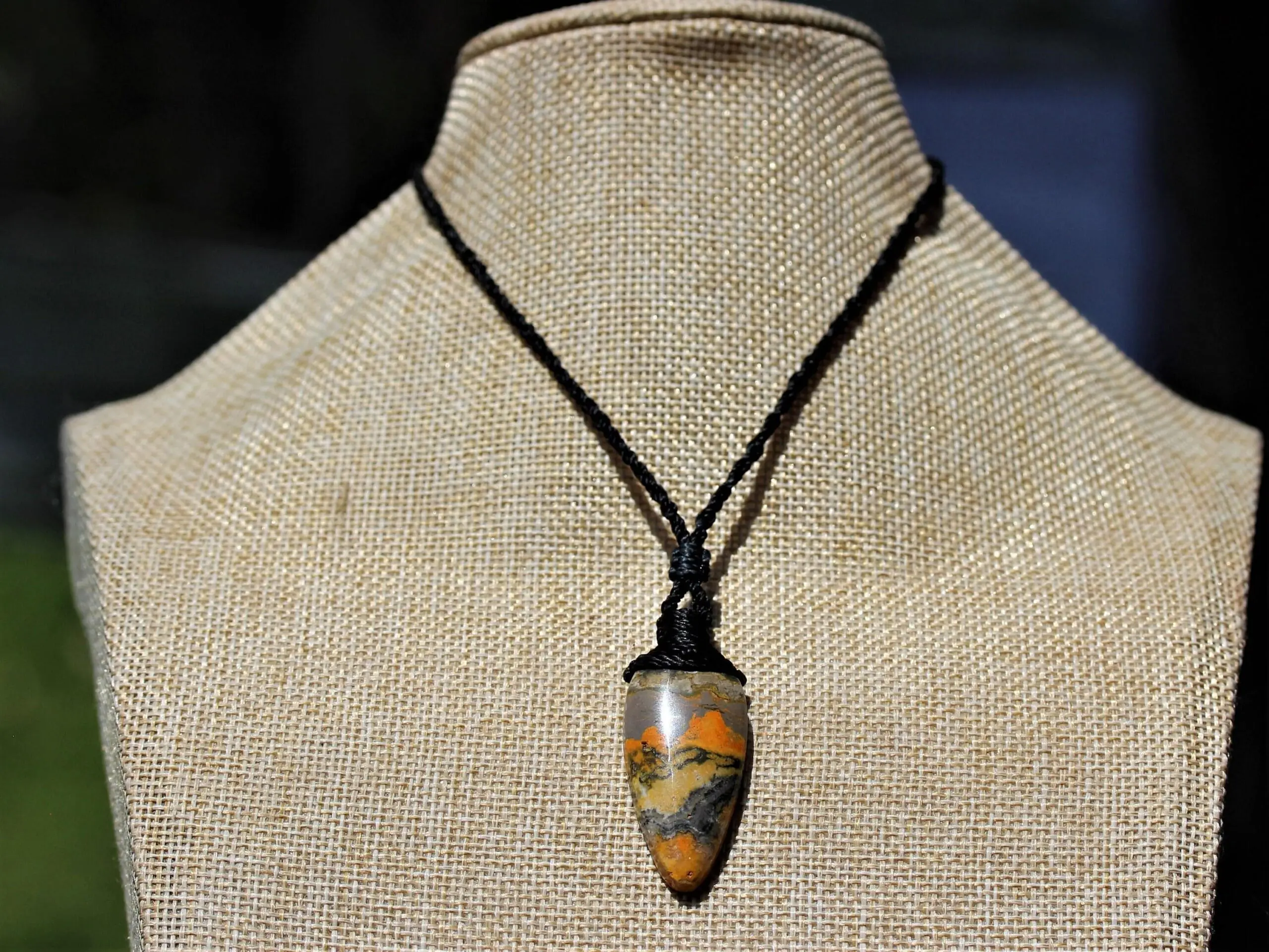 Tiger Agate necklace, Australian Agate Pendant, shibari cord. Elven jewelry, elf cosplay, platypus dreaming