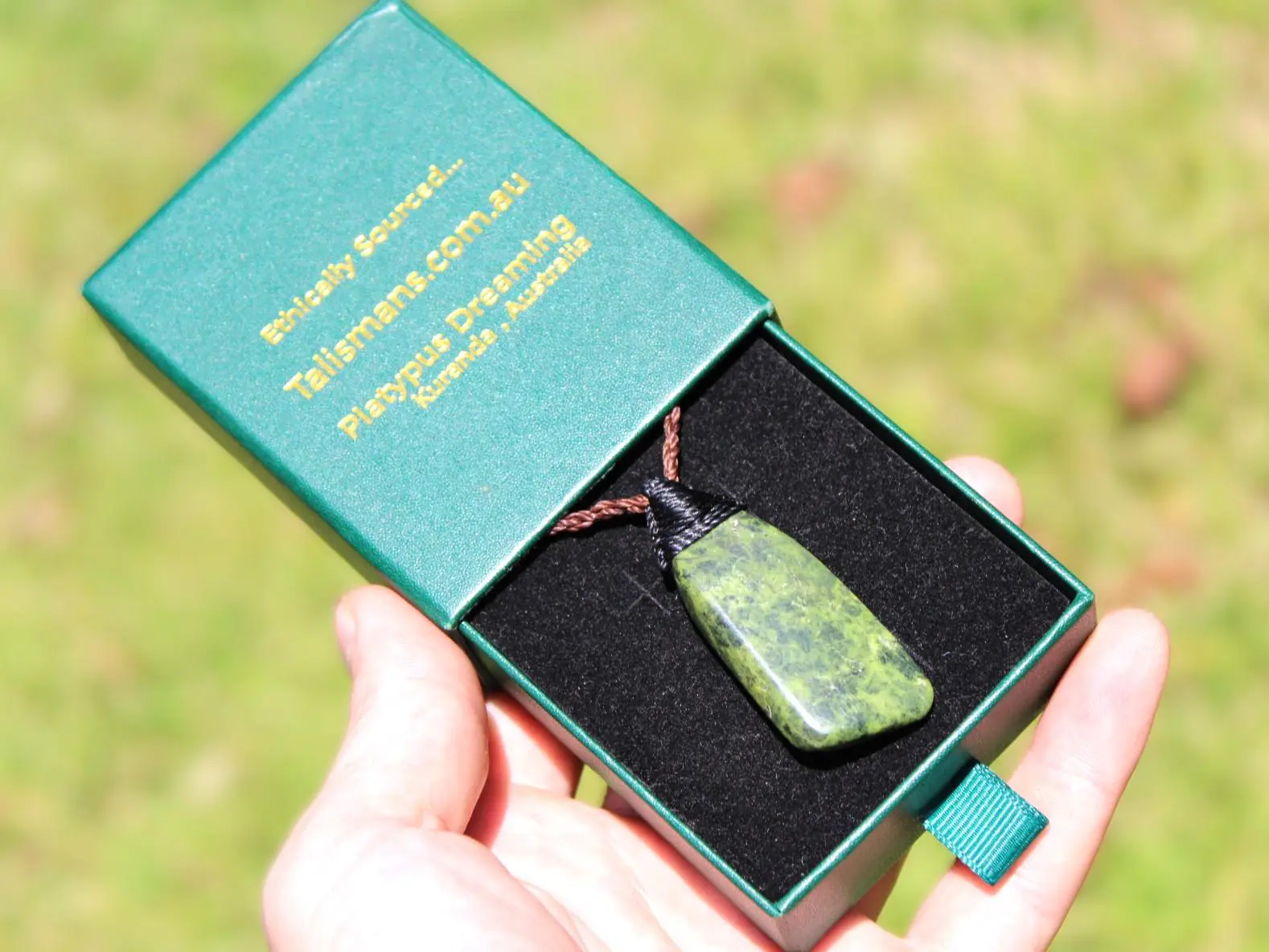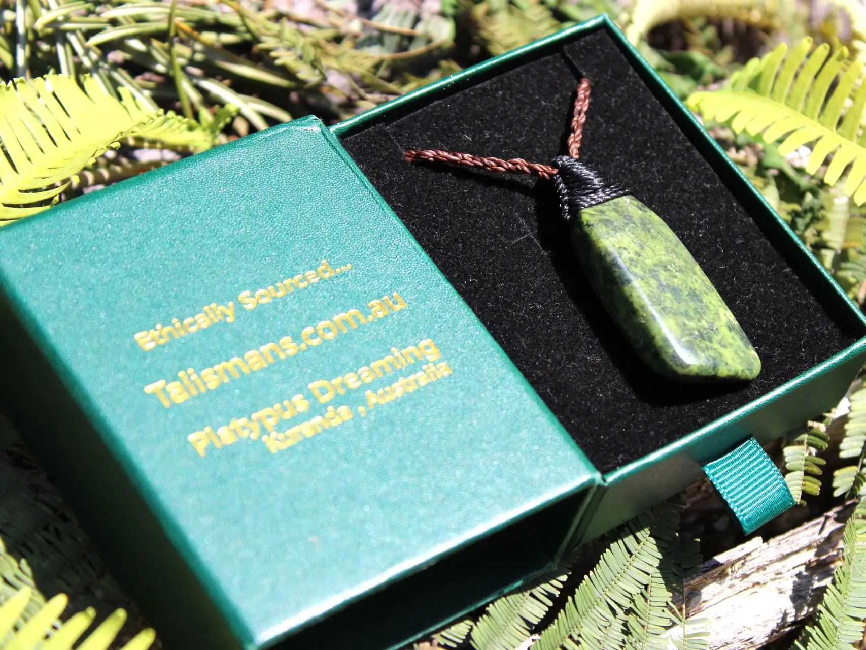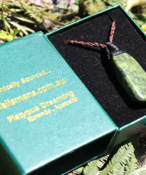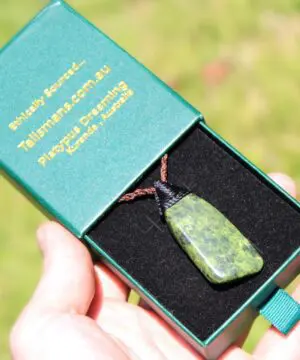 This is exceptionally high quality Atlantisite – from Tasmania, Australia. This is a AAA+ bright green and purple colour which is very hard to find! This talisman is also doublesided. It has been handcrafted by us here at Platypus Dreaming in the beautiful rainforests of Kuranda, QLD Australia. Features a 1000 pure silver tribal bead that has been hand-cut and chiseled using traditional methods.
