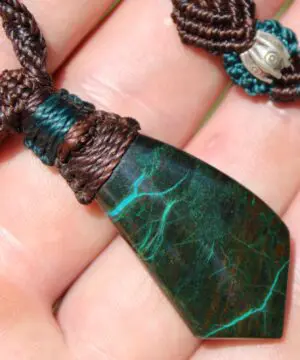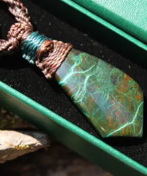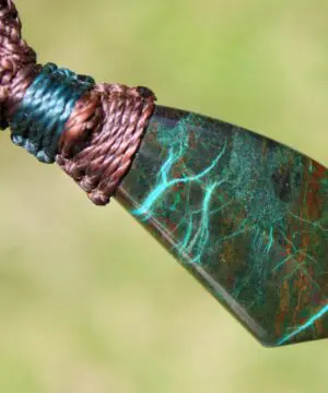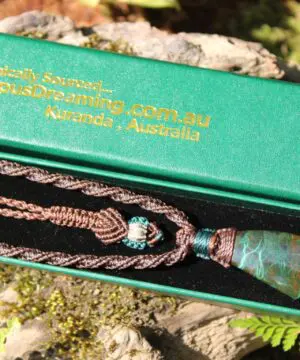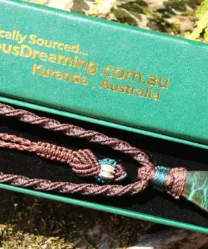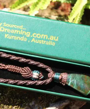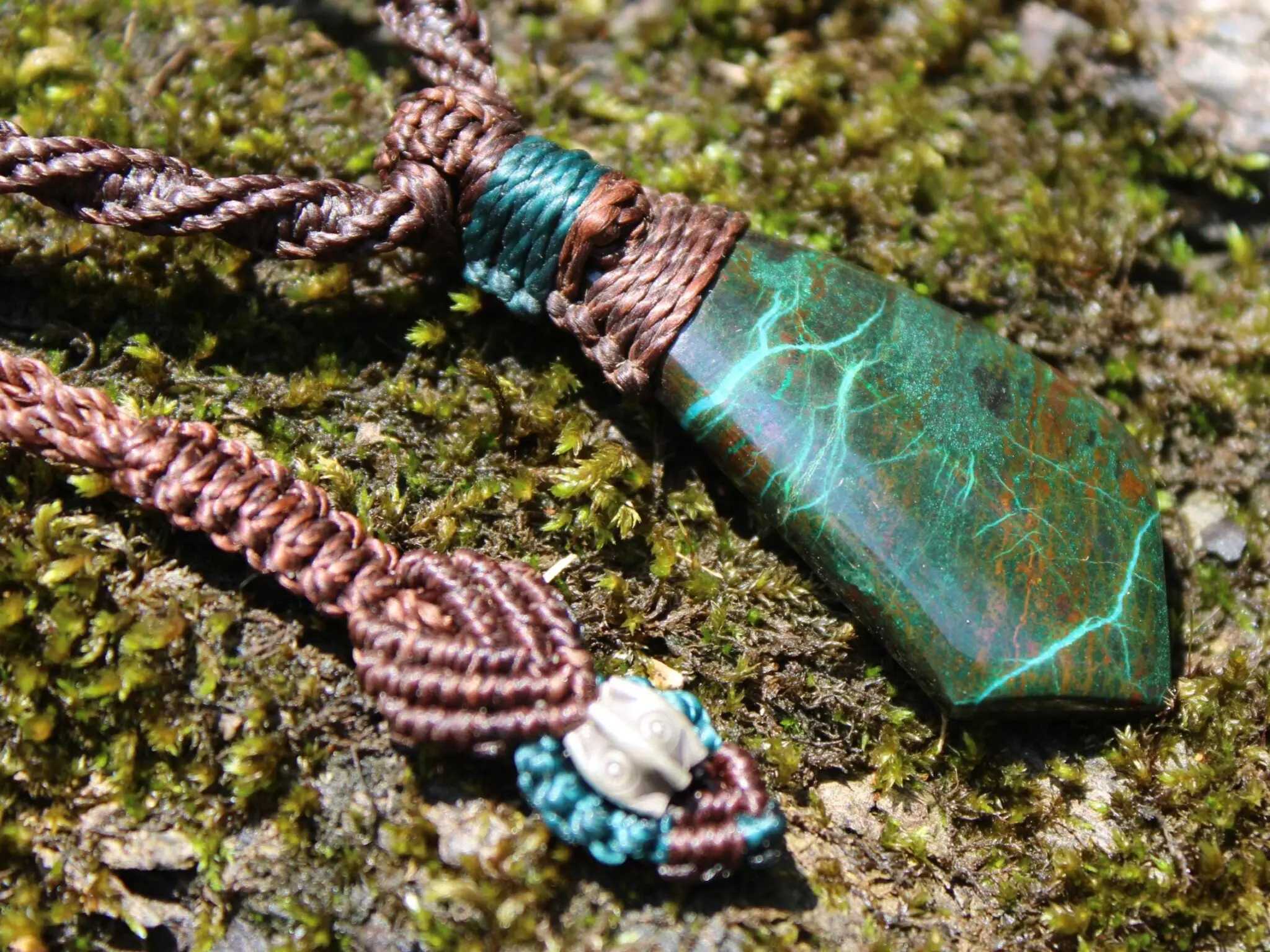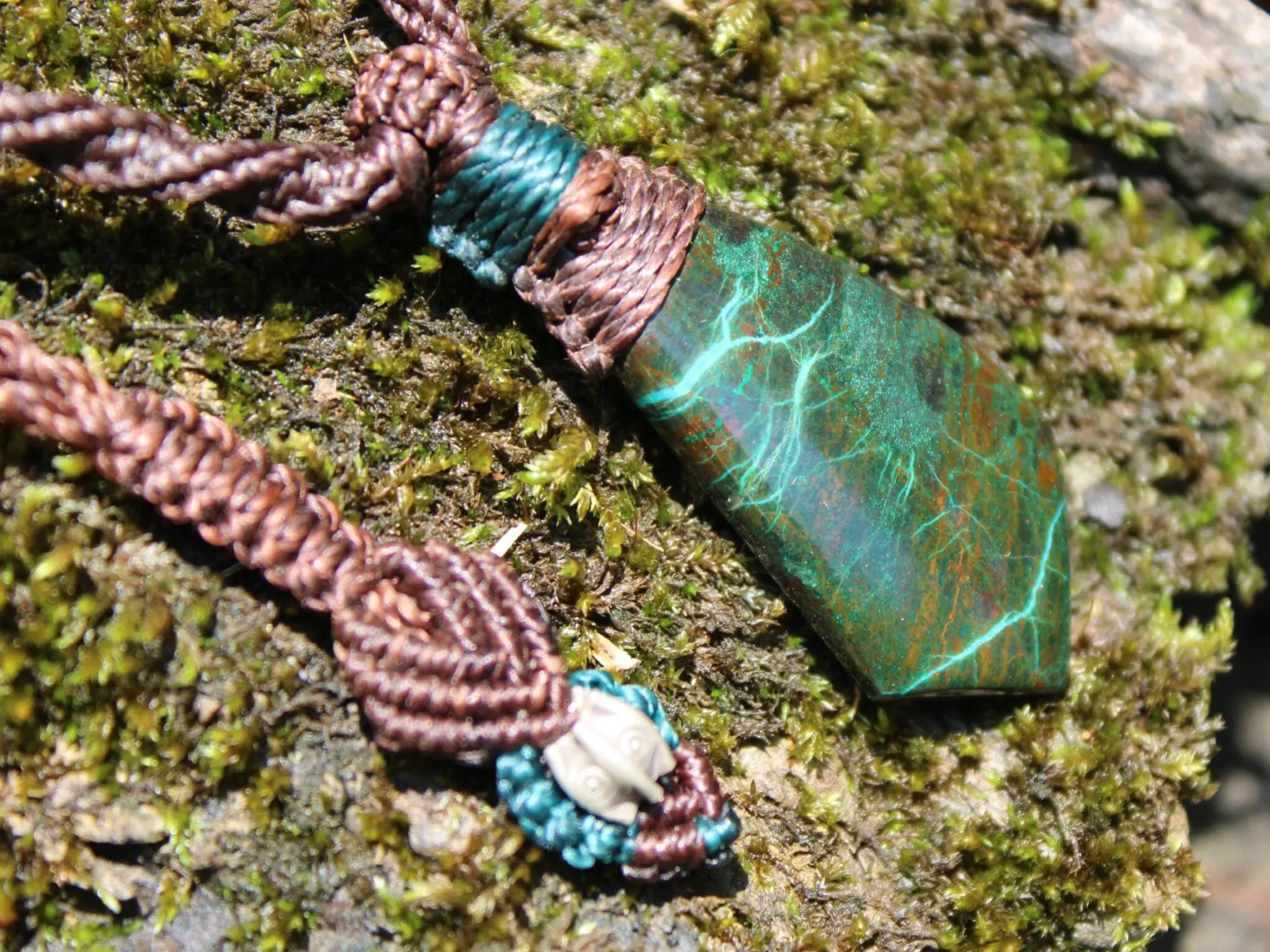 This is a powerful and rare Australian Chrysocolla crystal talisman, handcrafted by us here at Platypus Dreaming in the lush rainforests of Far North Queensland, Australia.