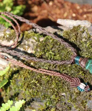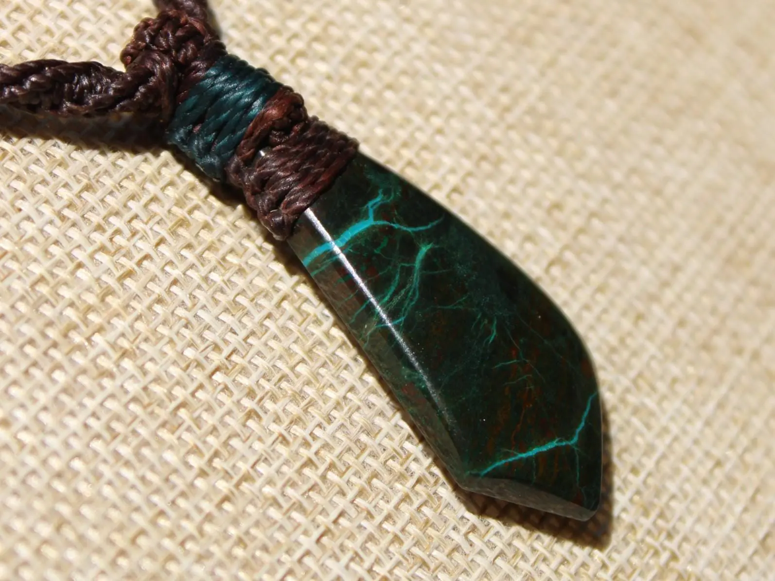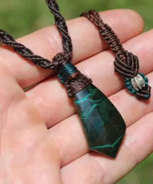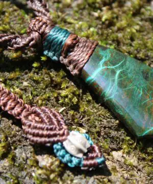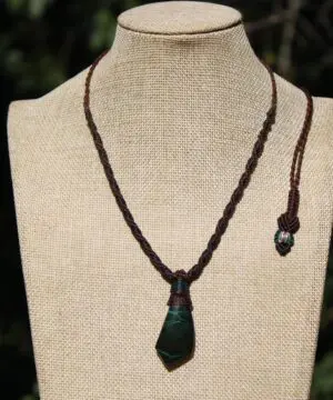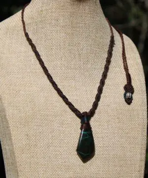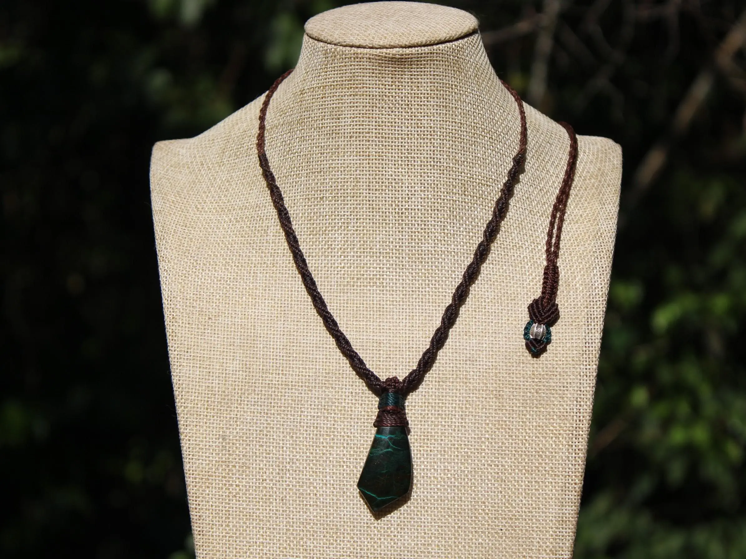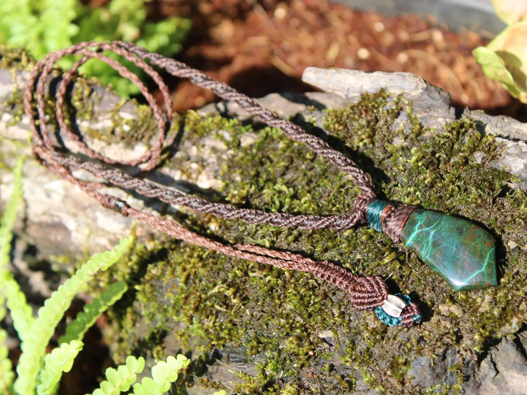 Each necklace is a collaboration of love and craftsmanship — the stone was hand-cut and polished by my husband, while I handwove the macramé cord using an ancient knot technique. Together, the energy of this piece shines with care, devotion, and intention.