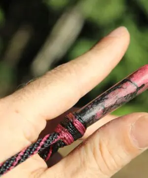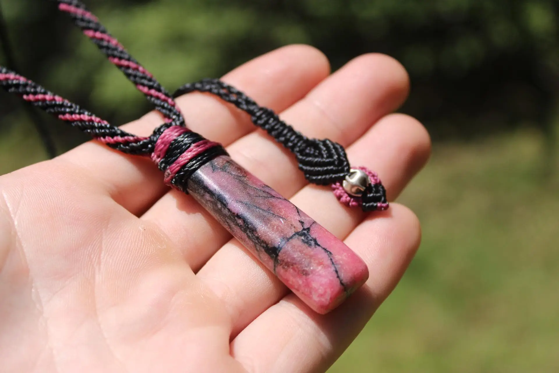 woven into a Shibari-style macramé cord using ancient knot techniques for durability and beauty.