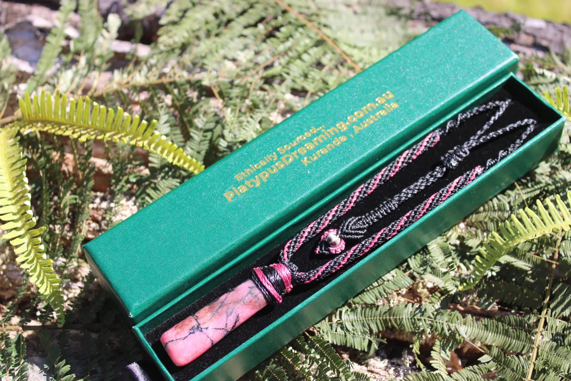 Australian Rhodonite Necklace • Tribal Crystal Talisman • Handmade Vegan Jewelry • First Nation Inspired Collection