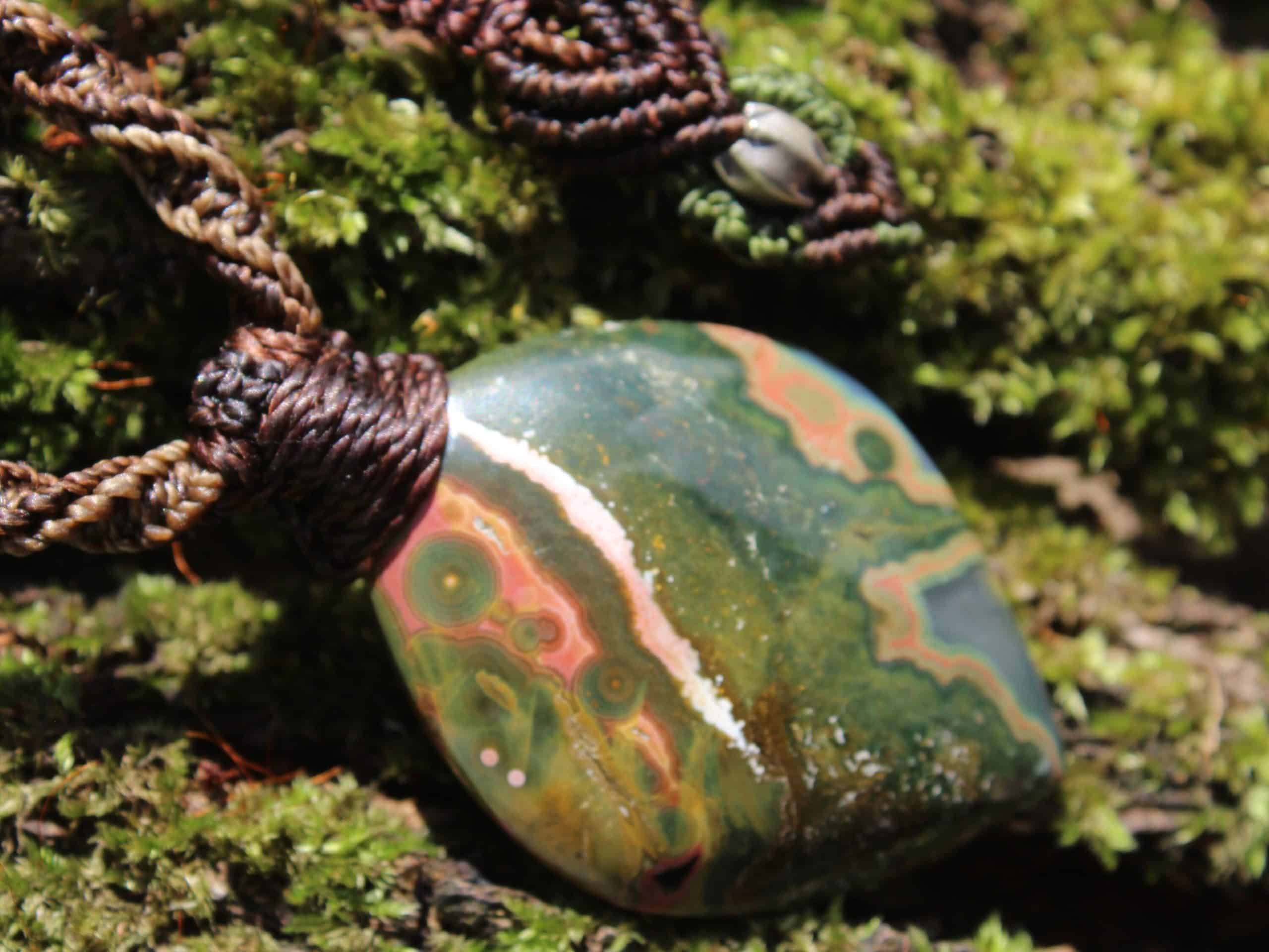 This is an absolutely divine one of a kind creation. This crystal talisman features a thick piece of Ocean Jasper fossilized coral which is millions of years old: so old in fact that it is extracted deep from underground, and is part of the mineral kingdom. Deposits of this stone are found only in Indonesia and Madagascar. It has been handcrafted by us here at Platypus Dreaming in the luscious rainforests of Far North Queensland, Australia. This talisman features a 1000 pure silver tribal bead that has been hand-cut and chiseled using traditional techniques.