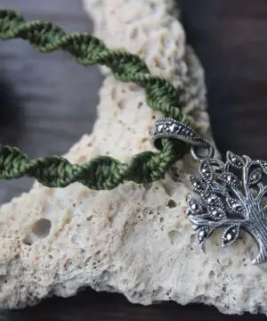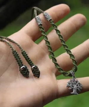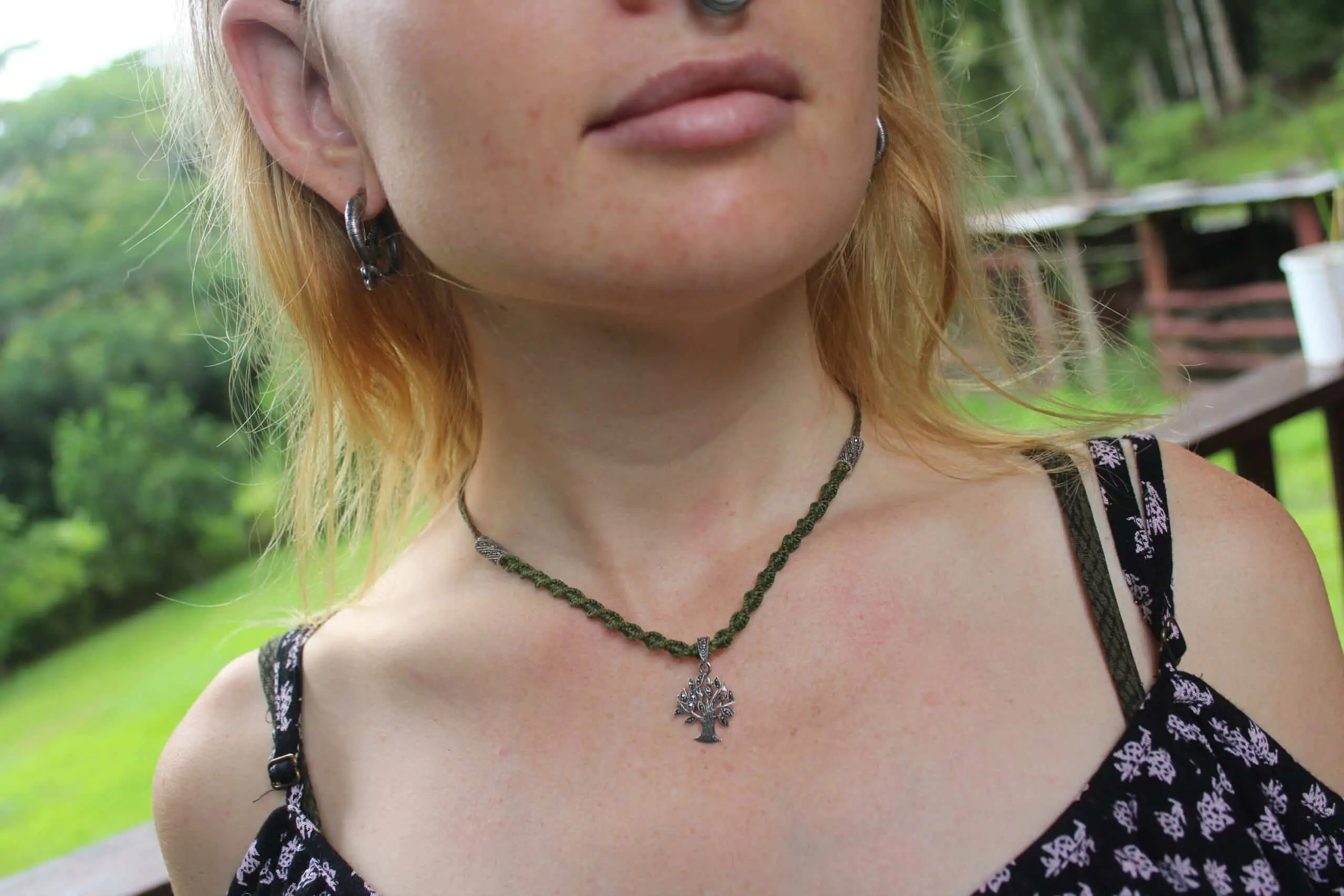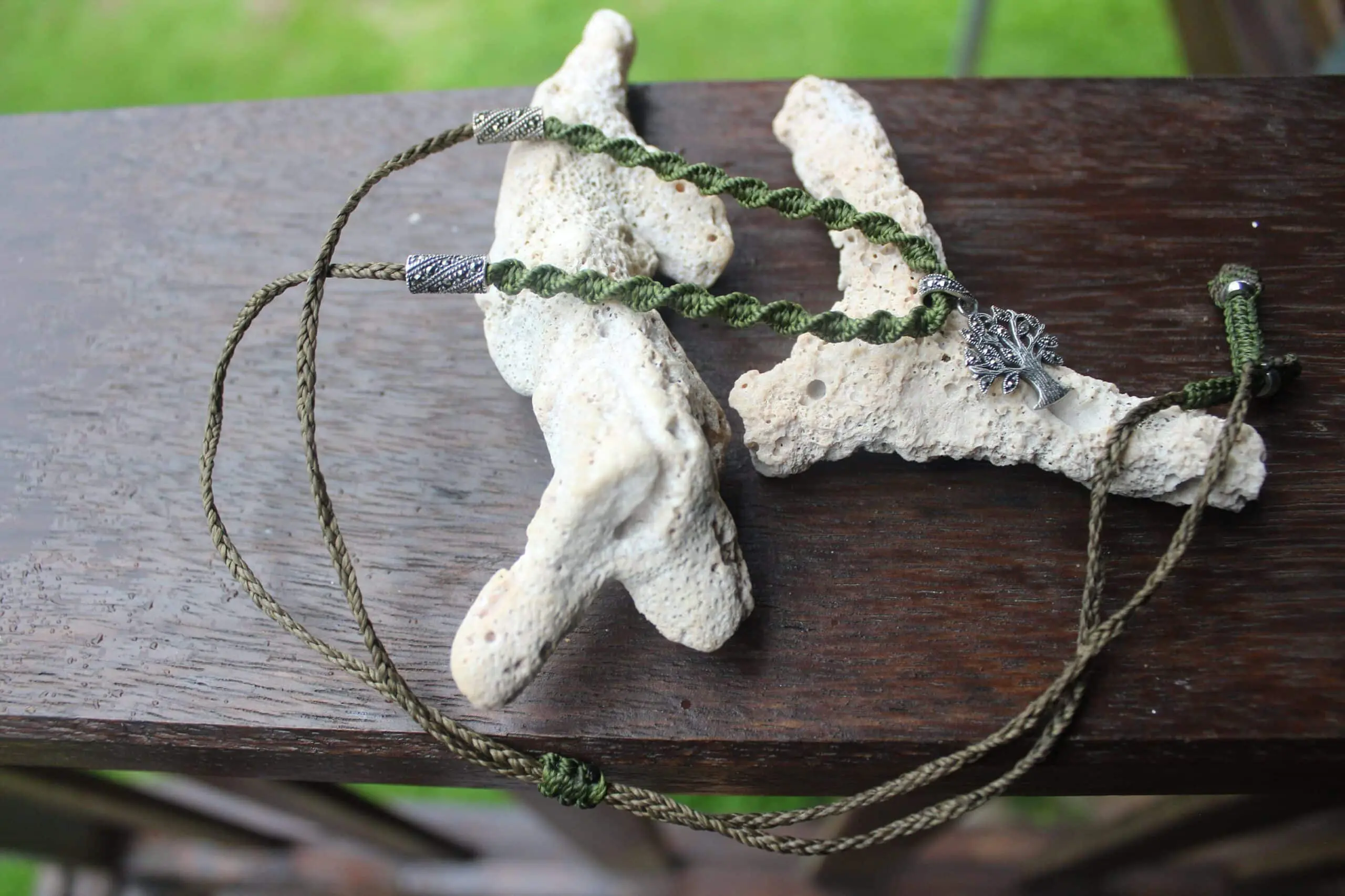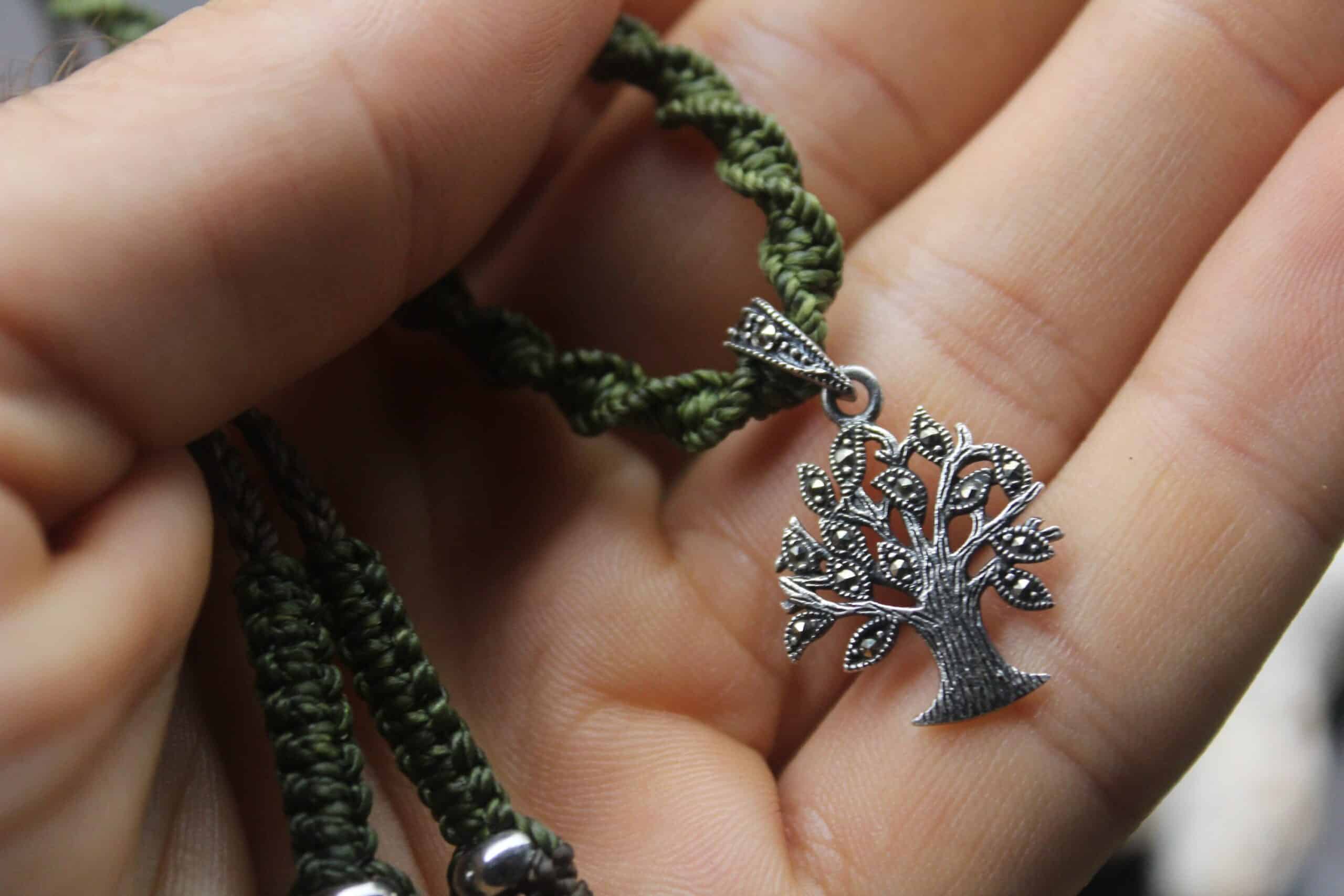 Stunning Tree of Life Marcasite (Pyrite) Sterling Silver Necklace, Hand Made Adjustable Ancient knots shibari cord. Free Standart Post