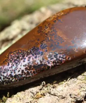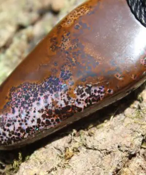 Boulder Opal flashes different colours at different angles — greens, blues, reds, violets, golds — shifting with every movement.