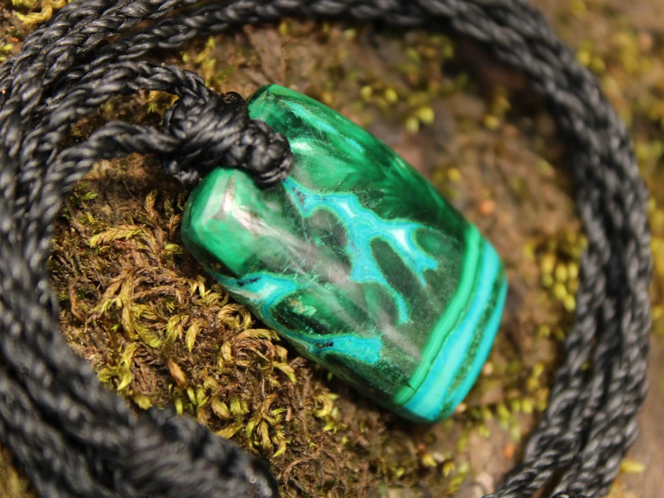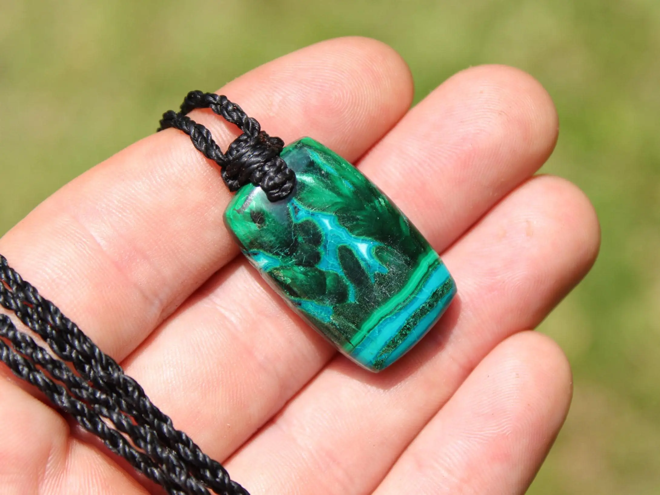 Tourmaline Necklace • Afghan Tourmaline Pendant • Raw Green Blue Crystal Talisman • Australian Handmade • Handwoven Tropical Cord