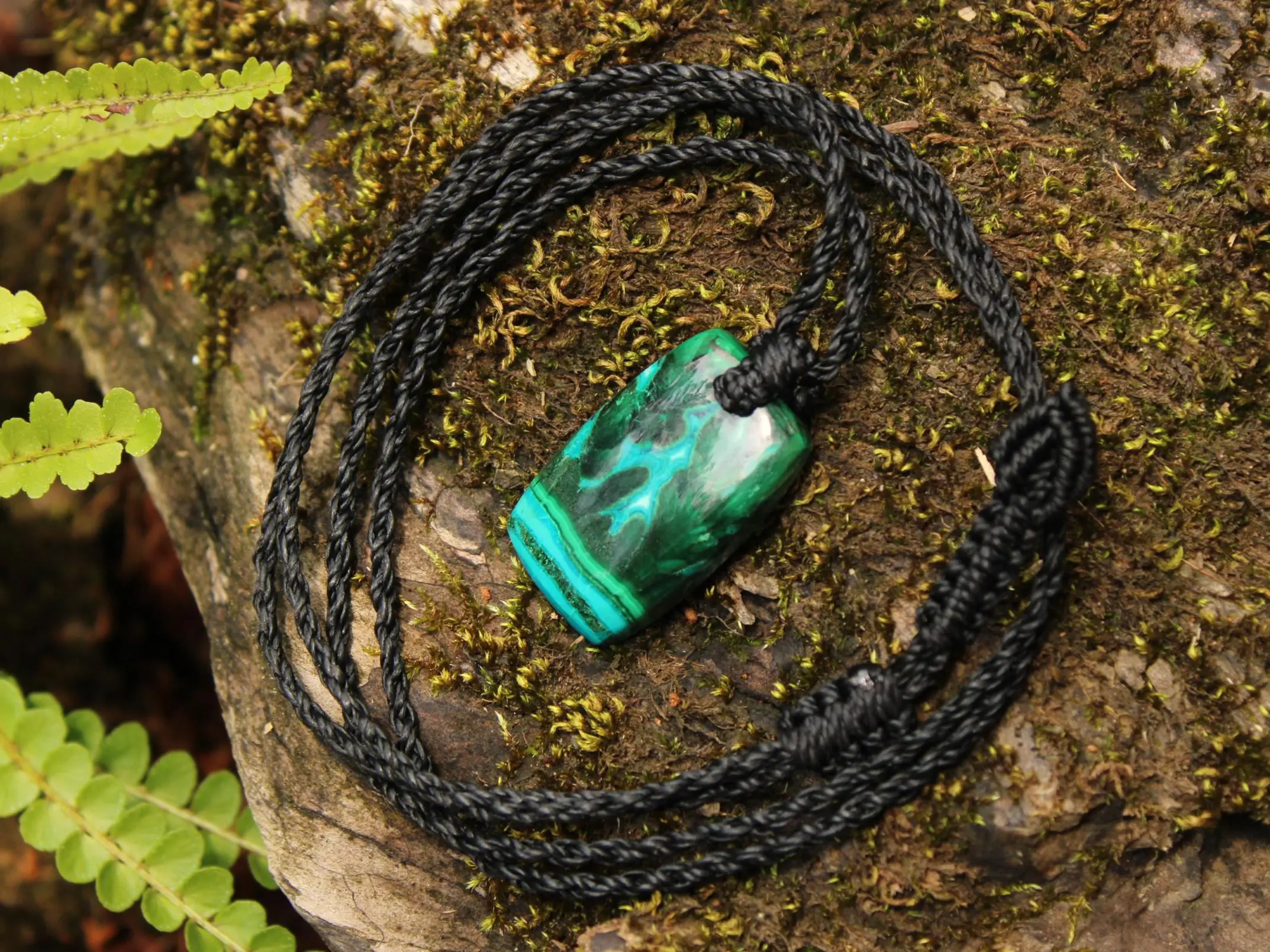 Malachite Pendant Sterling Silver Necklace,Australian made macrame cord, Malachite Macrame Necklace,Silver Jewelry,gift for her him