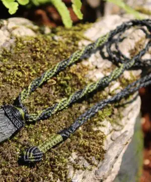 The design uses ancient macramé knot techniques, crafted from thousands of tiny knots for strength and beauty.