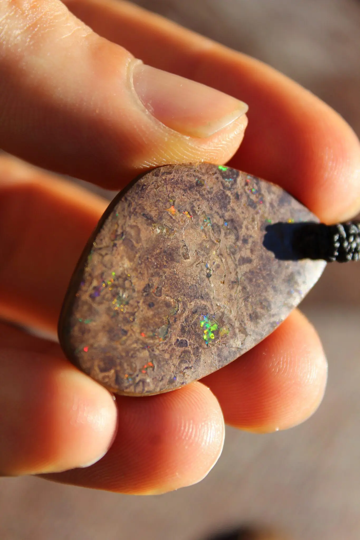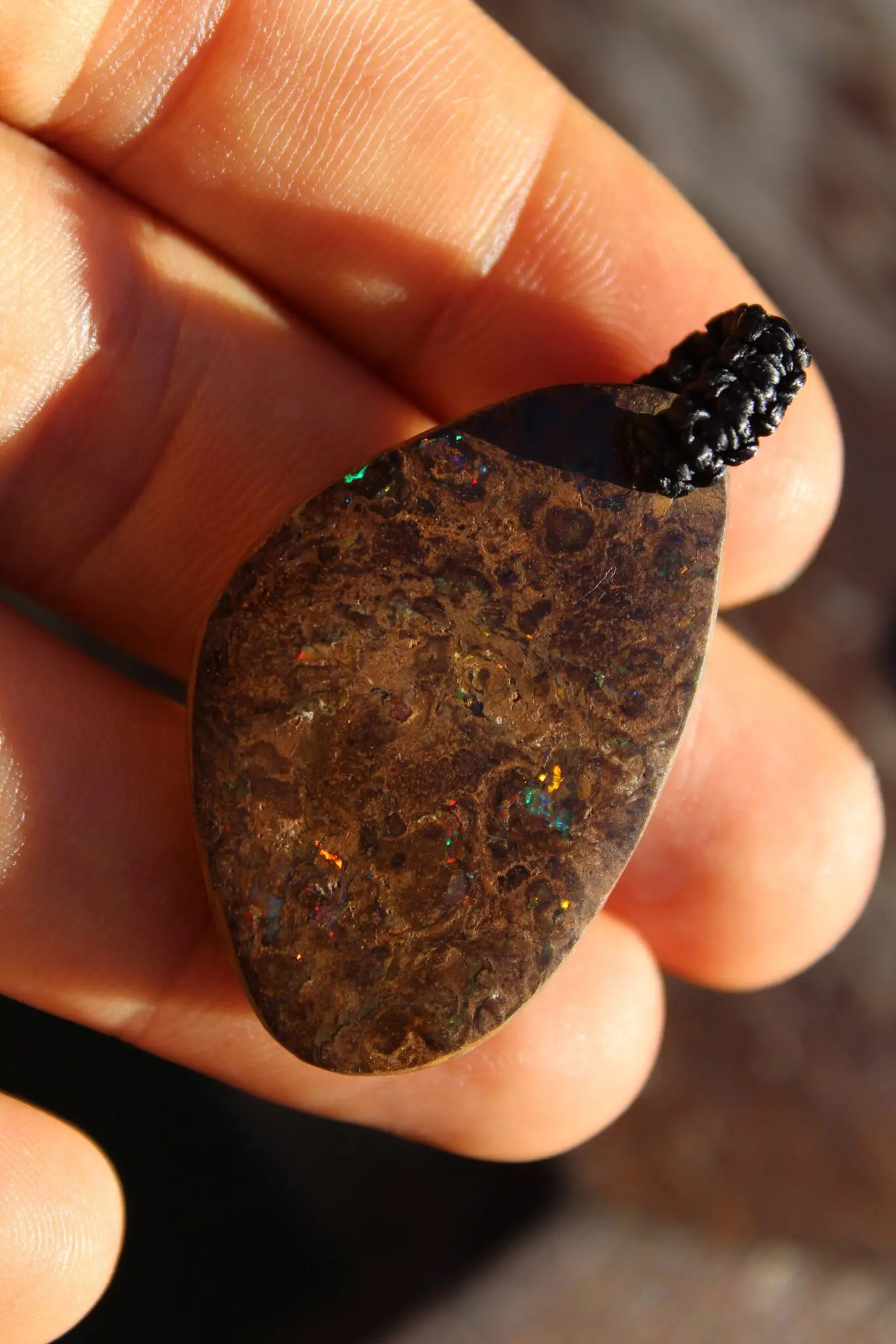 Photos alone can’t fully capture the beauty of Australian Opal. Boulder Opal shifts in colour depending on the light and angle. If you'd like a more detailed video of this piece, just send us a message. The listed photos were taken outdoors at different times of day to show the changing colours in natural sunlight.