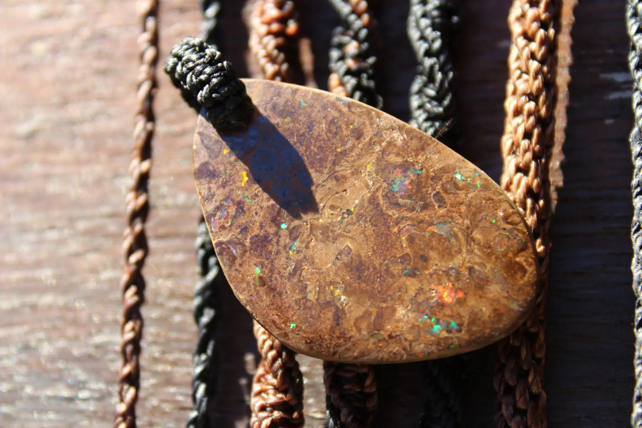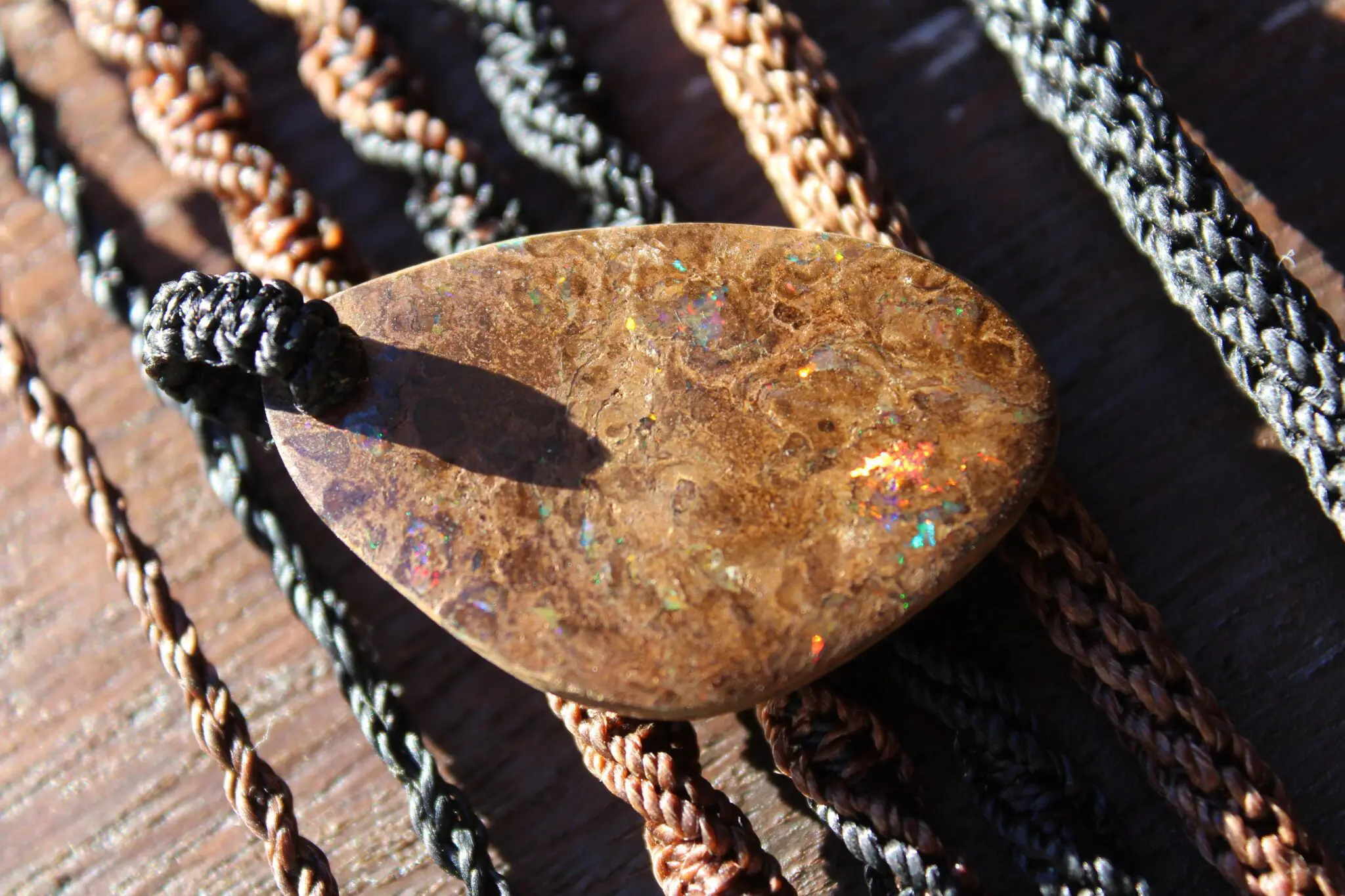We use the highest quality waxed cords available – the ultimate in strength and durability. These cords are waterproof and designed for active, everyday use. Your opal talisman can be worn while swimming or in the shower.