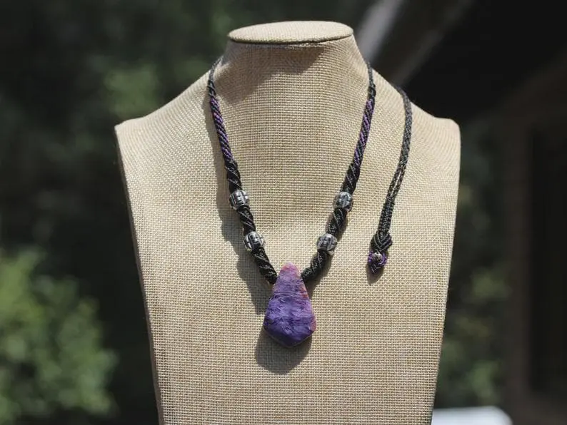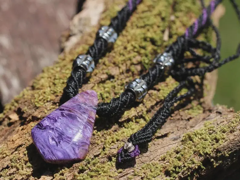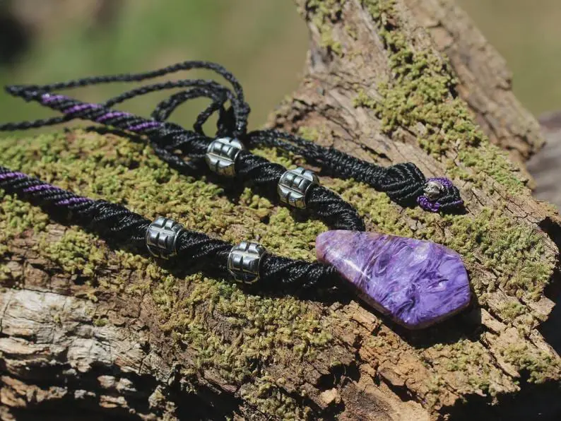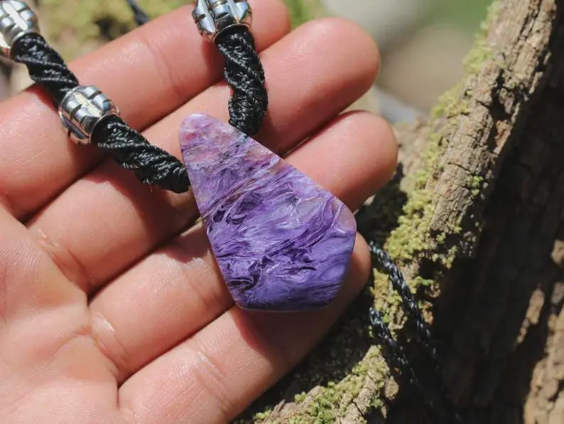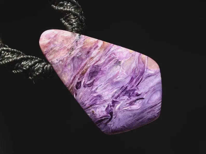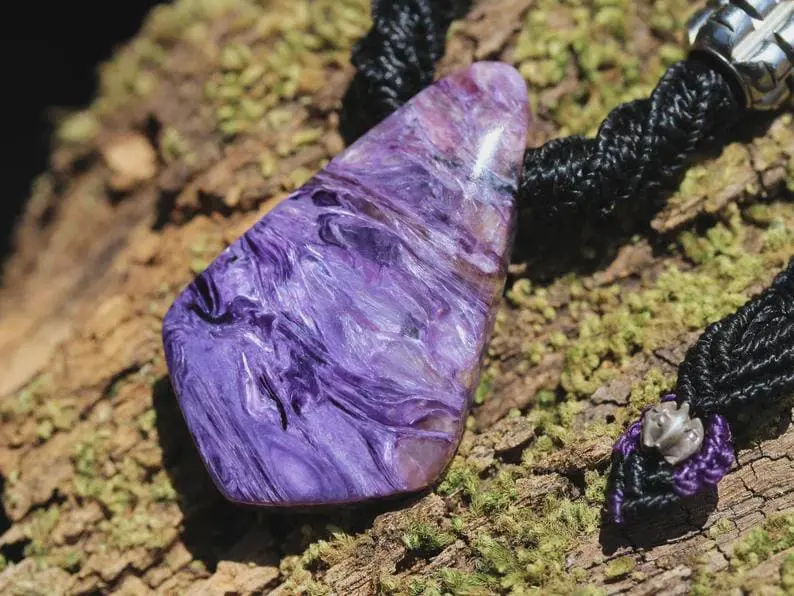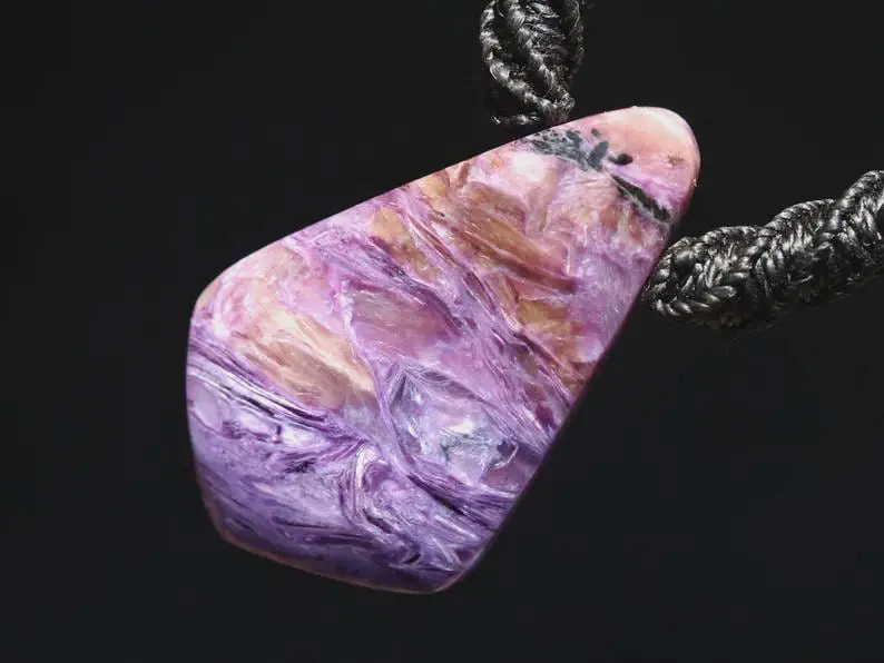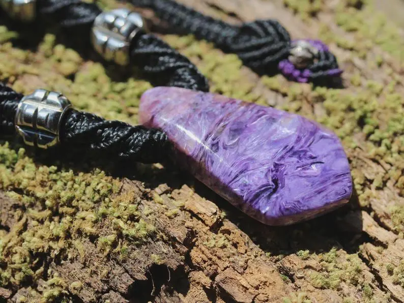 Charoite is called a "Stone of Transformation" and is a stone of power. In particular, it transforms negative emotions such as anger and fear into positive feelings. As part of the transformation process, it allows the release of those negative emotions. Charoite is also a stone of inspiration, bringing enhanced creativity, spiritual growth, and showing new possibilities even in old situations. This is a stone that allows us to see clearly which brings with it enhanced self-esteem and helps release one from victimisation. Charoite can enhance or bring courage, inner strength, and appropriate assertiveness.