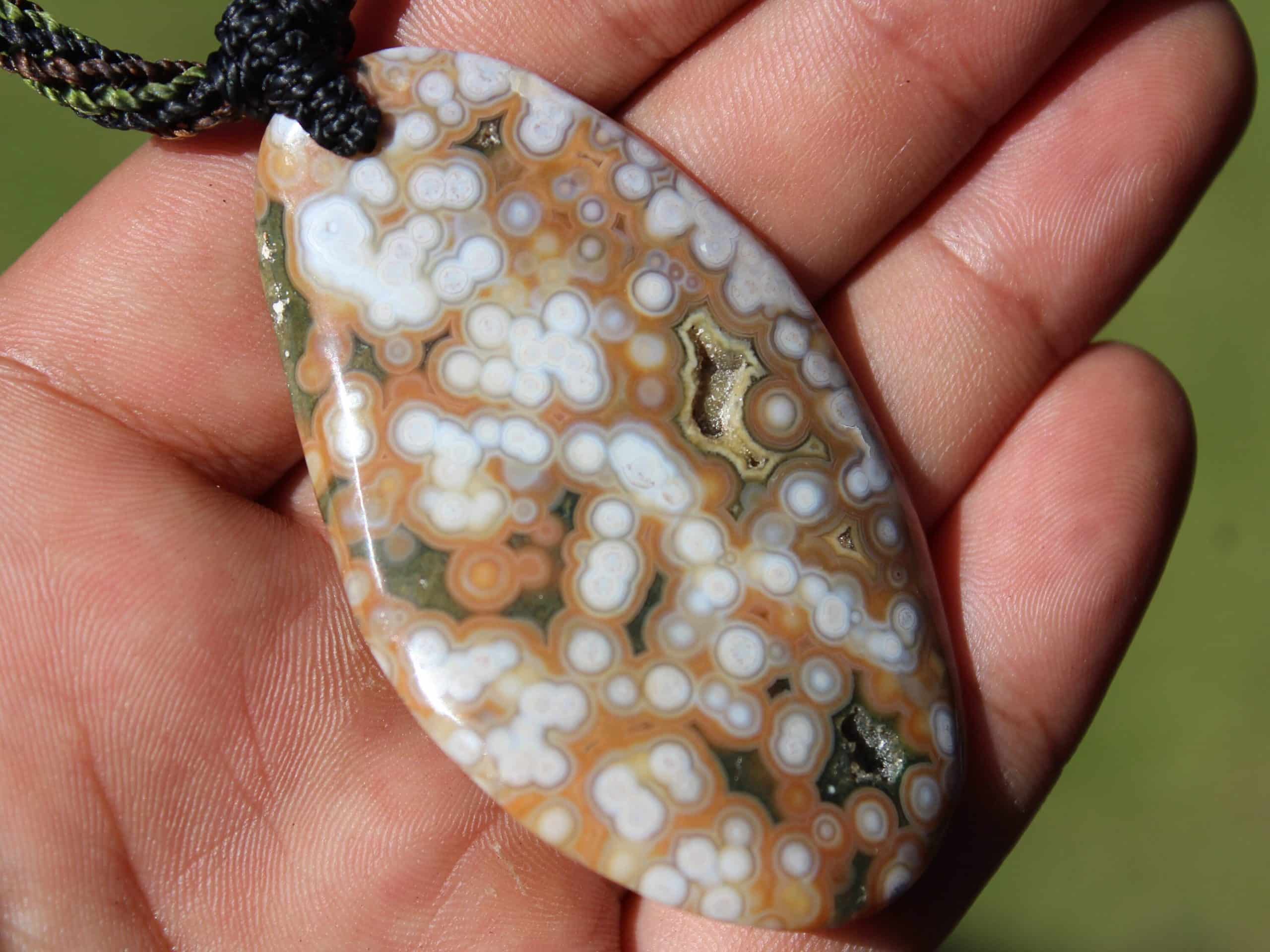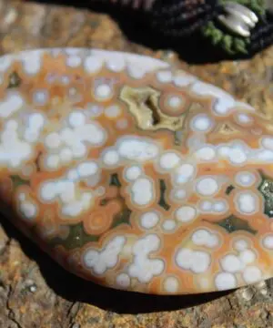 Jasper is a member of the Chalcedony family with a hardness of 6.5-7. Ocean Jasper cabochons take a great polish and wear well.