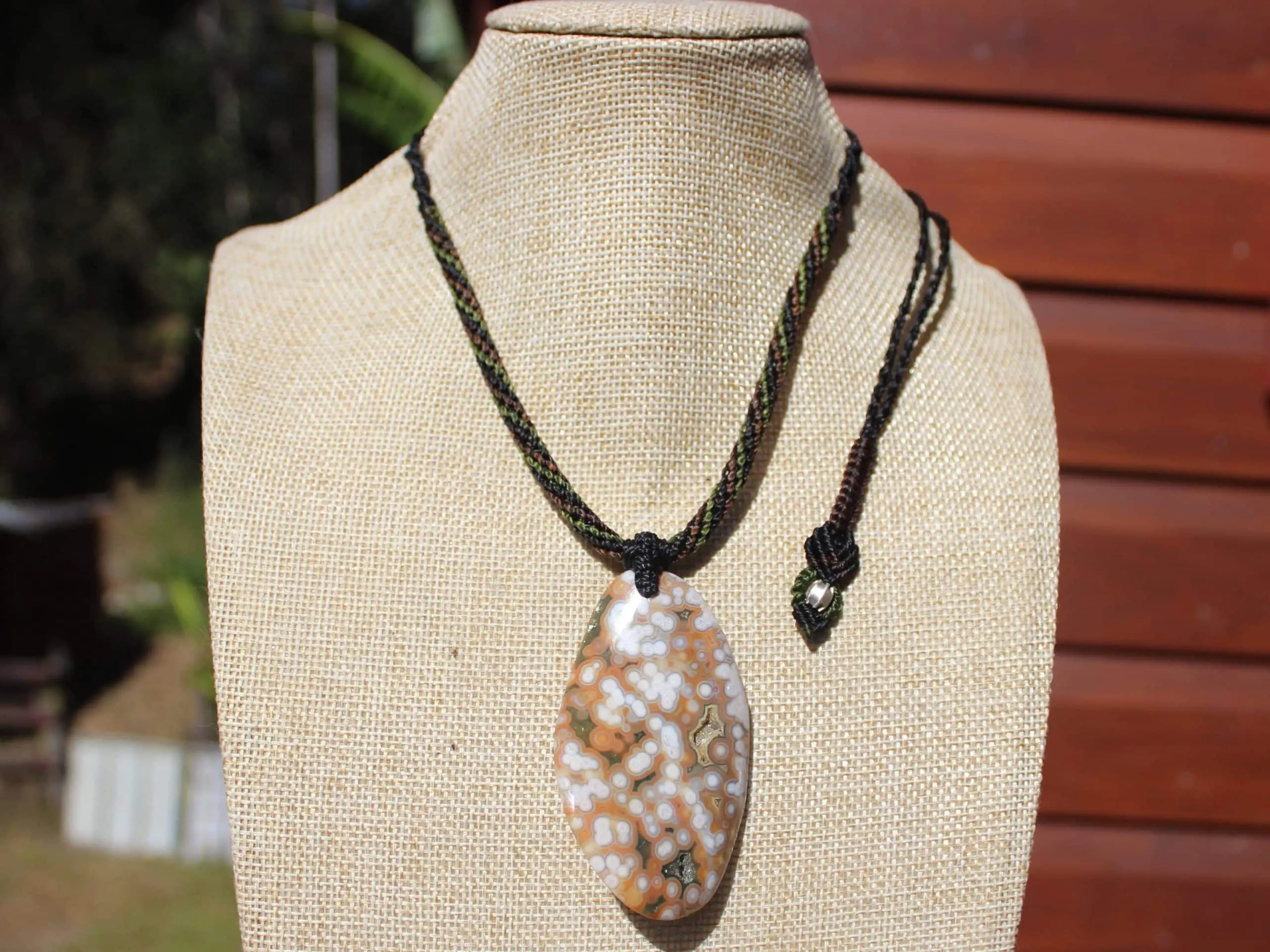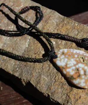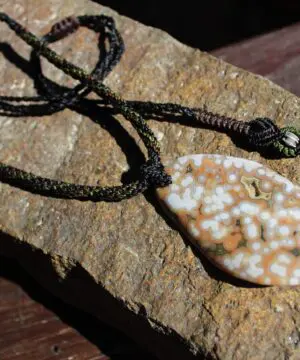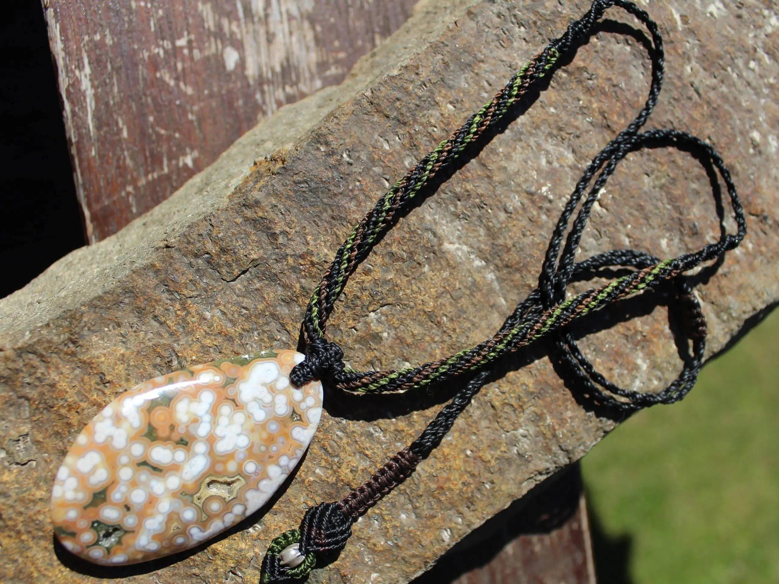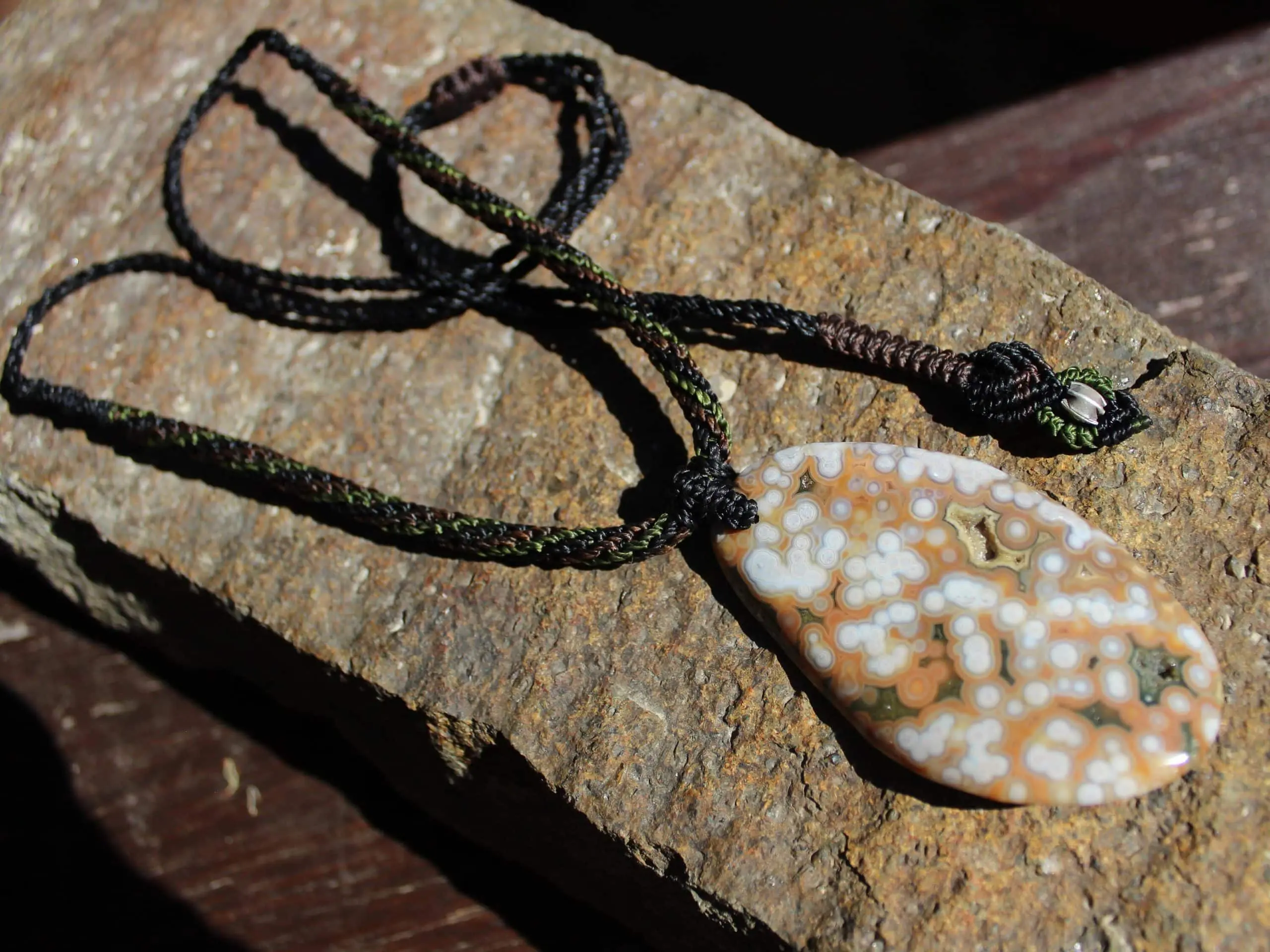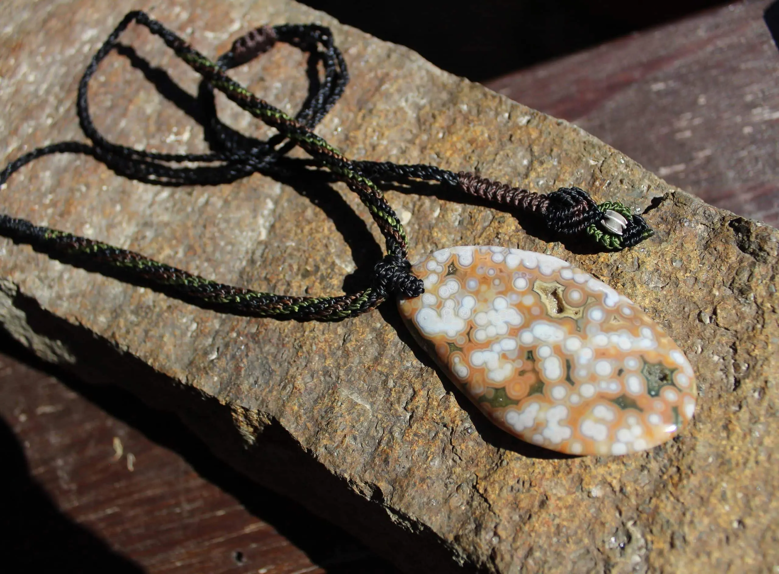 Arrow Out Back Scenic Jasper Necklace, Talisman Pendant, Australian Made Macrame Cord, Healing Crystal Jewelry, gift for him , gift for her