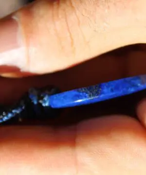 This divine imperial lapiz lazuli crystal talisman has been handcrafted by us here at Platypus Dreaming in the luscious rainforests of Far North Queensland, Australia. It has a magnificent polish and vibrant sheen. The vibrant lapiz has been ethically sourced from a small family business in Afghanistan – which we sourced years ago while travelling. This talisman features a 1000 pure silver tribal bead that has been hand-cut and chiseled using traditional techniques.