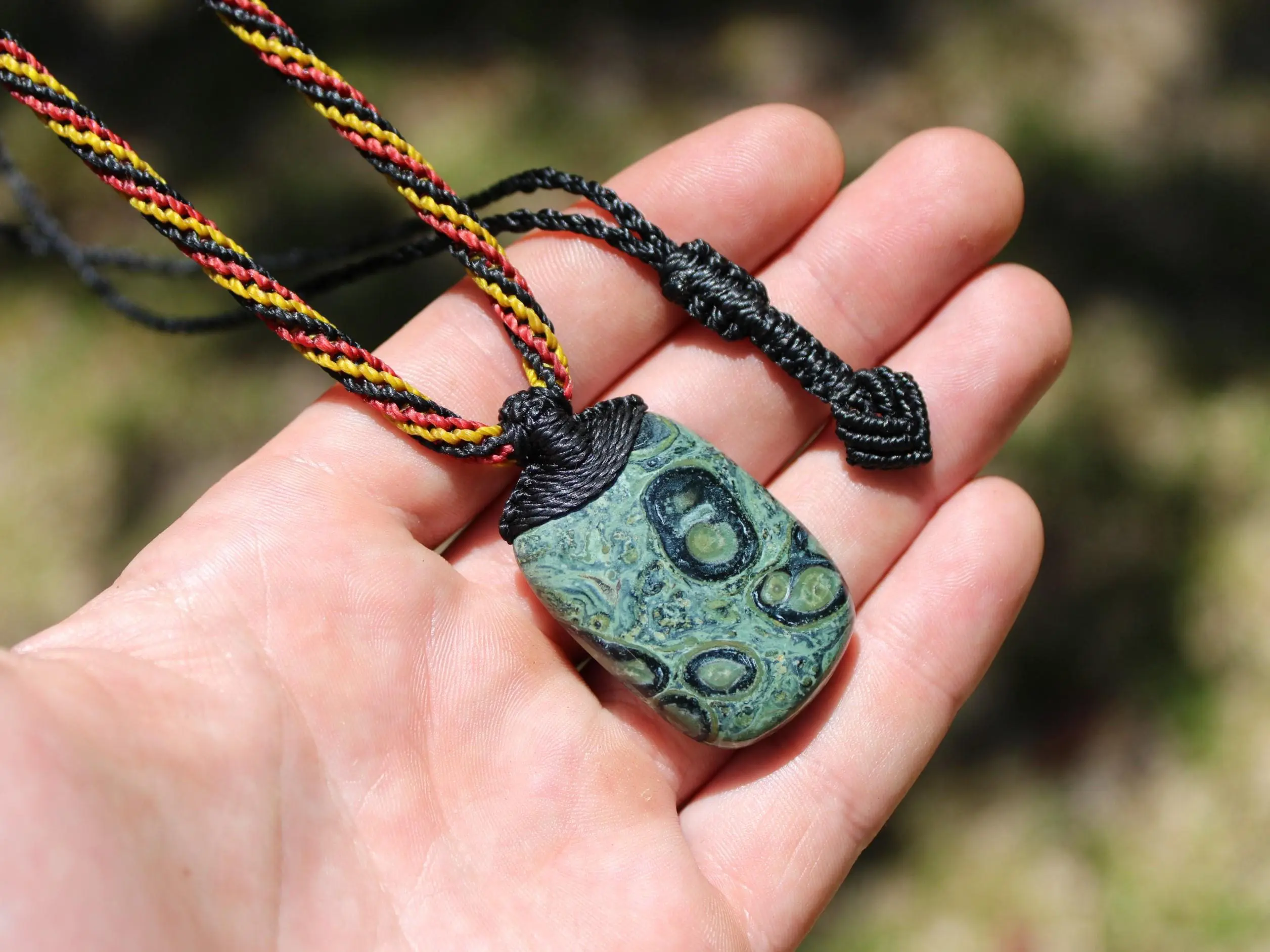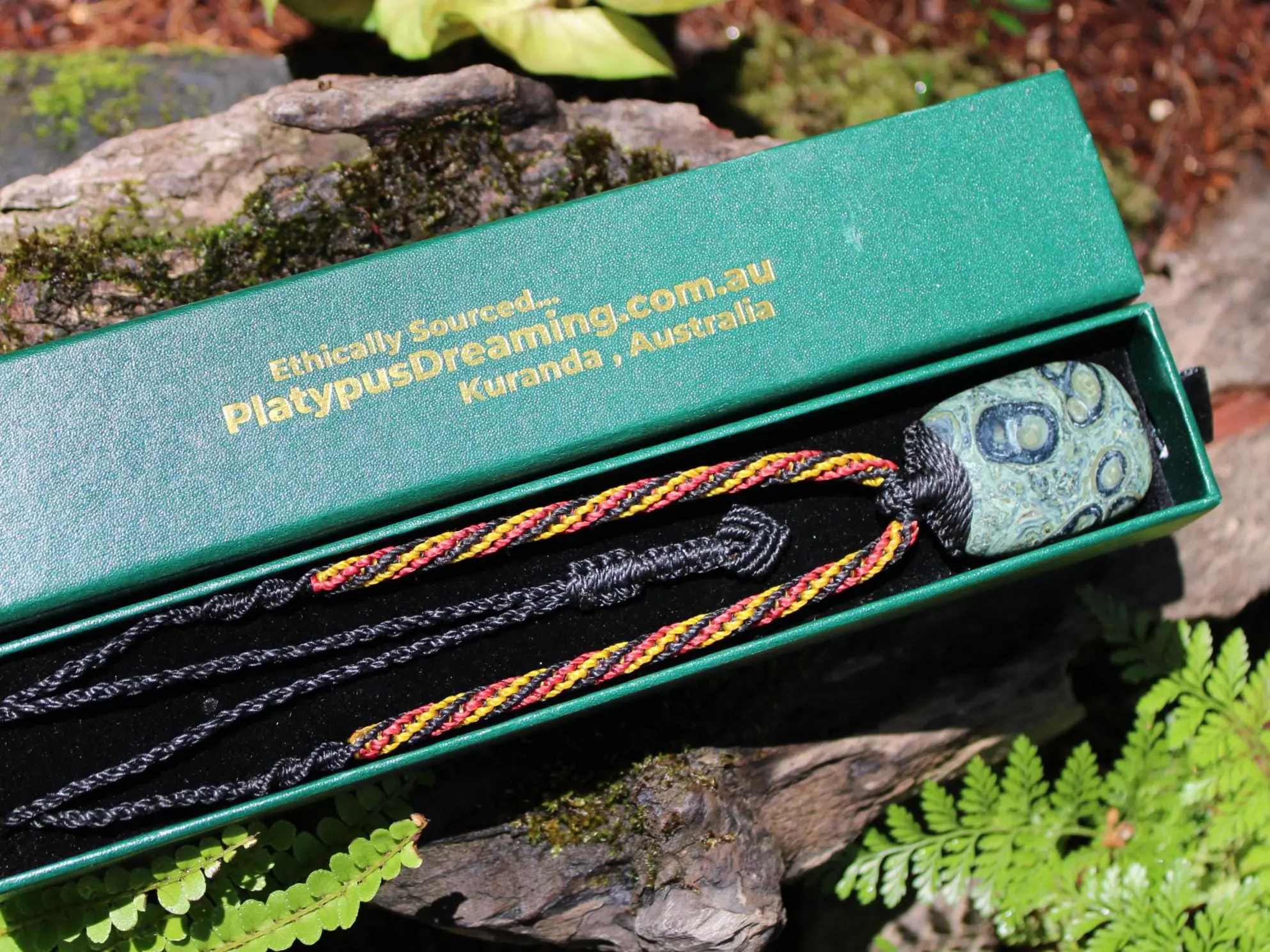 Australian Red Snake Skin Jasper Pendant. Red SnakeSkin Jasper Necklace, Necklace,Australian Made Macrame Cord, Indigenous Art Talisman