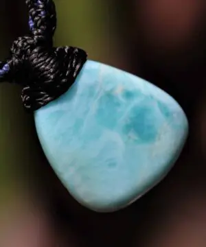 Larimar is the embodiment of the tranquil Sea and Sky energies. Its soft, soothing blues and calming turquoise is streaked with white patterns that resemble sunlight dancing beneath Caribbean waters. It brings the ancient wisdom of Atlantis and the healing power of dolphins to harmonize the body and soul.
