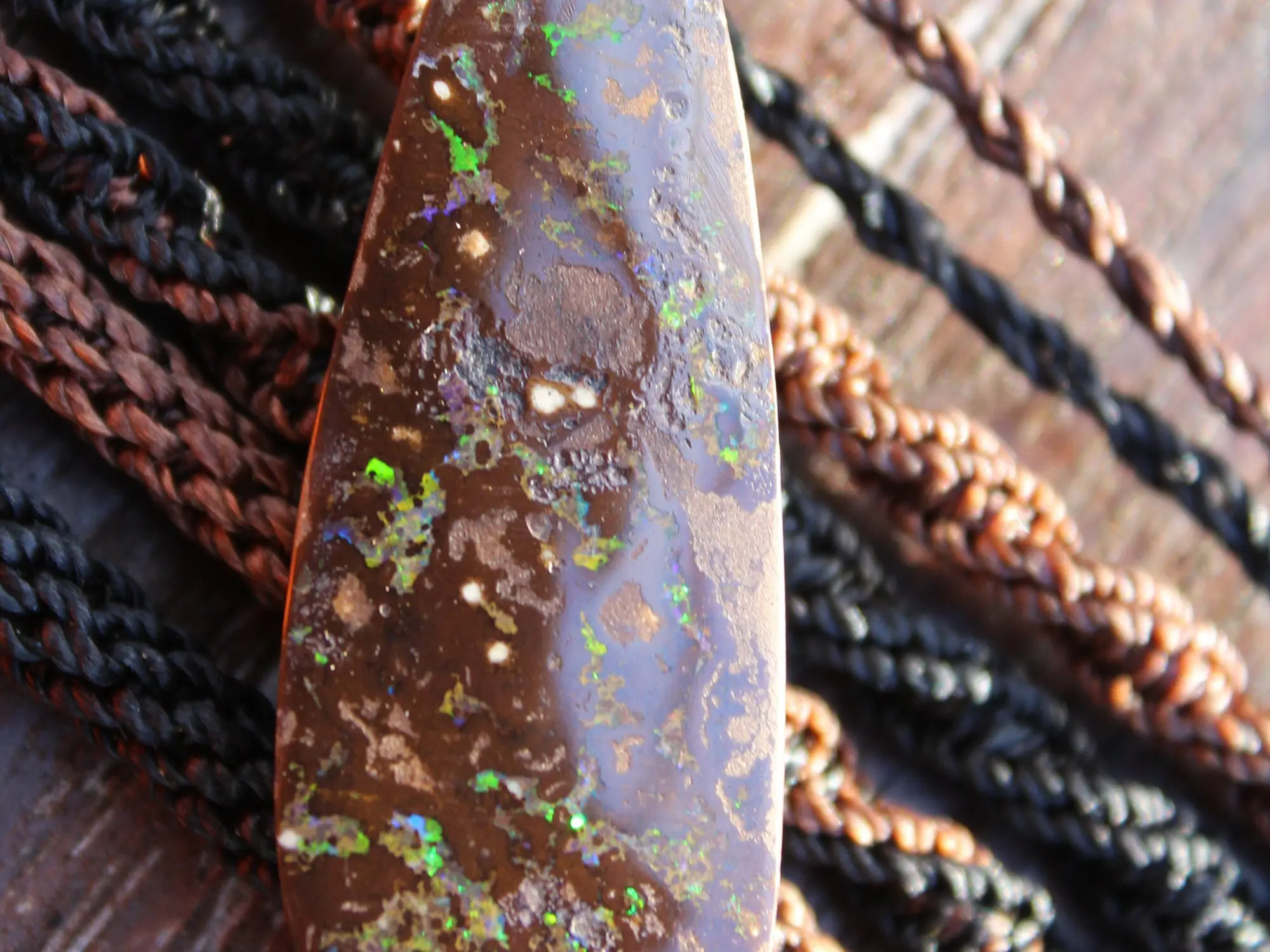 We use the highest quality waxed cords available – the ultimate in strength and durability. These cords are waterproof and designed for active, everyday use. Your opal talisman can be worn while swimming or in the shower.