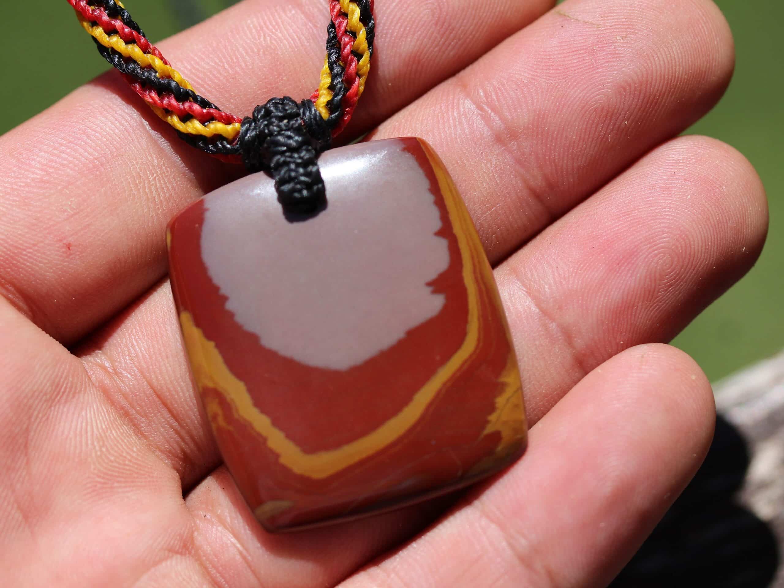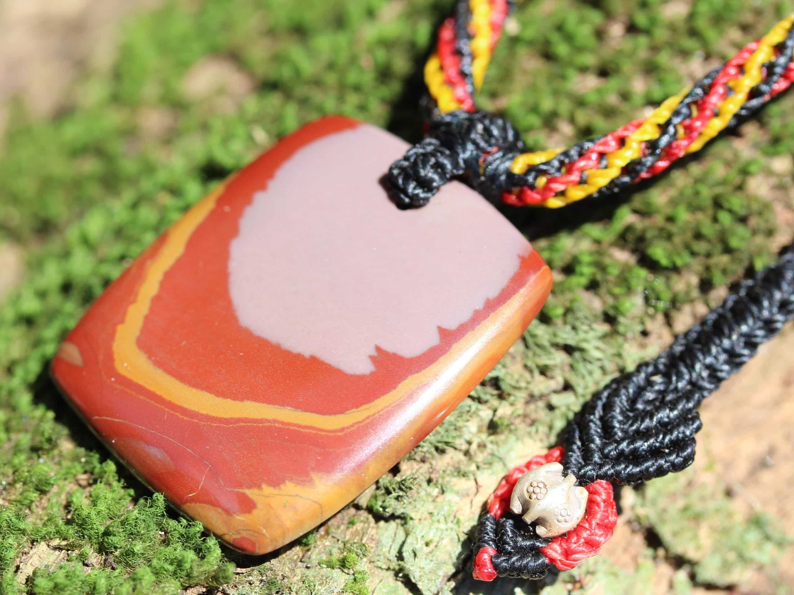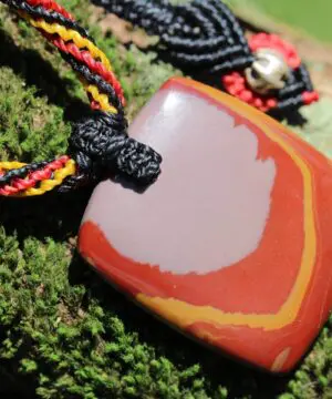 This powerful Noreena Jasper crystal talisman has been handcrafted by us here at Platypus Dreaming in the luscious rainforests of Far North Queensland, Australia. This noreena jasper is some of the highest quality we have been able to source, and comes from the Pilbara region of Western Australia, in one of the most isolated places on Earth. This jewel boulder tends to occur in raw pieces that show the most magnificent geometric patterns. Features a 1000 pure silver tribal bead that has been hand-cut and chiseled using traditional techniques.