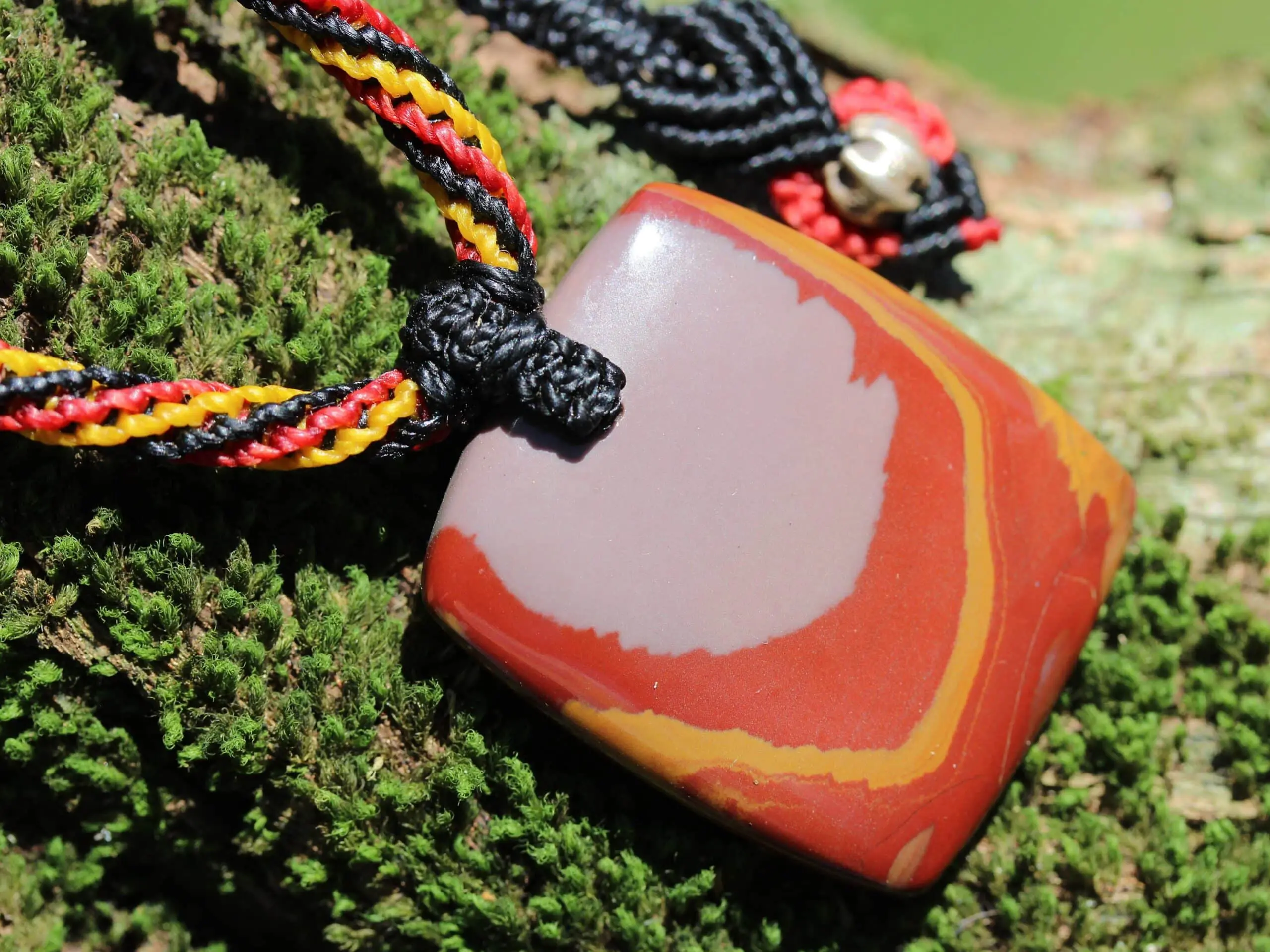 Natural Ocean Jasper Necklace, Australian made macrame cord, Healing Crystal Pendant, Handcrafted Gemstone Jewelry, Boho Statement Necklace