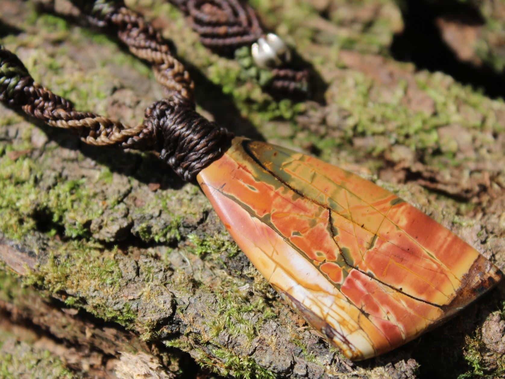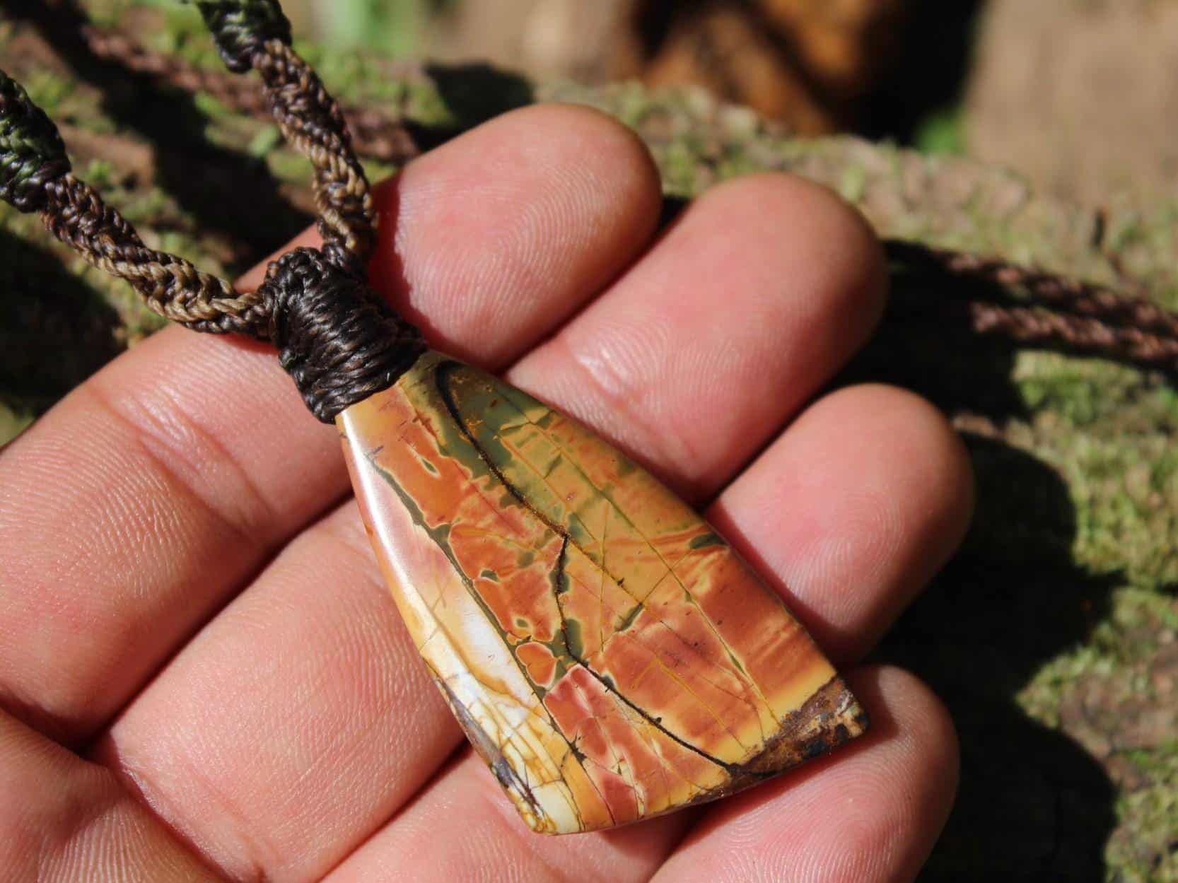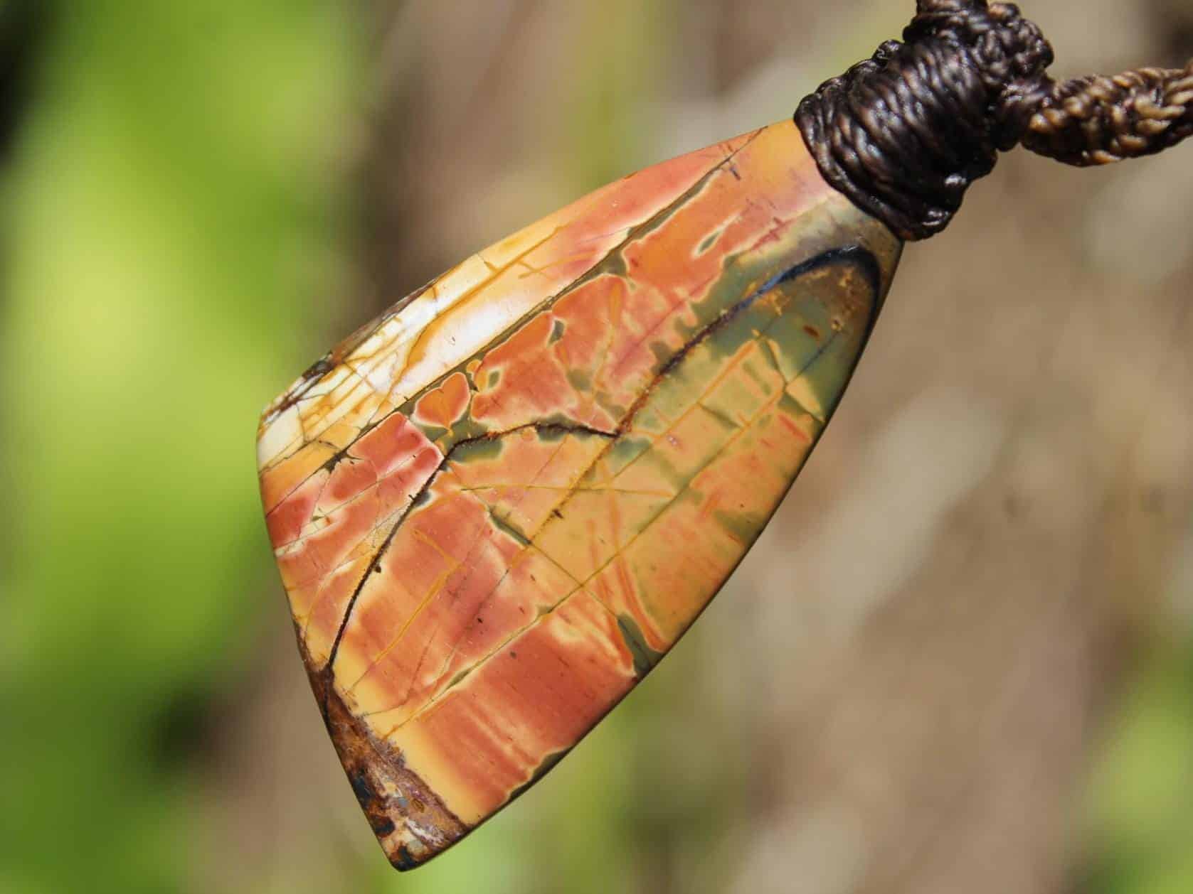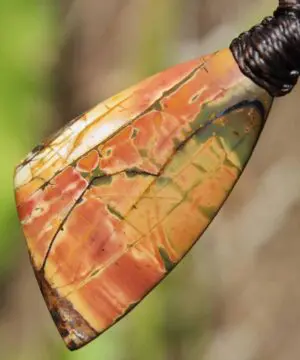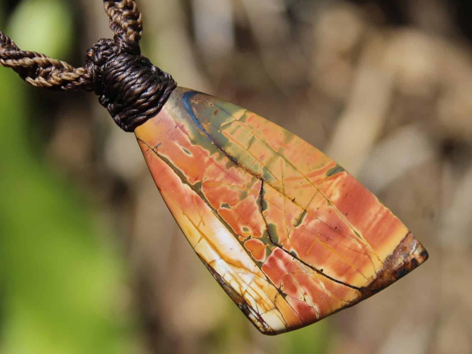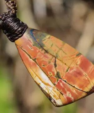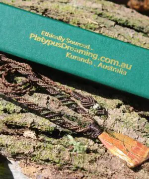 This powerful Outback Jasper crystal talisman has been handcrafted by us here at Platypus Dreaming in the luscious rainforests of Far North Queensland, Australia. This incredible stone is completely natural and has not been altered in any way – those incredible patterns emerge at the lapidary wheel from the raw earth. This designer cabochon is reminiscent of a 19th century classical Australian oil painting.