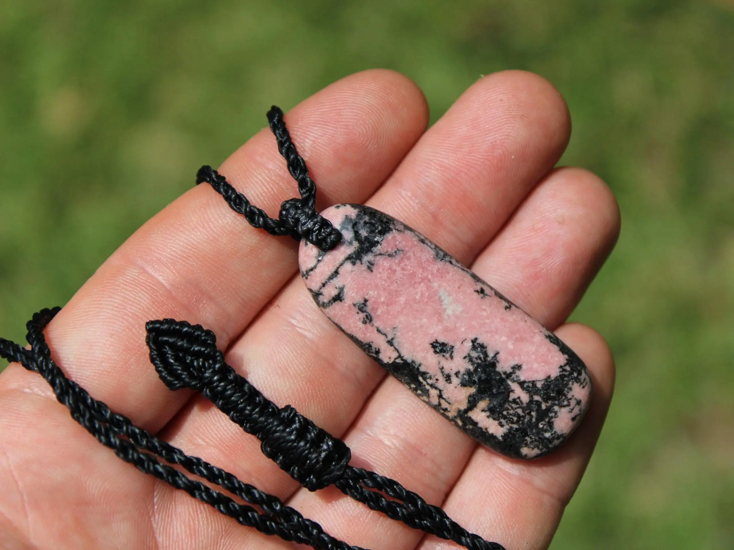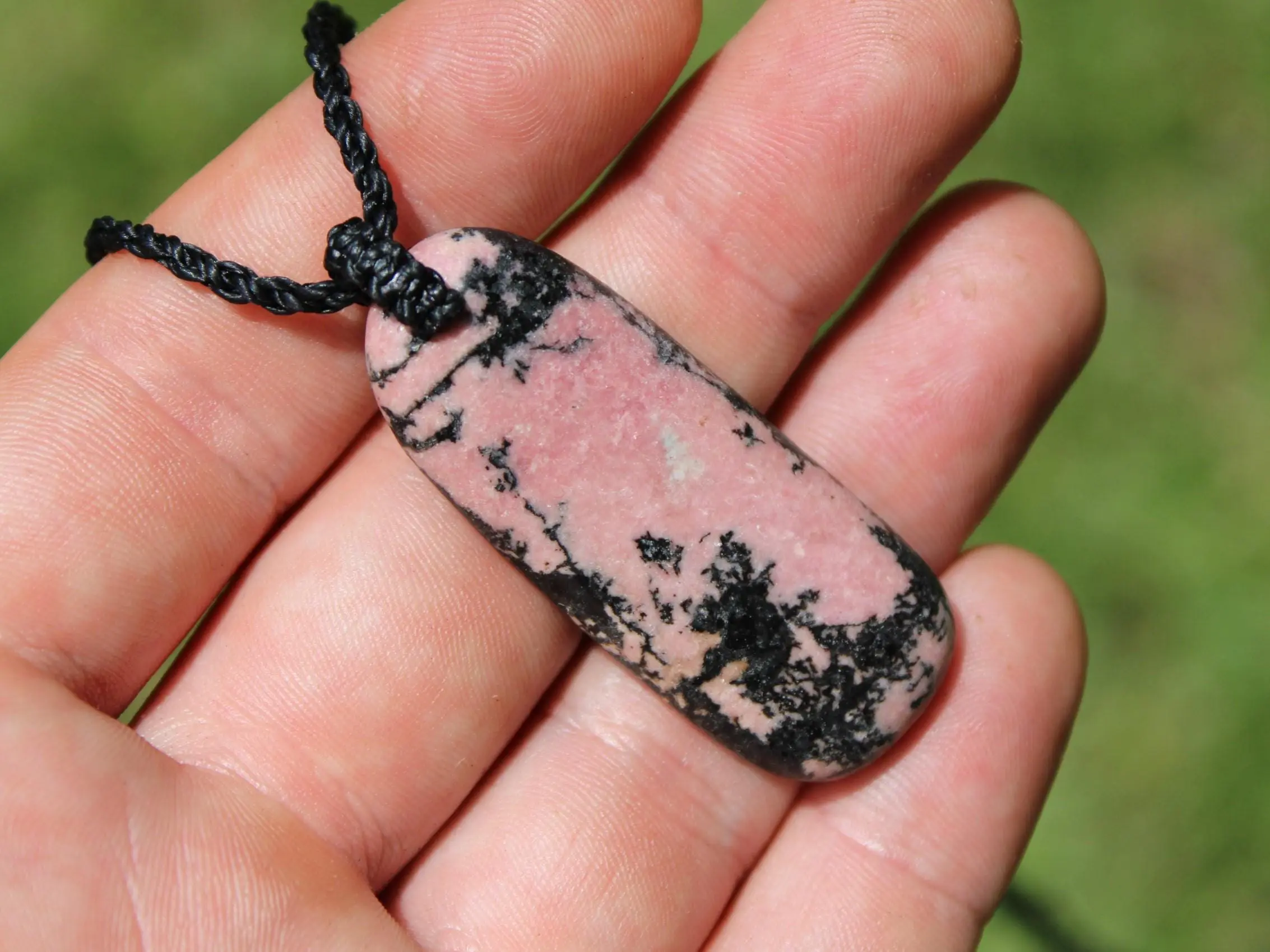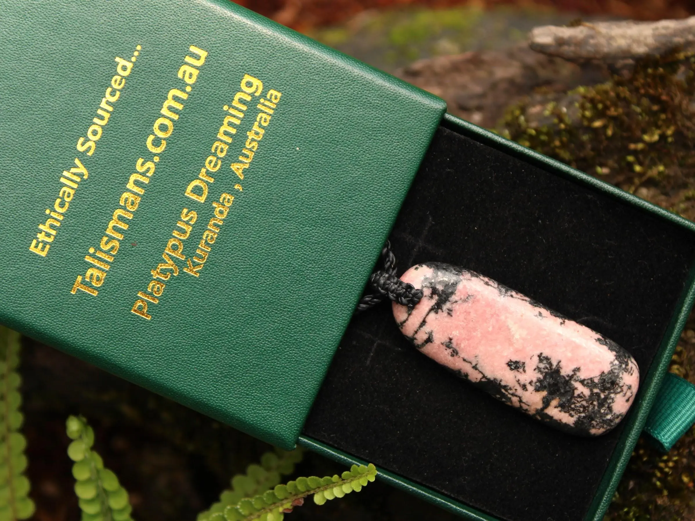 Australian Rhodonite Necklace • Heart Chakra Crystal Talisman • Handmade Vegan Jewelry from Kuranda, QLD