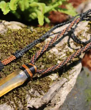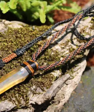 Each necklace is handwoven using an ancient macramé knot technique, made with high-quality vegan waxed cord for strength, comfort, and water resistance.