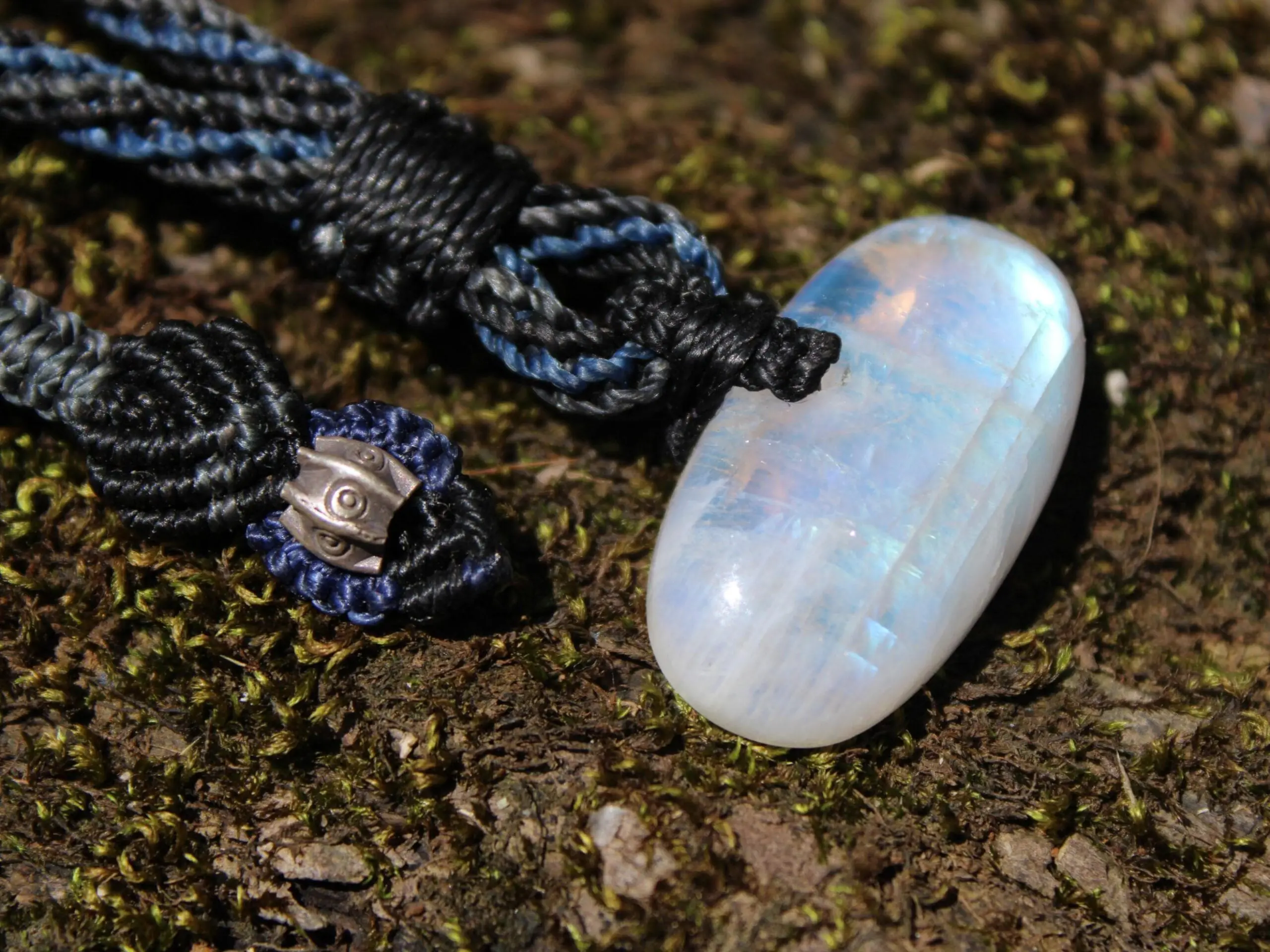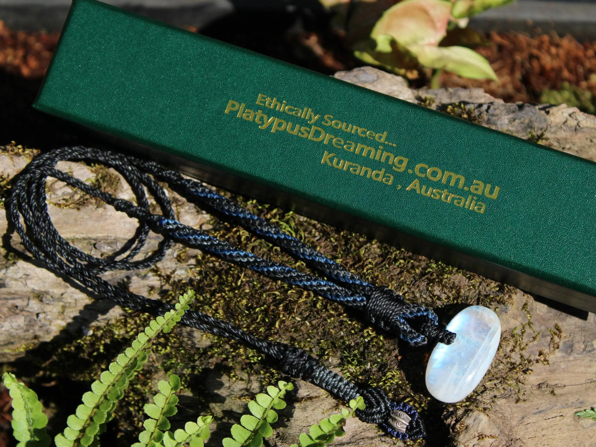 This is some of the highest quality rainbow moonstone on Earth we have been able to find. This divine moonstone pendant has been handcrafted by us here at Platypus Dreaming in the luscious rainforests of Far North Queensland, Australia. Ethically sourced and fair trade. Layer up or down – this playful creation can be worn in multiple ways. This necklace can also be adjusted to a childrens size.